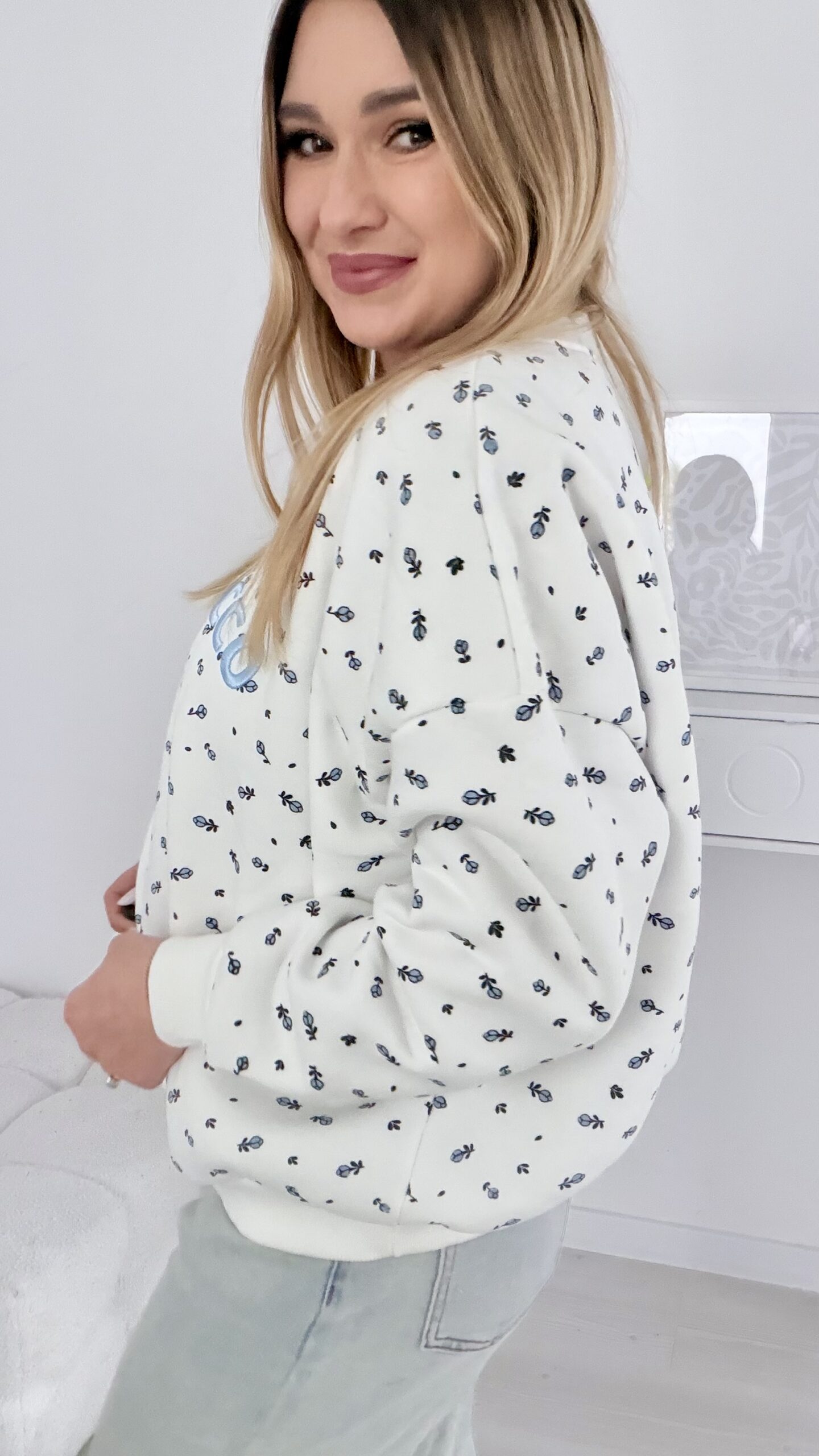 Bawełniana bluza z ociepleniem we wzór malutkich kwiatuszków