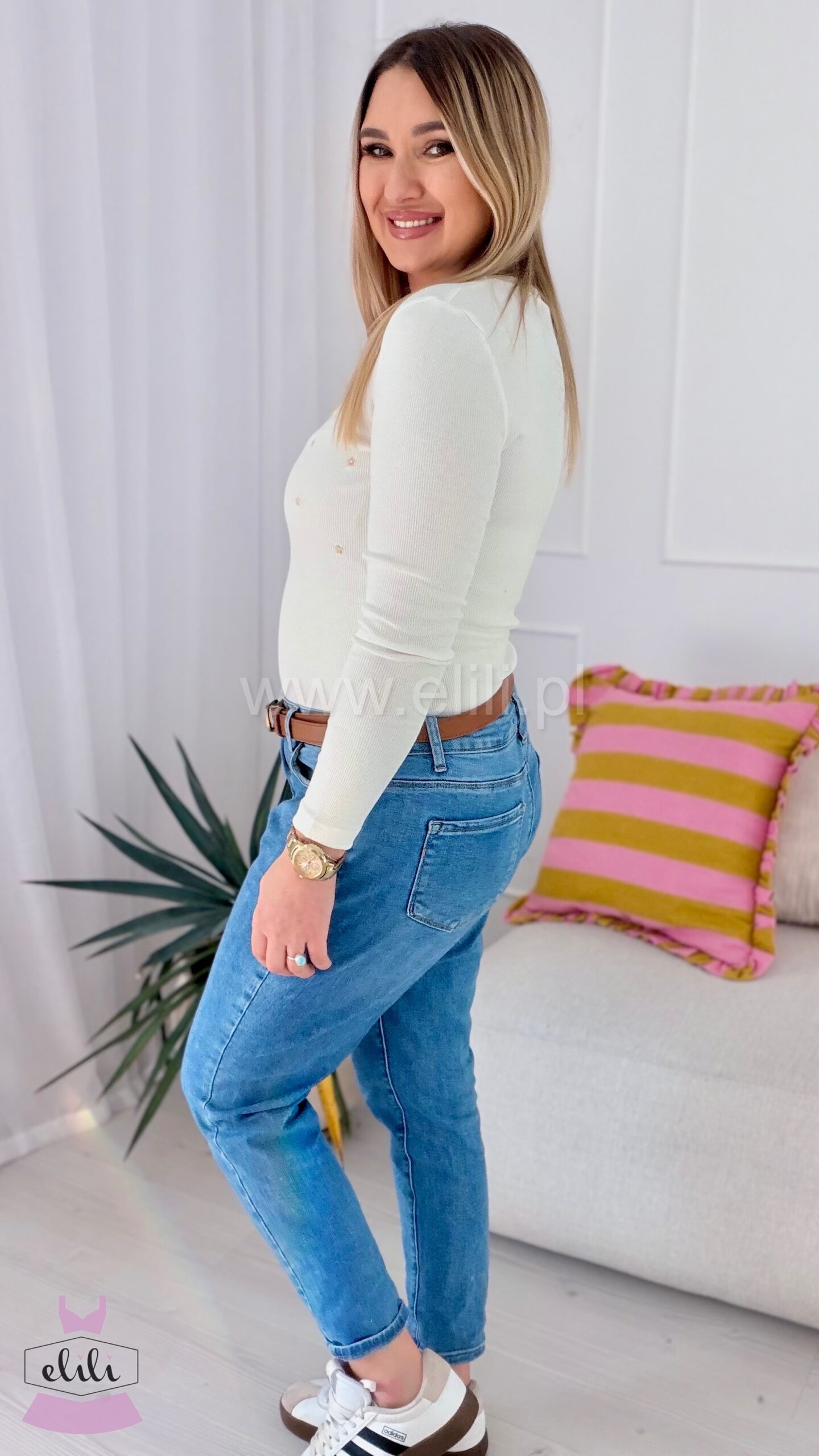 Bluzka w stokrotki z bawełny prążkowanej śmietankowa