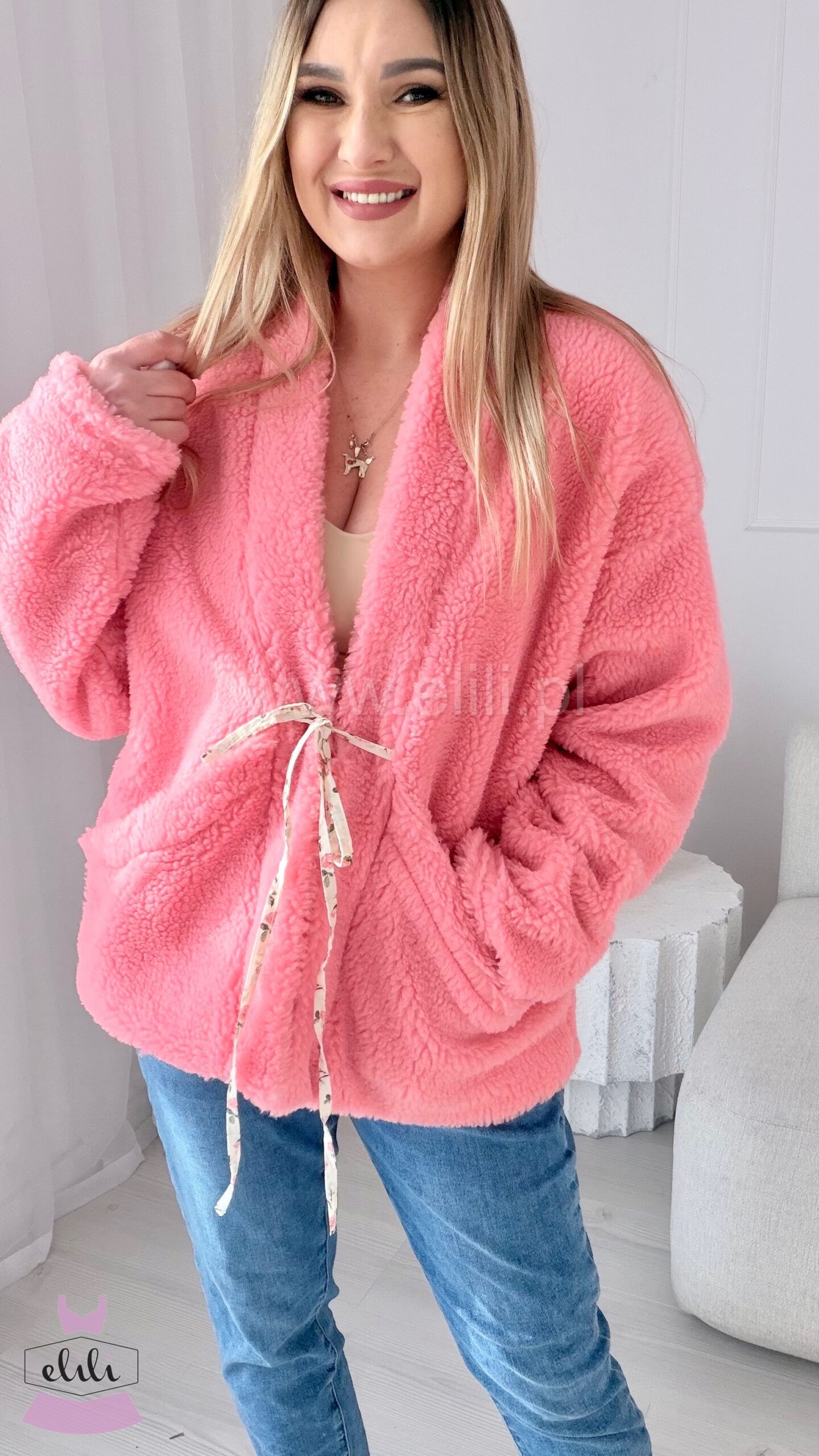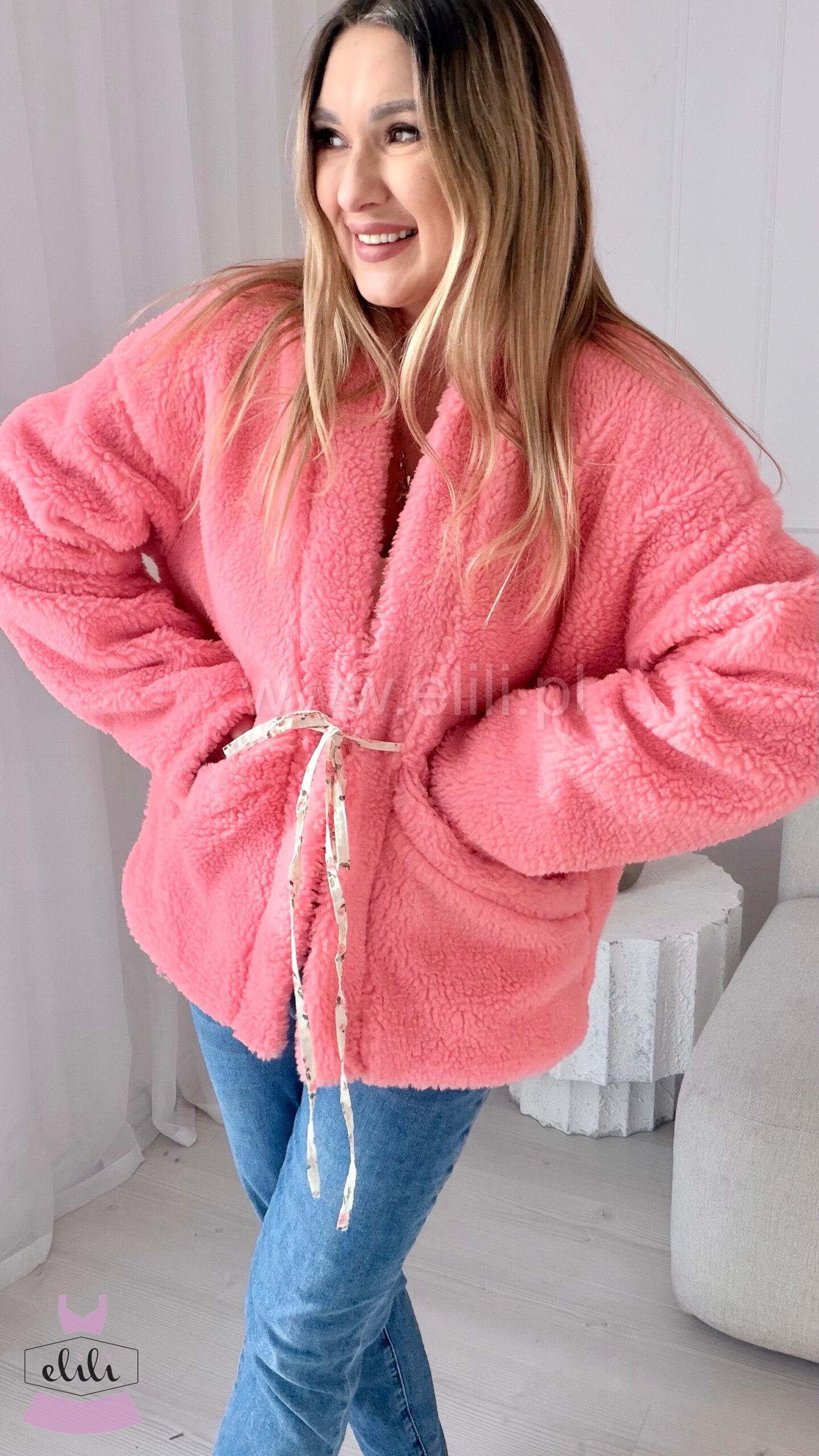 Modelka: wzrost 166cm, nosi rozmiar m/l, wymiary 98/75/102
