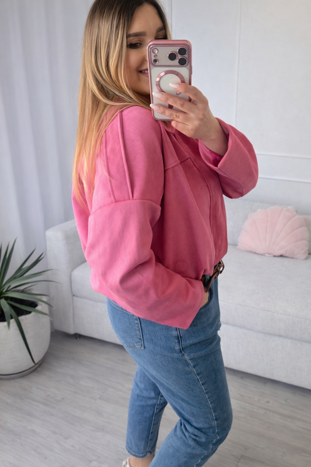 Miękki zamsz o wiosennym odcieniu otula ciało przyjemnym ciepłem i dodaje klasy każdej stylizacji – idealny balans między wygodą a elegancją.