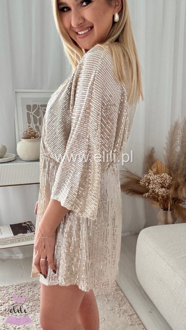 Kombinezon cekinowy z szerokimi nogawkami szampański