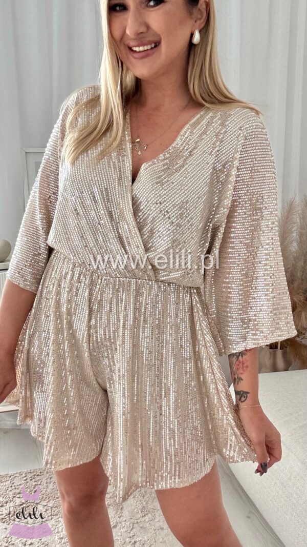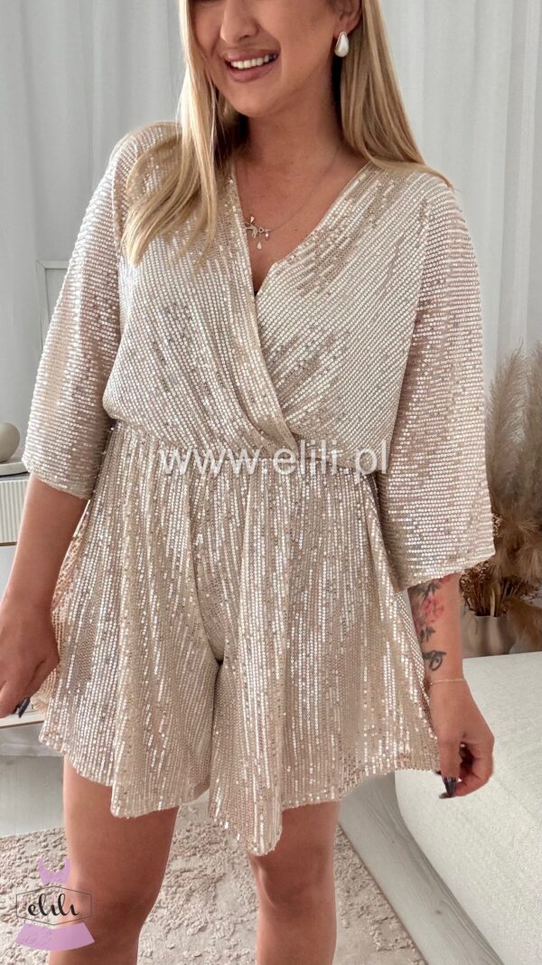 Cekinowy kombinezon z gumka w talii i wiskozową podszewką