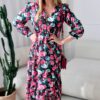 Niezwykle stylowy i pięknie uszyty kombinezon z szerokimi nogawkami. Posiada kopertowy dekolt i jest przewiązywany paskiem.