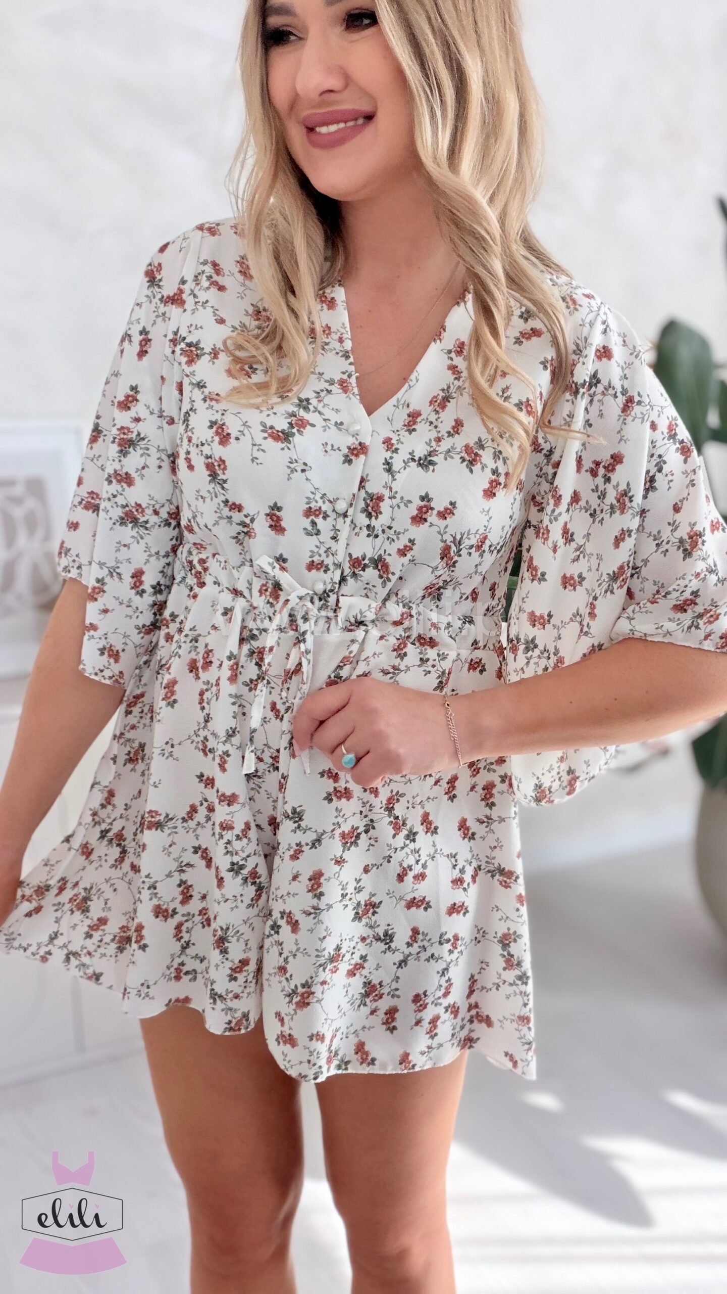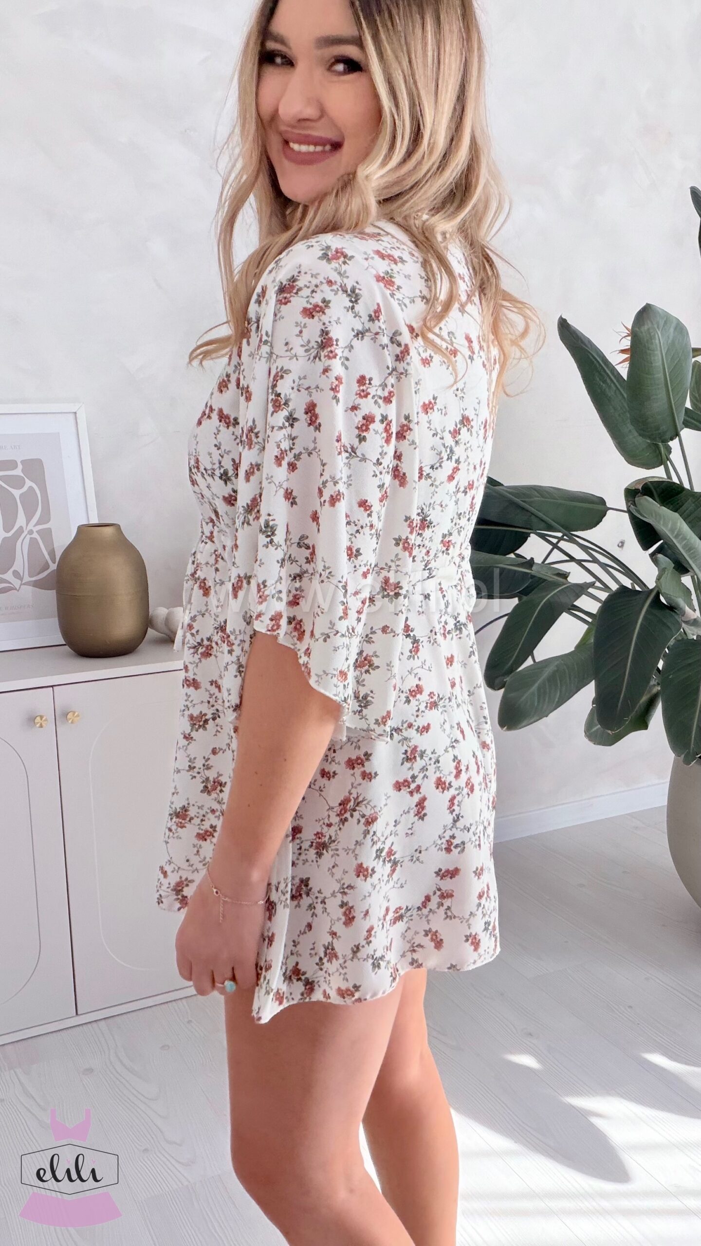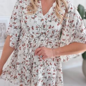 Kombinezon z troczkiem ecru w małe kwiatuszki