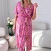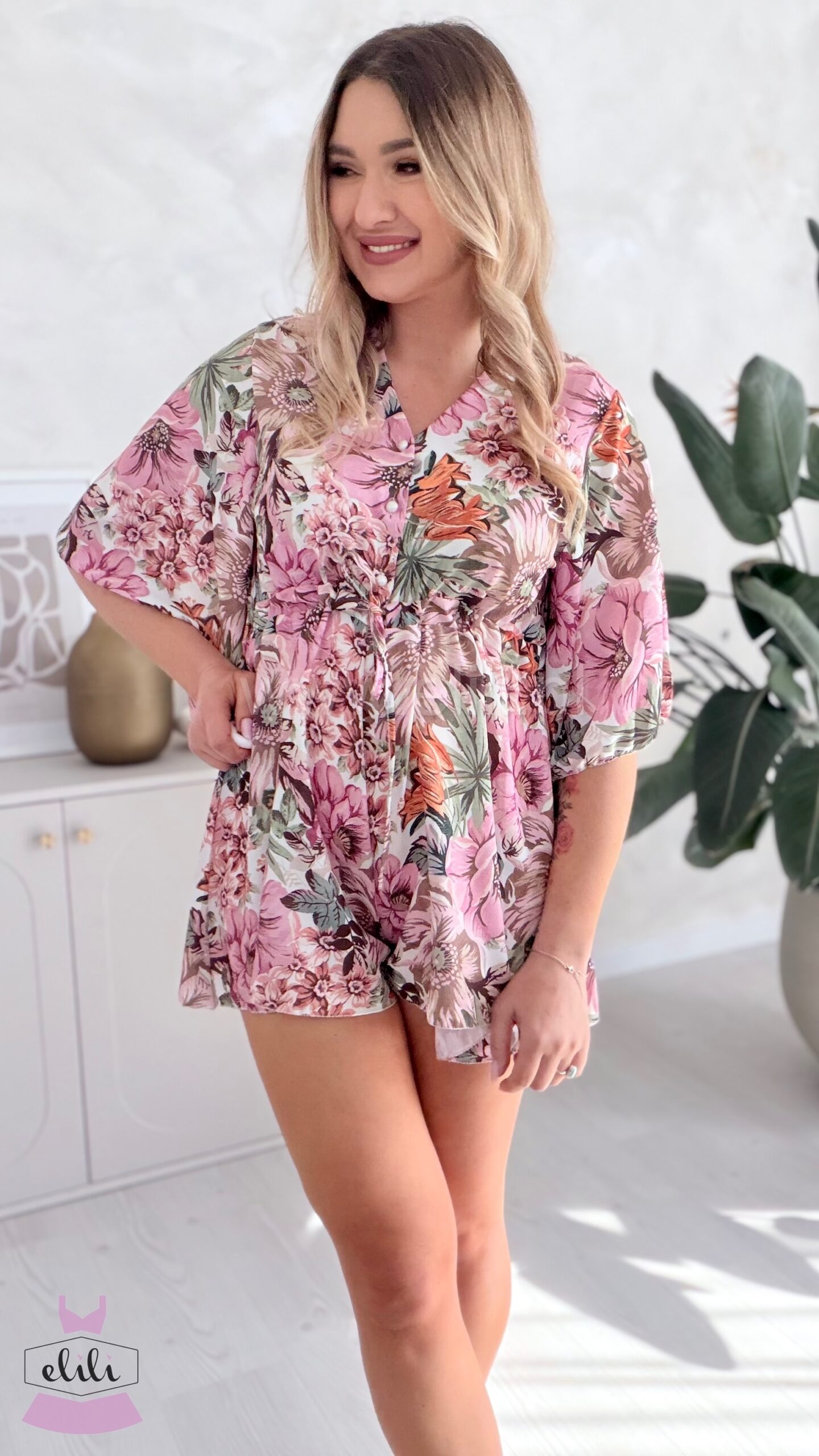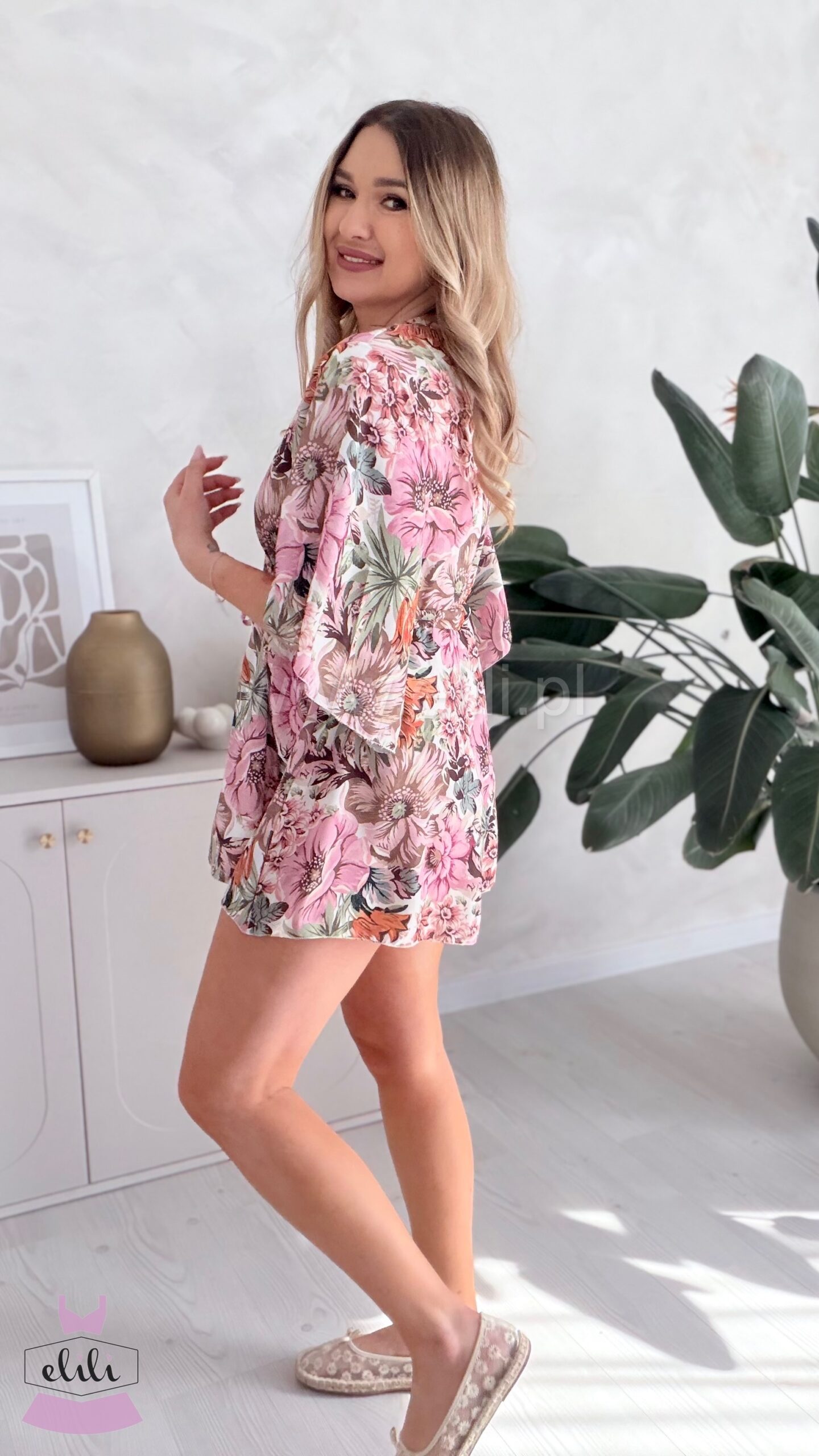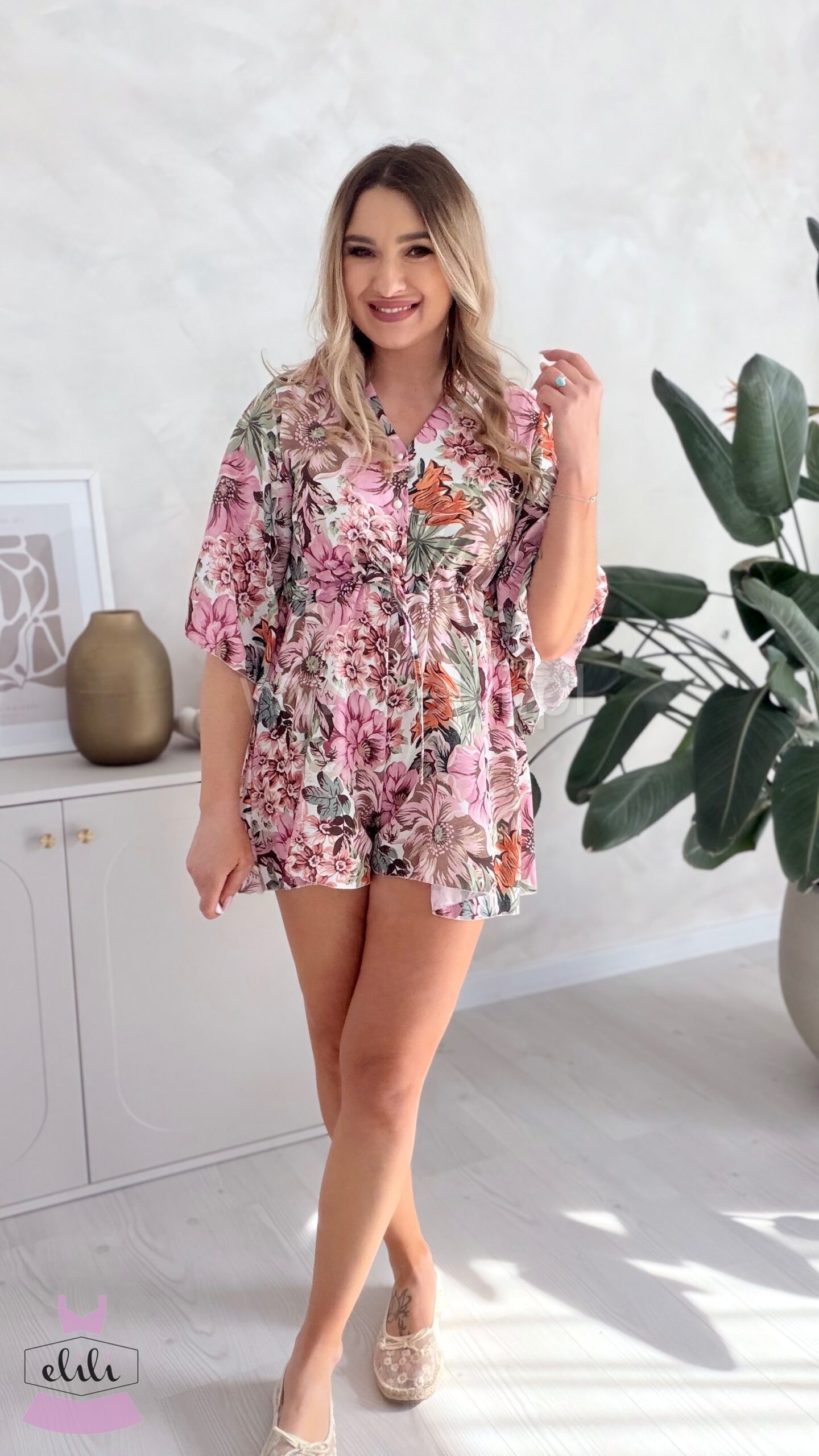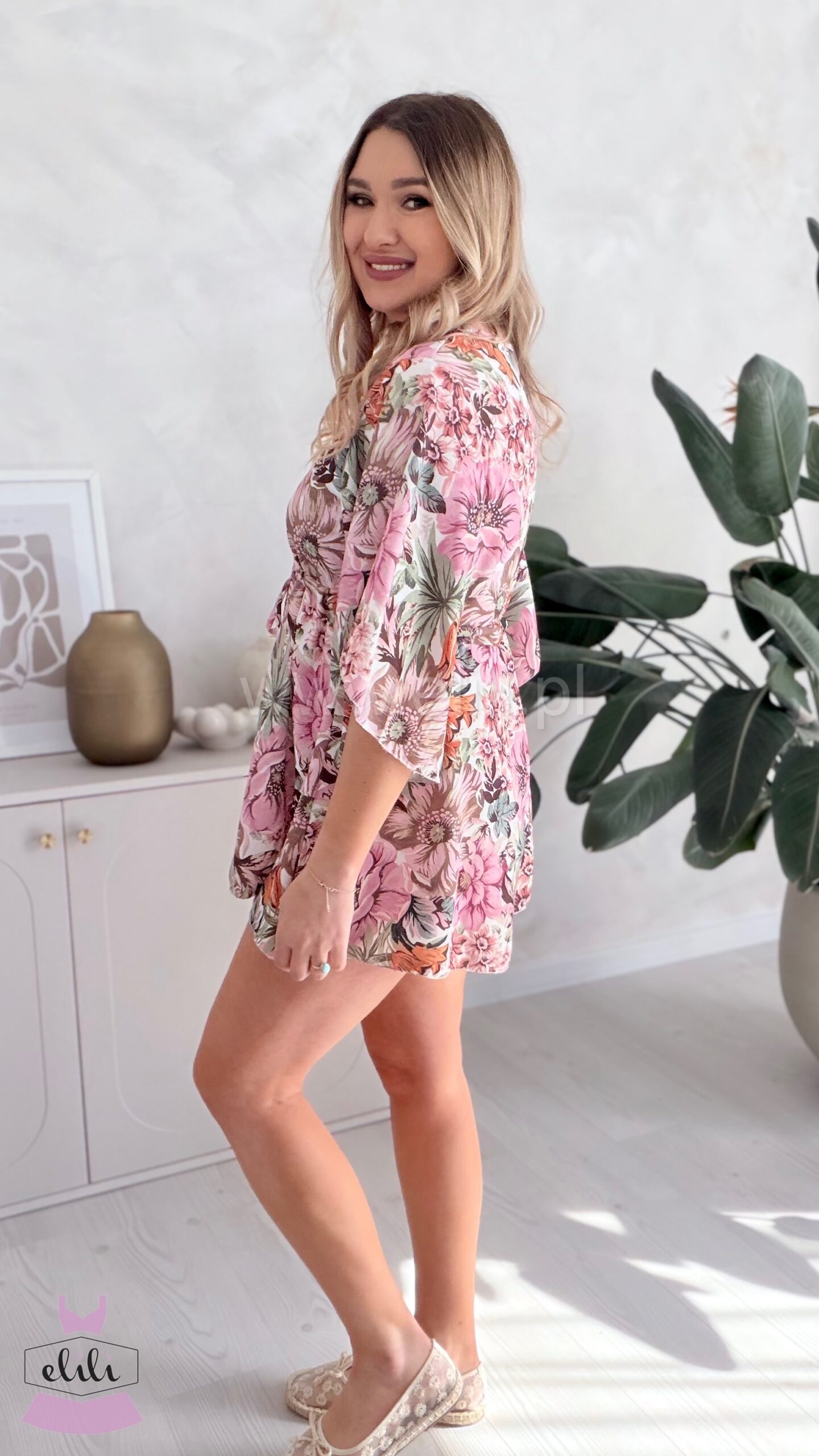 Kombinezon z troczkiem beżowa w pudrowe kwiaty