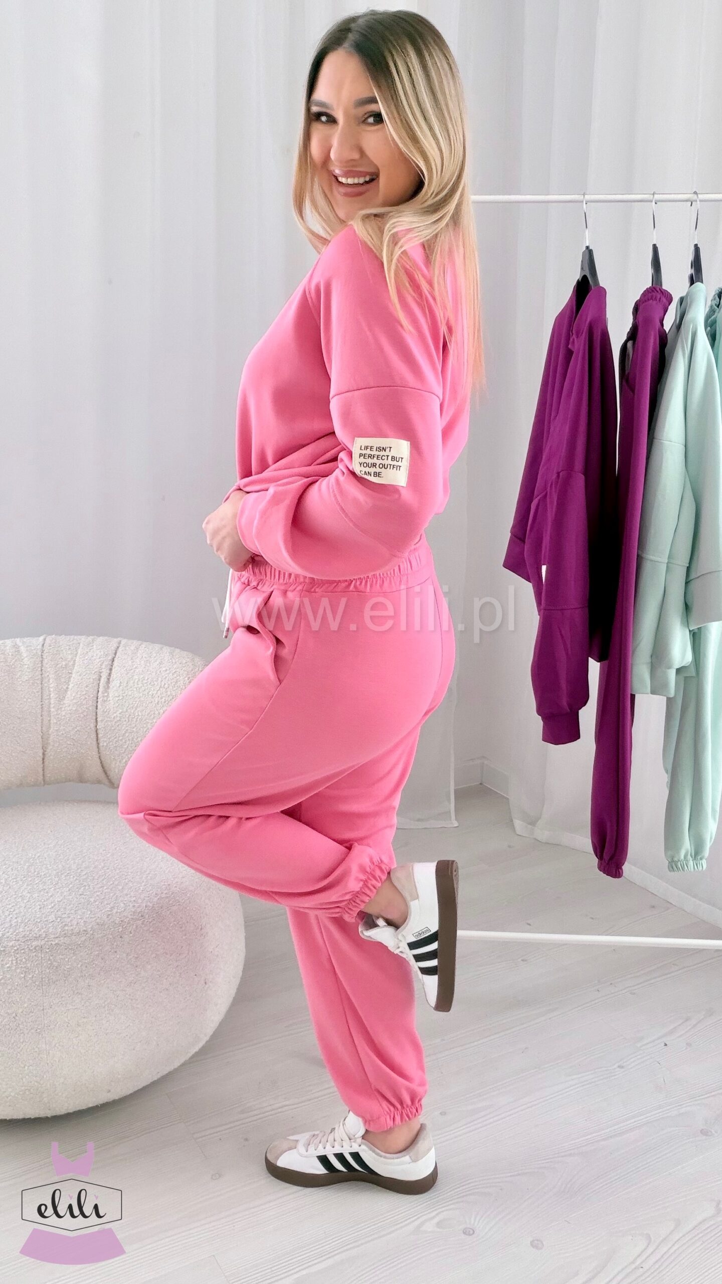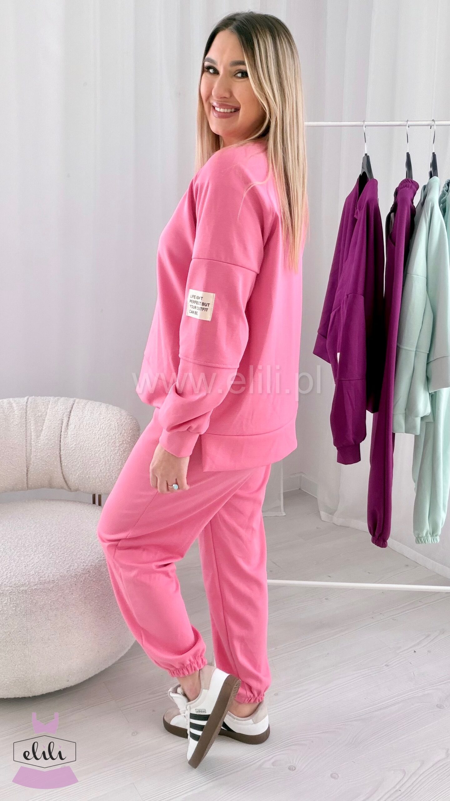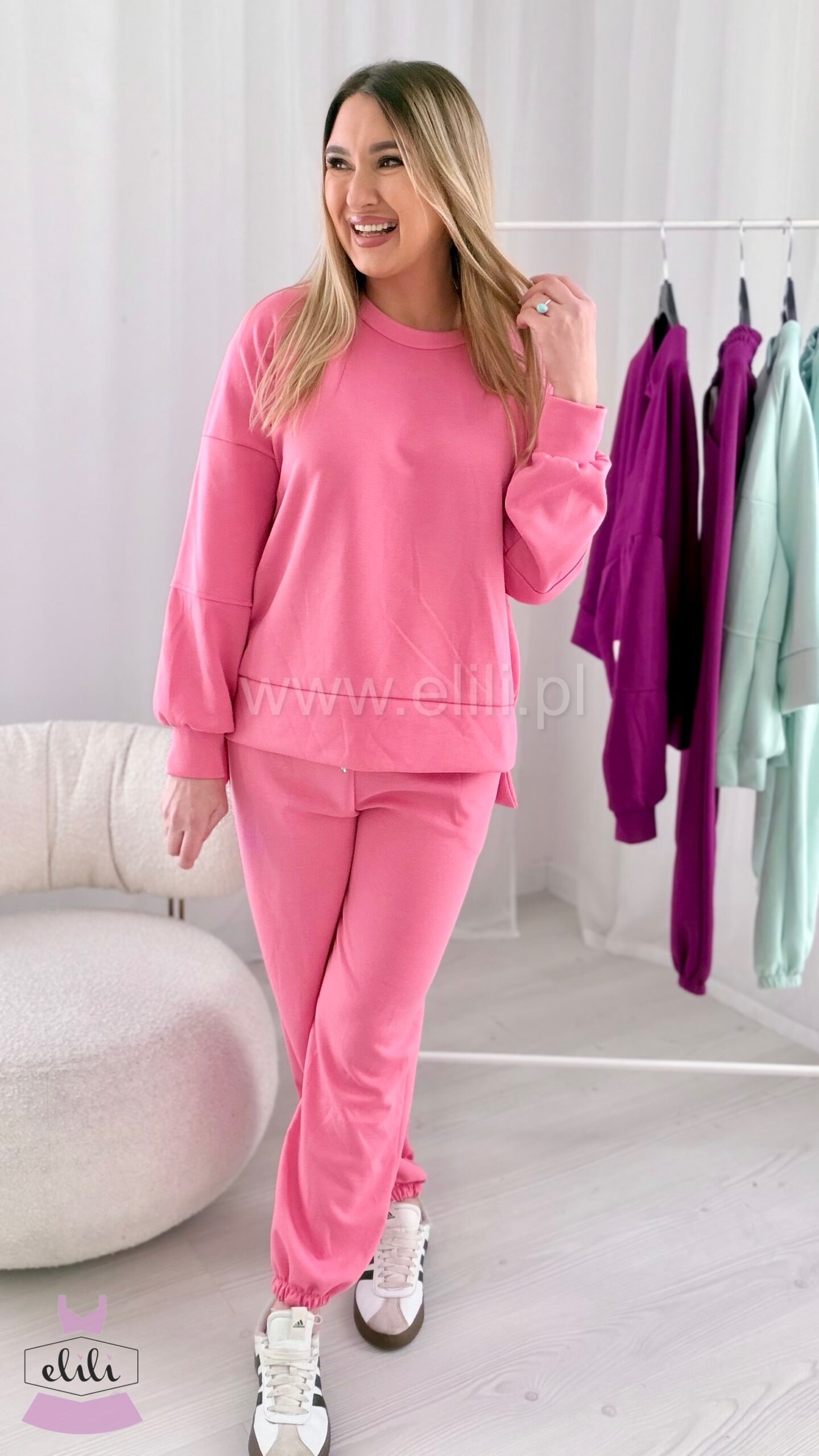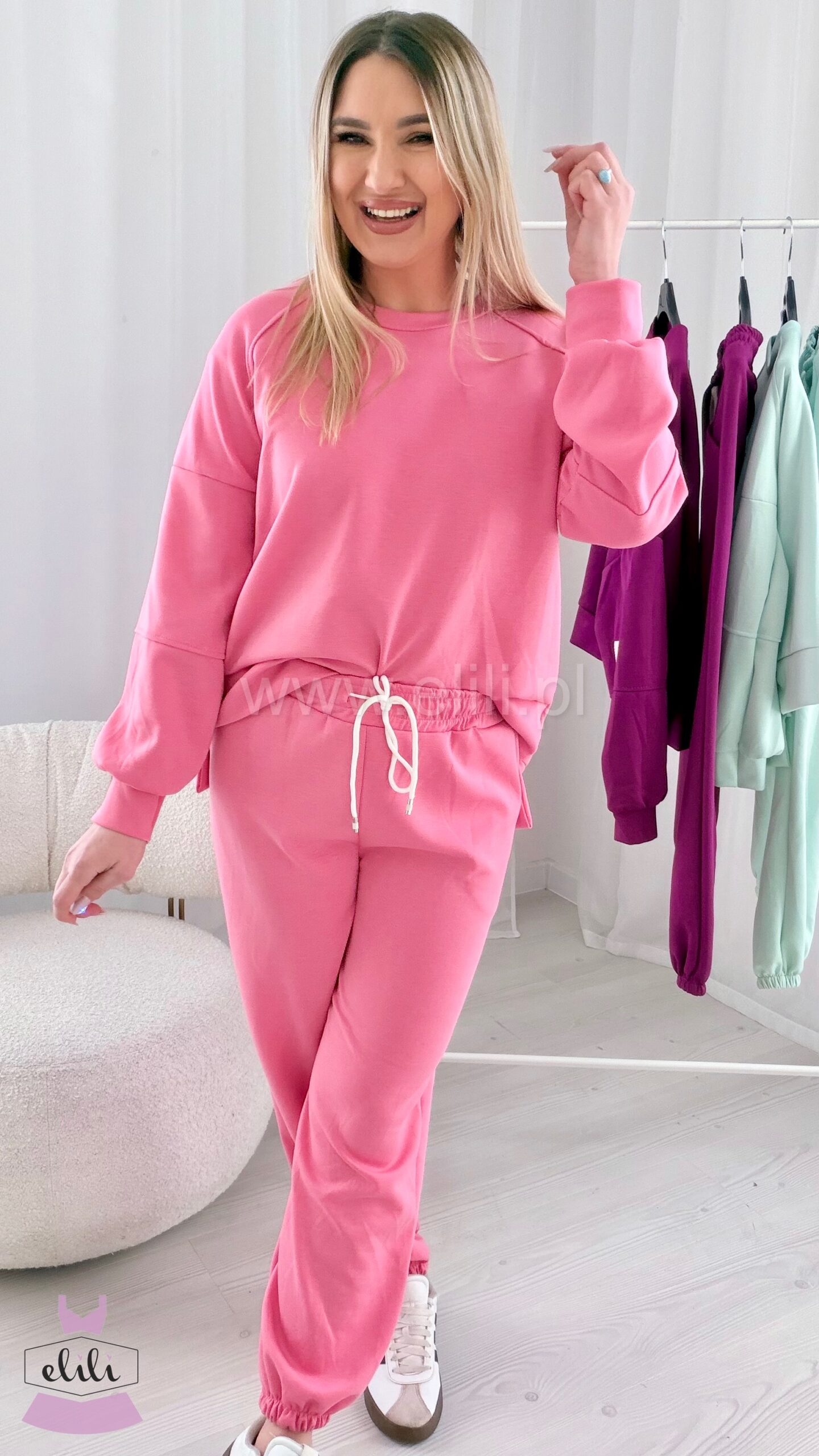 Nasz bestseller powraca w wiosennej odsłonie! Komplety które pokochałyście! Komplet składający się z bluzy oraz spodni ze ściagaczem.