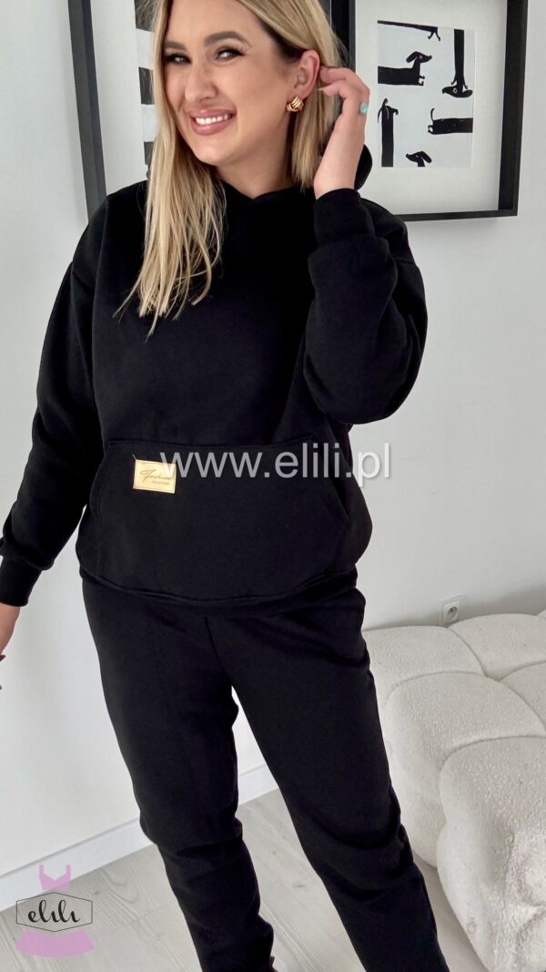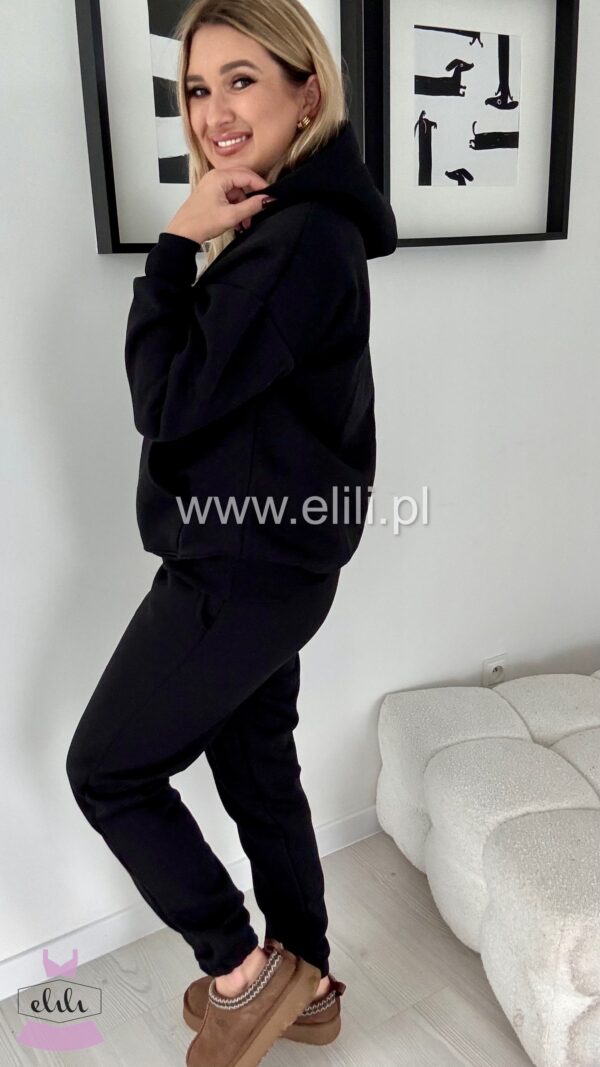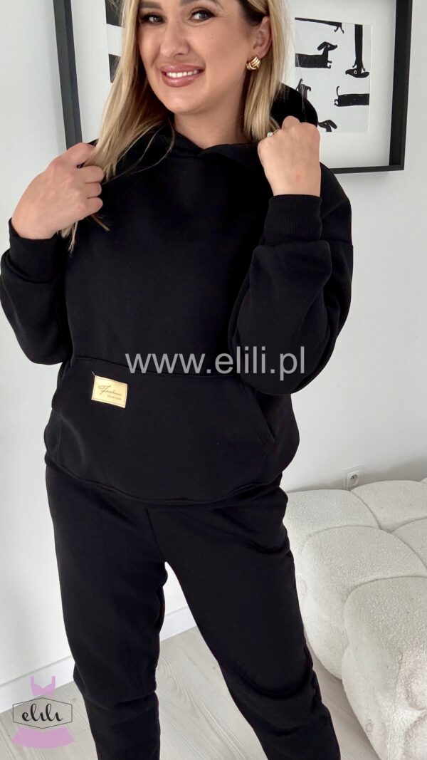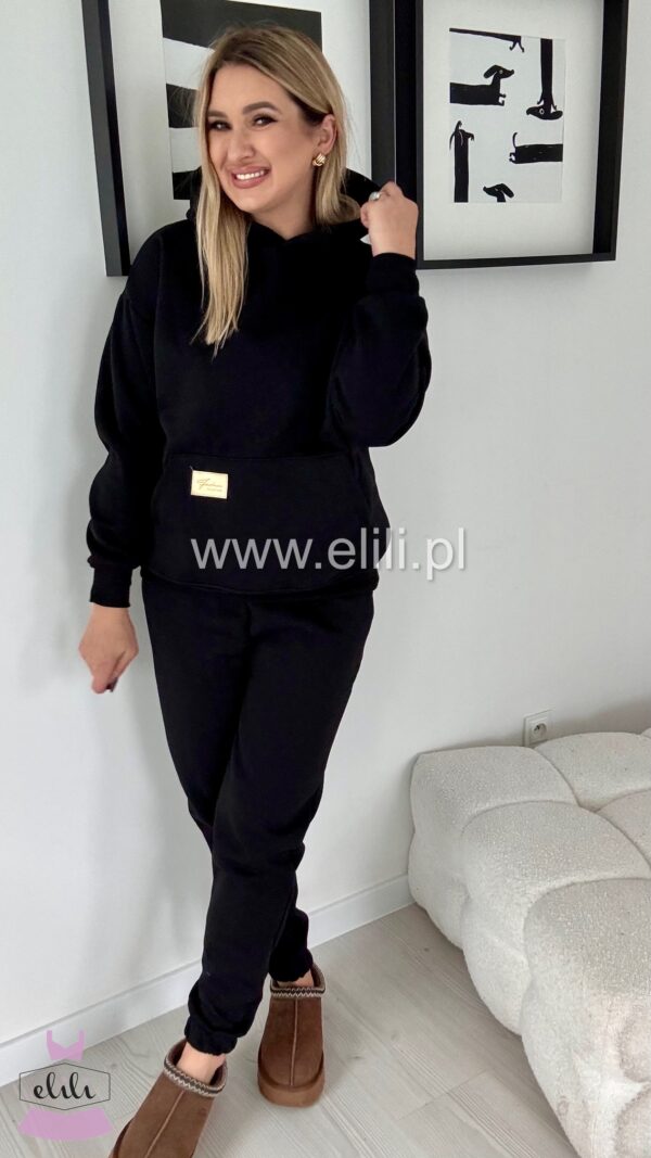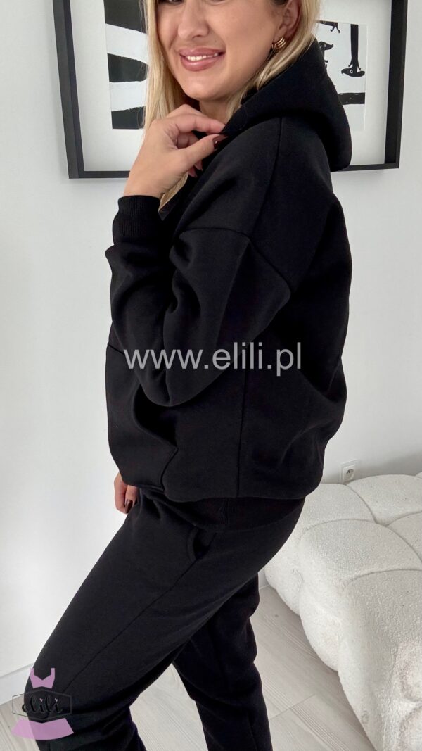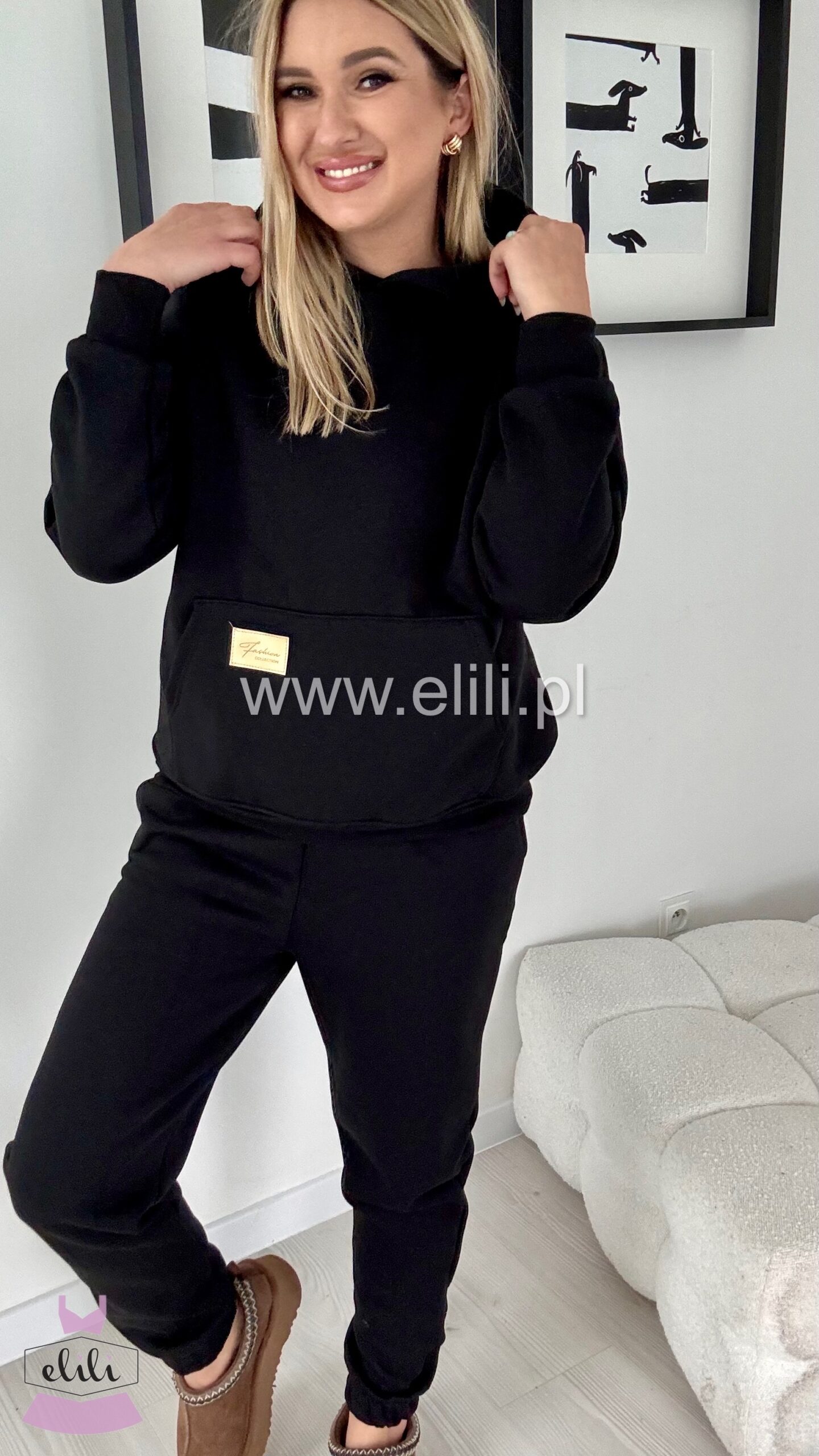 Komplet składający sie z bluzy z kapturem i spodni ze ściągaczem