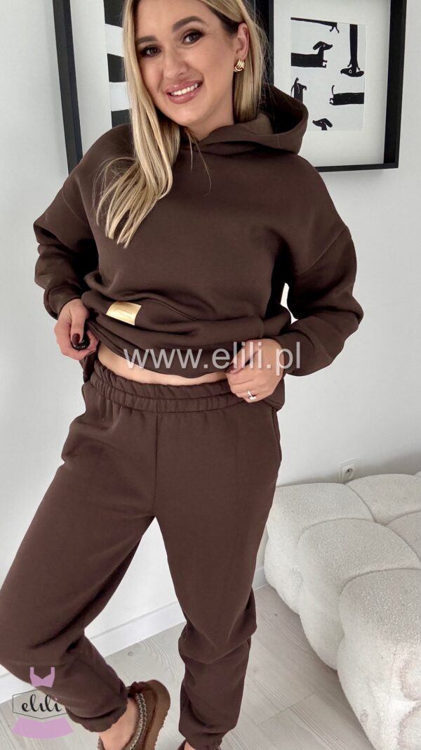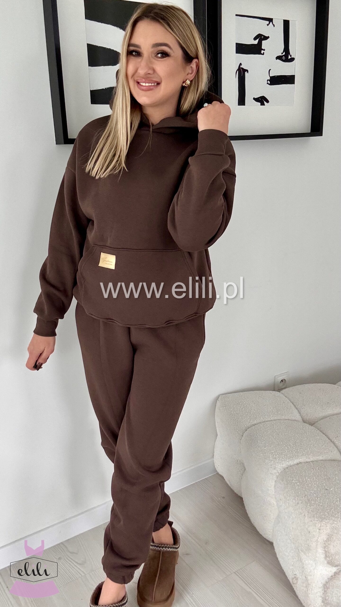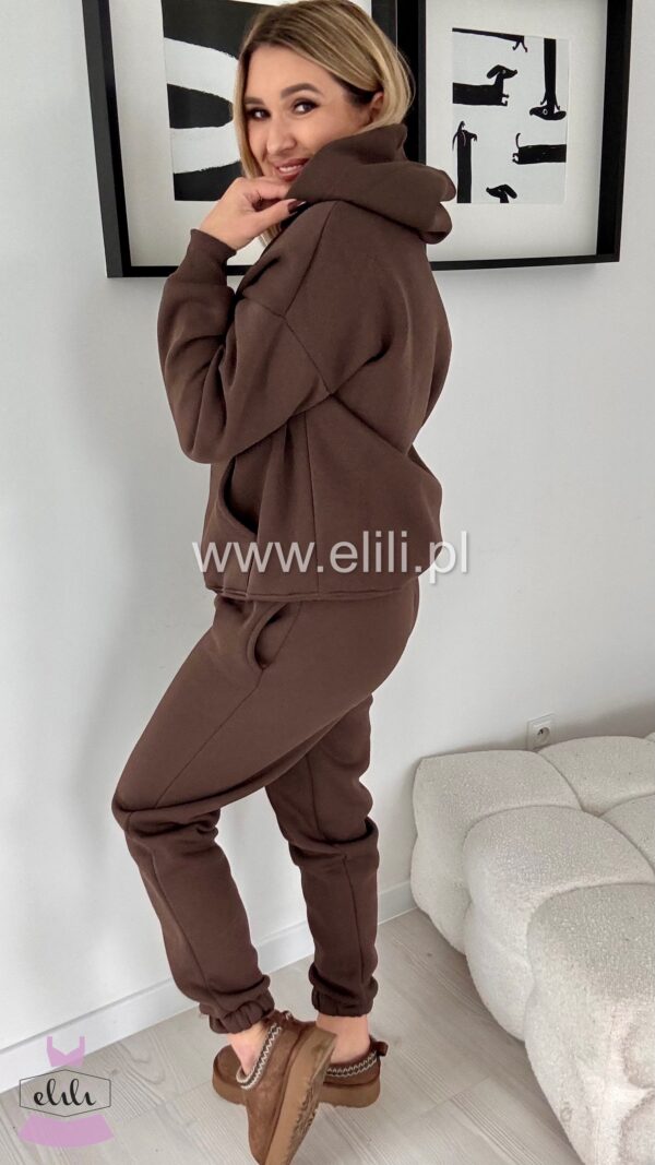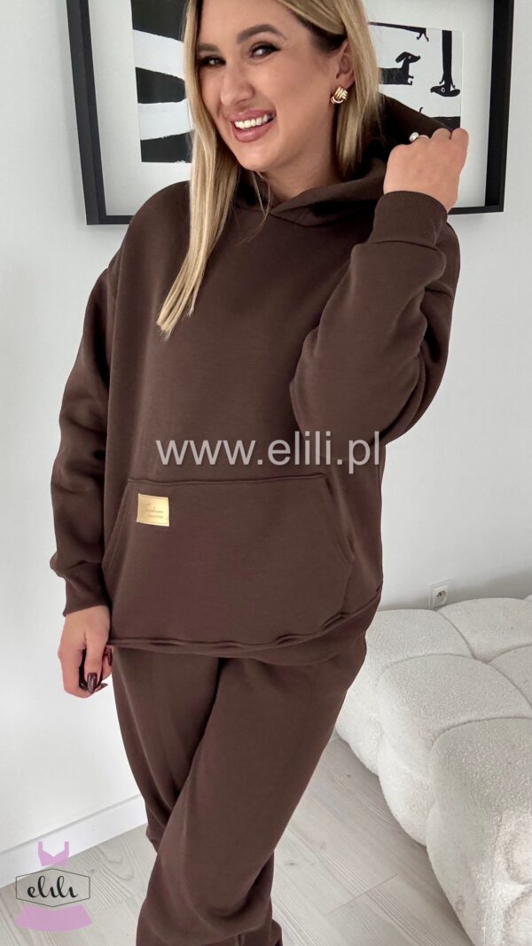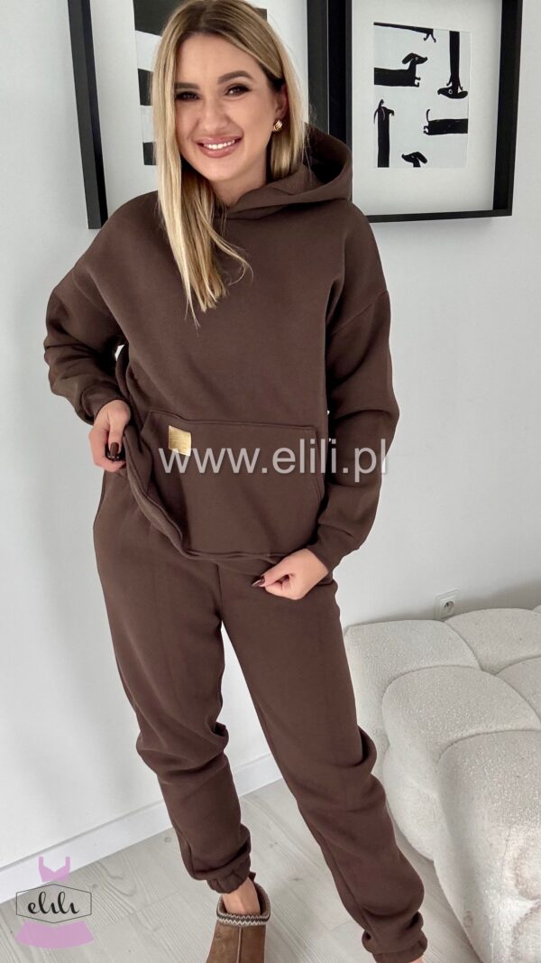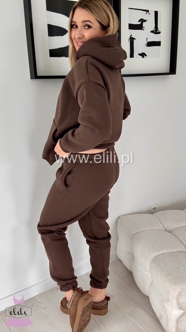 Komplet składający sie z bluzy z kapturem i spodni ze ściągaczem