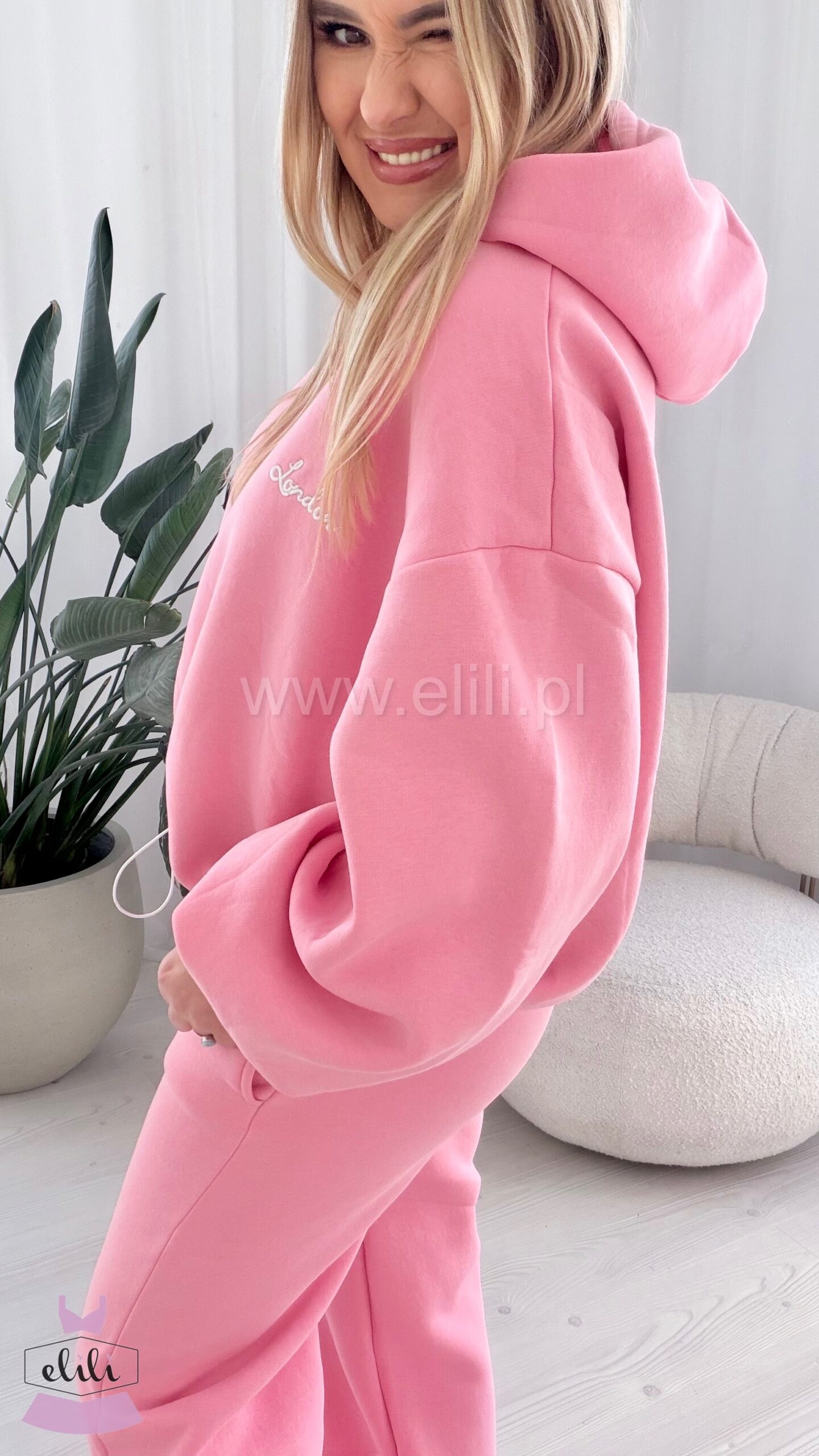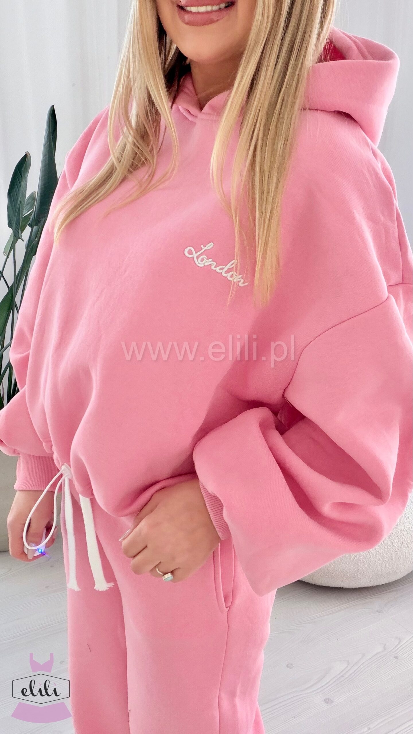 Bluza jest oceplana, posiada kaptur, mały haftowany nadruk oraz ściągacz na dole