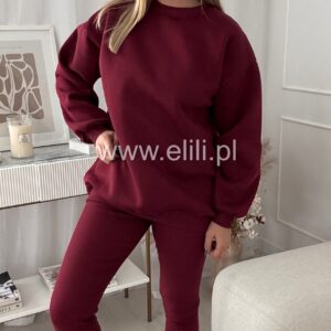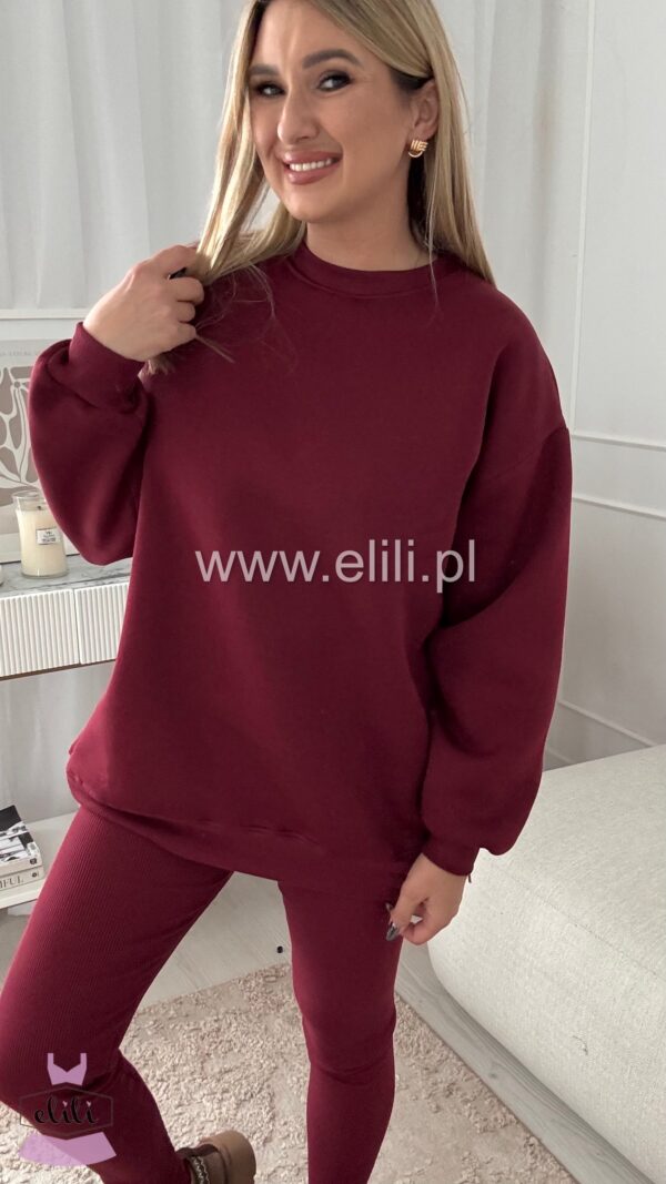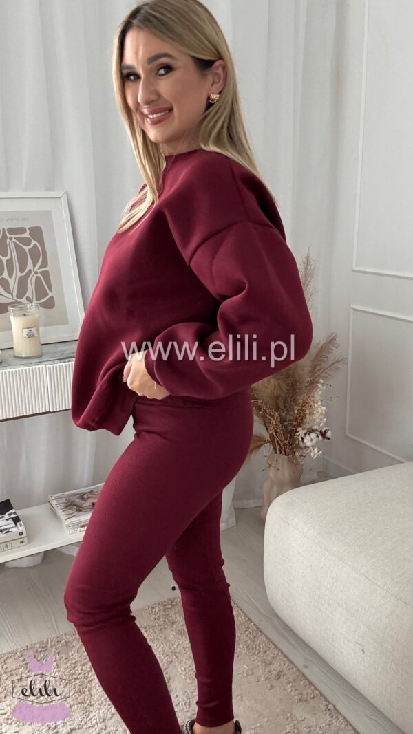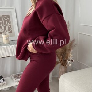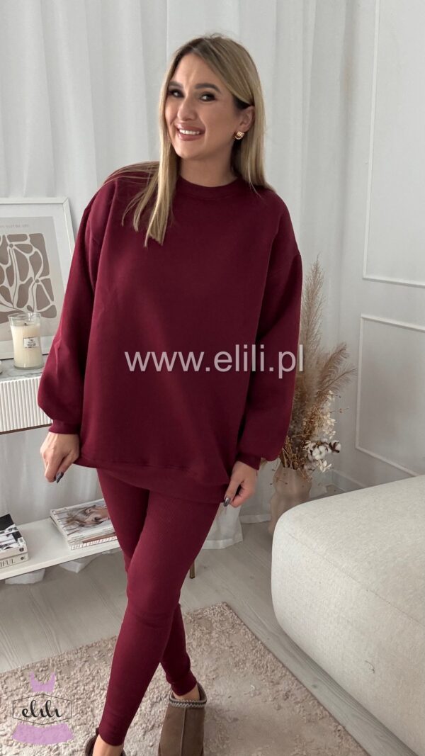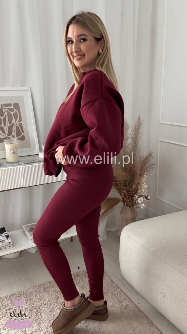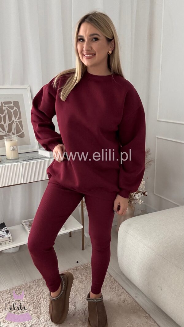 Komplet składający się z wygodnej bluzy z kapturem w rozmiarze plus size oraz elastycznych legginsów z bawełny prążkowanej