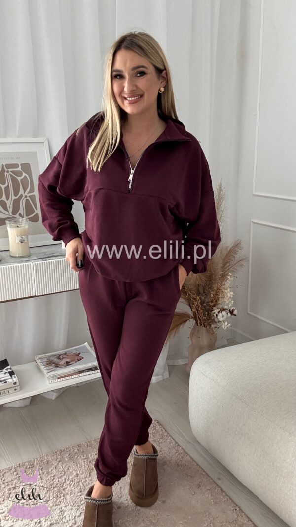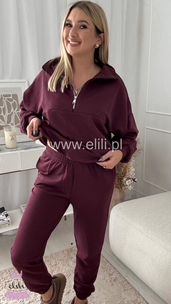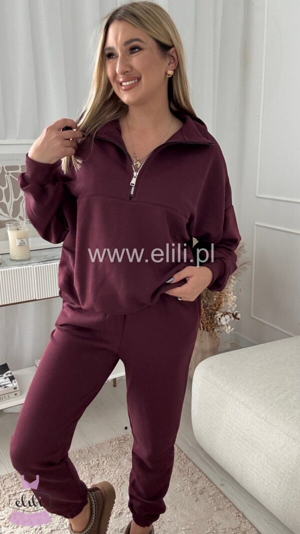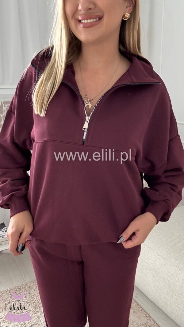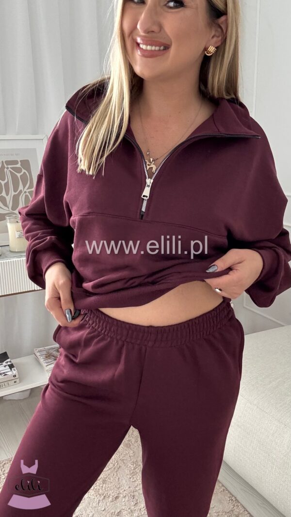 Komplet składający sie z bluzy zapinanej na zamek przy szyi i spodni ze ściągaczem
