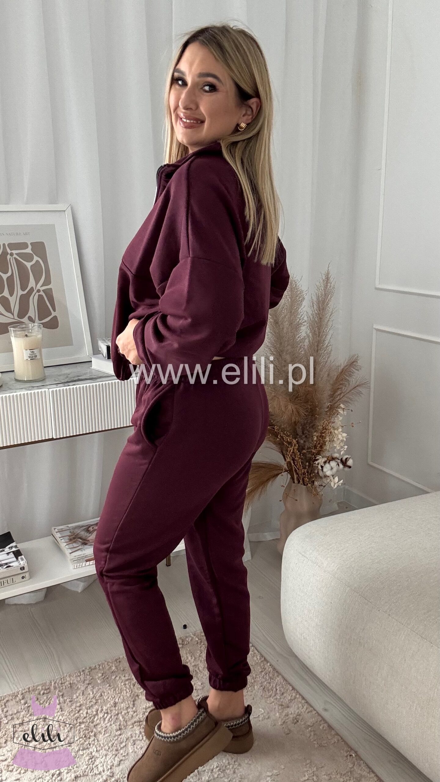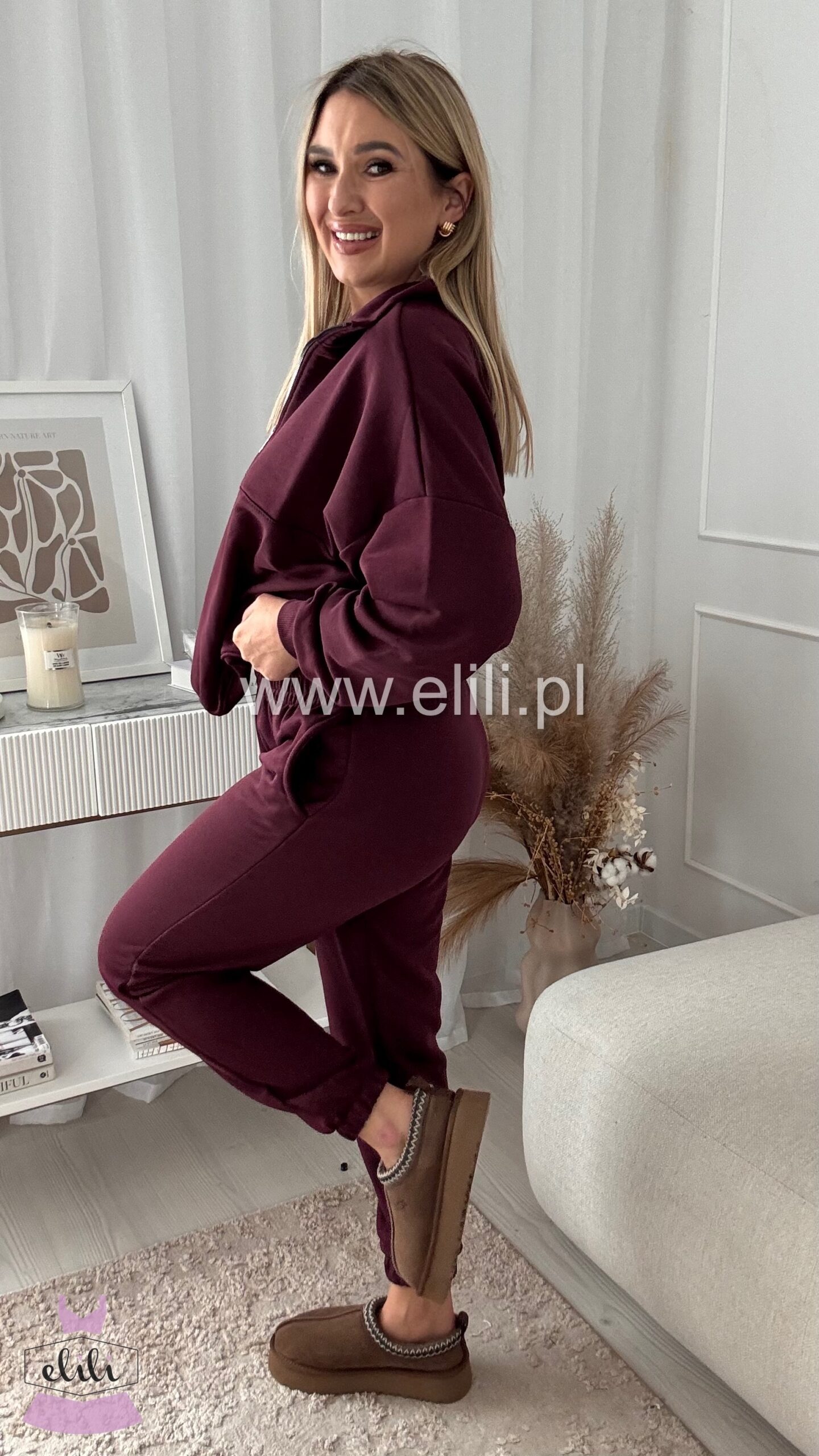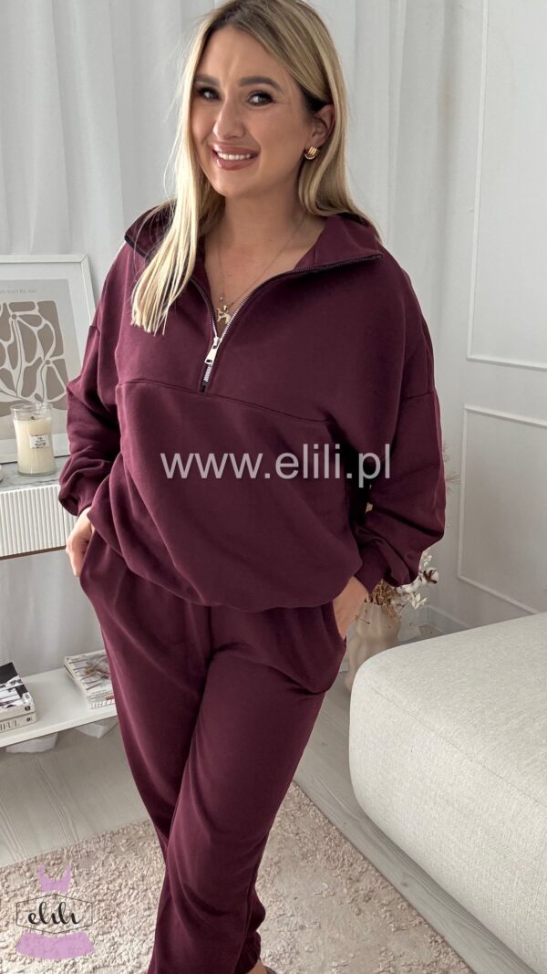 Komplet składający sie z bluzy zapinanej na zamek przy szyi i spodni ze ściągaczem