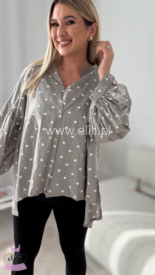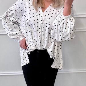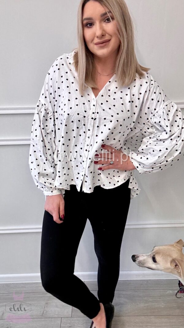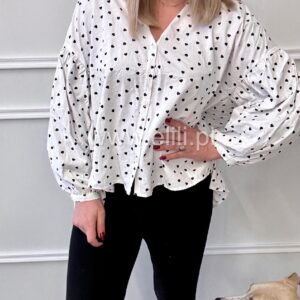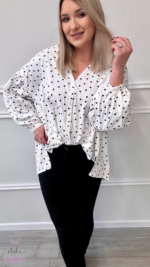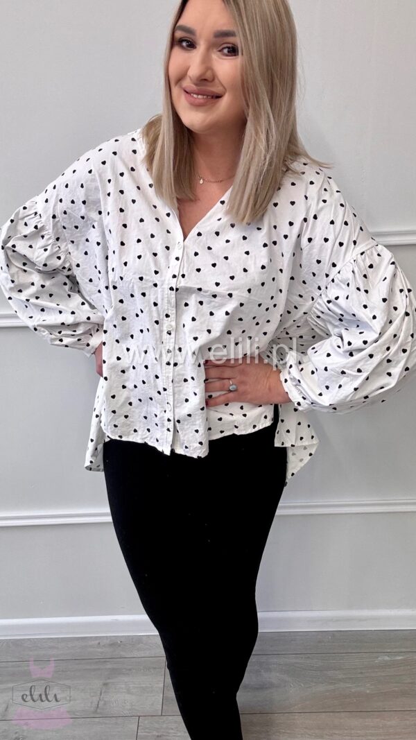 Prześliczna koszula z czarnymi sercami, posiada dłuzszy tył.