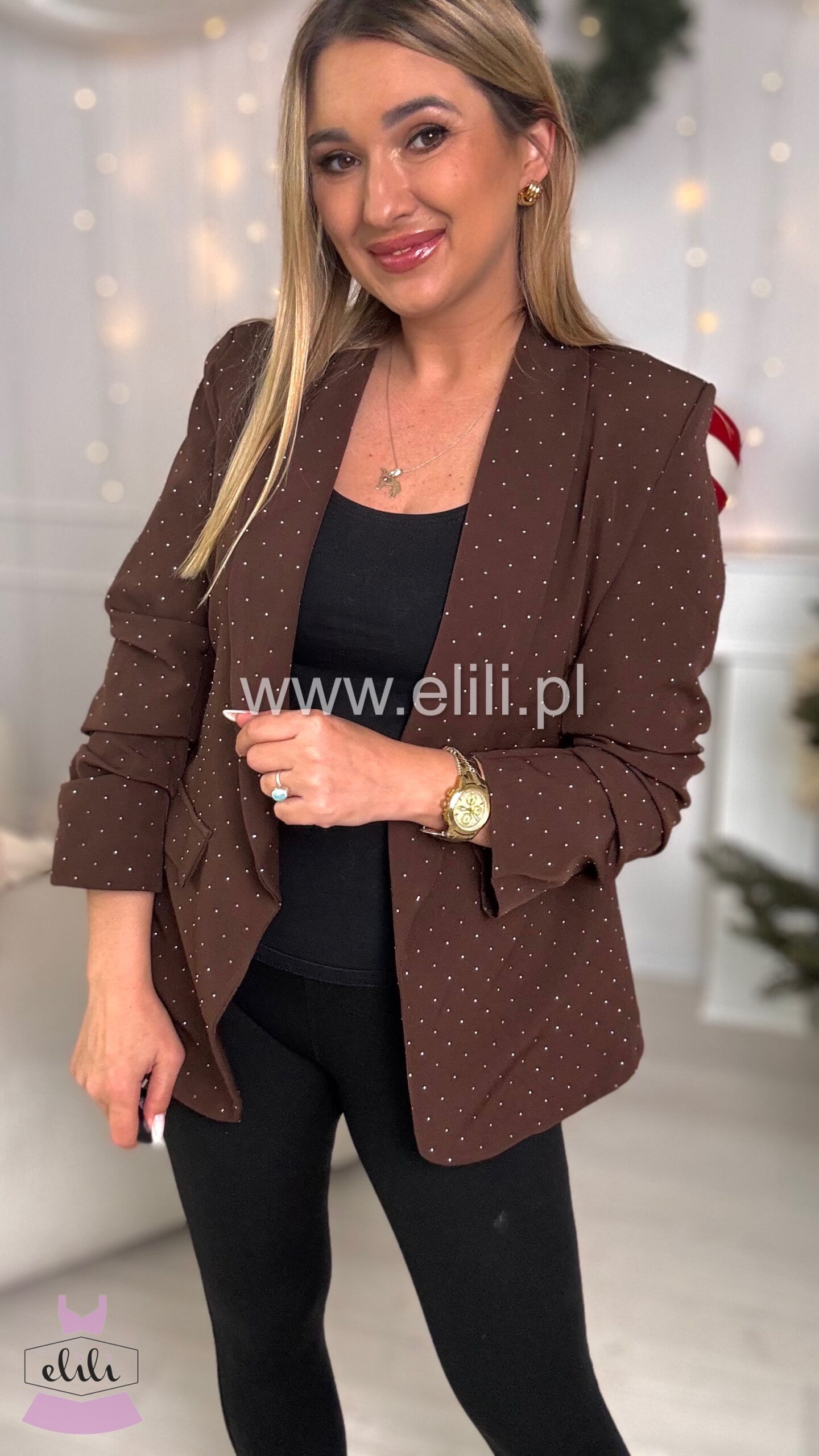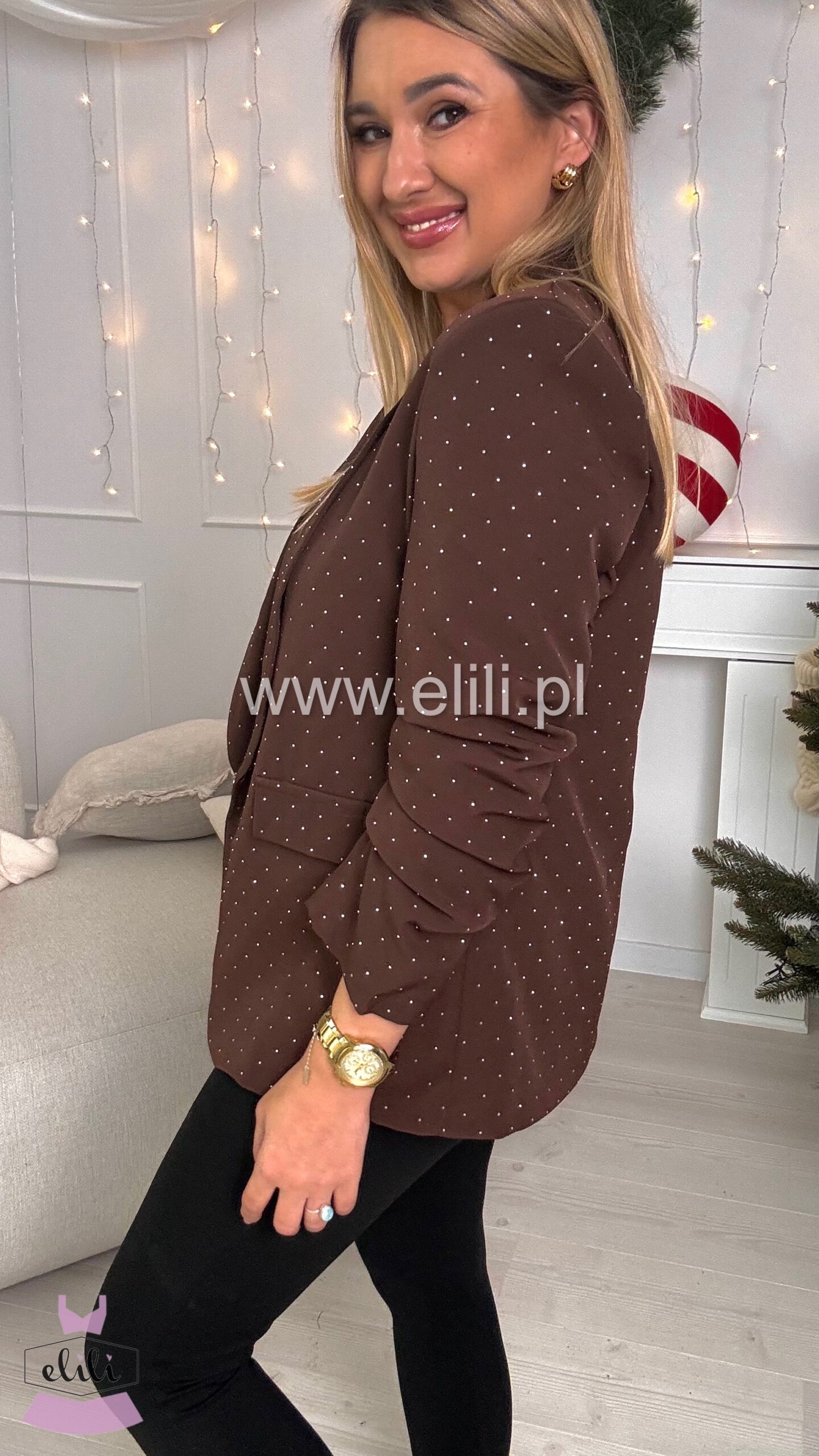 Ta delikatnie oversize’owa marynarka to połączenie klasycznej formy z modowym twistem. Luźniejszy krój subtelnie otula sylwetkę, nie tracąc przy tym eleganckiego charakteru. Dzięki pełnej podszewce marynarka dobrze się układa i zapewnia komfort noszenia, niezależnie od pory roku. Wyjątkowego charakteru dodają jej drapowania na mankietach, które przełamują prostotę fasonu i wprowadzają nutę nonszalancji – możesz nosić ją klasycznie lub z lekko podwiniętymi rękawami dla bardziej swobodnego efektu. To model idealny zarówno do biura, jak i na co dzień – pasuje do jeansów, spodni garniturowych, a nawet zwiewnych sukienek. Stylowa, kobieca i wygodna – stanie się bazą wielu udanych stylizacji.