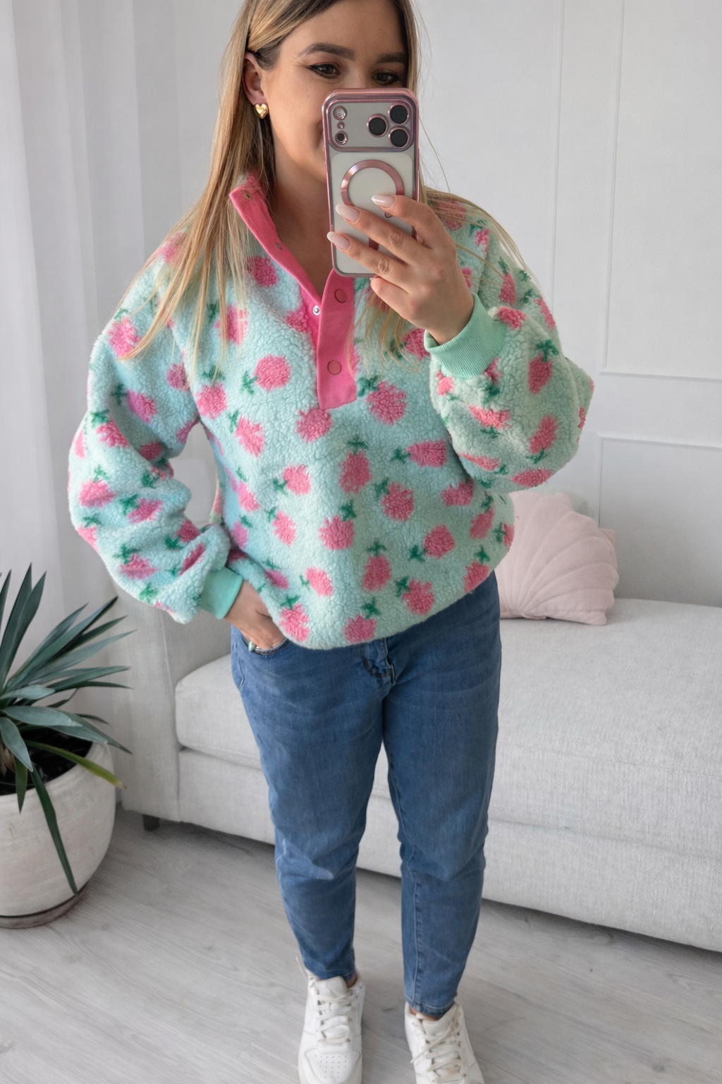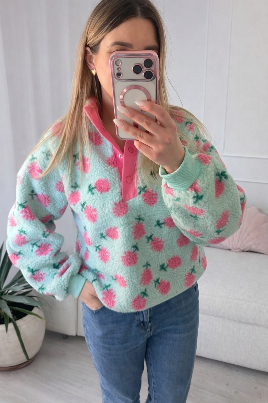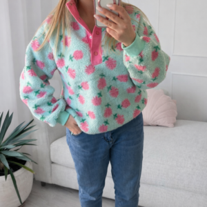 Polar w kwiatuszki turkusowy