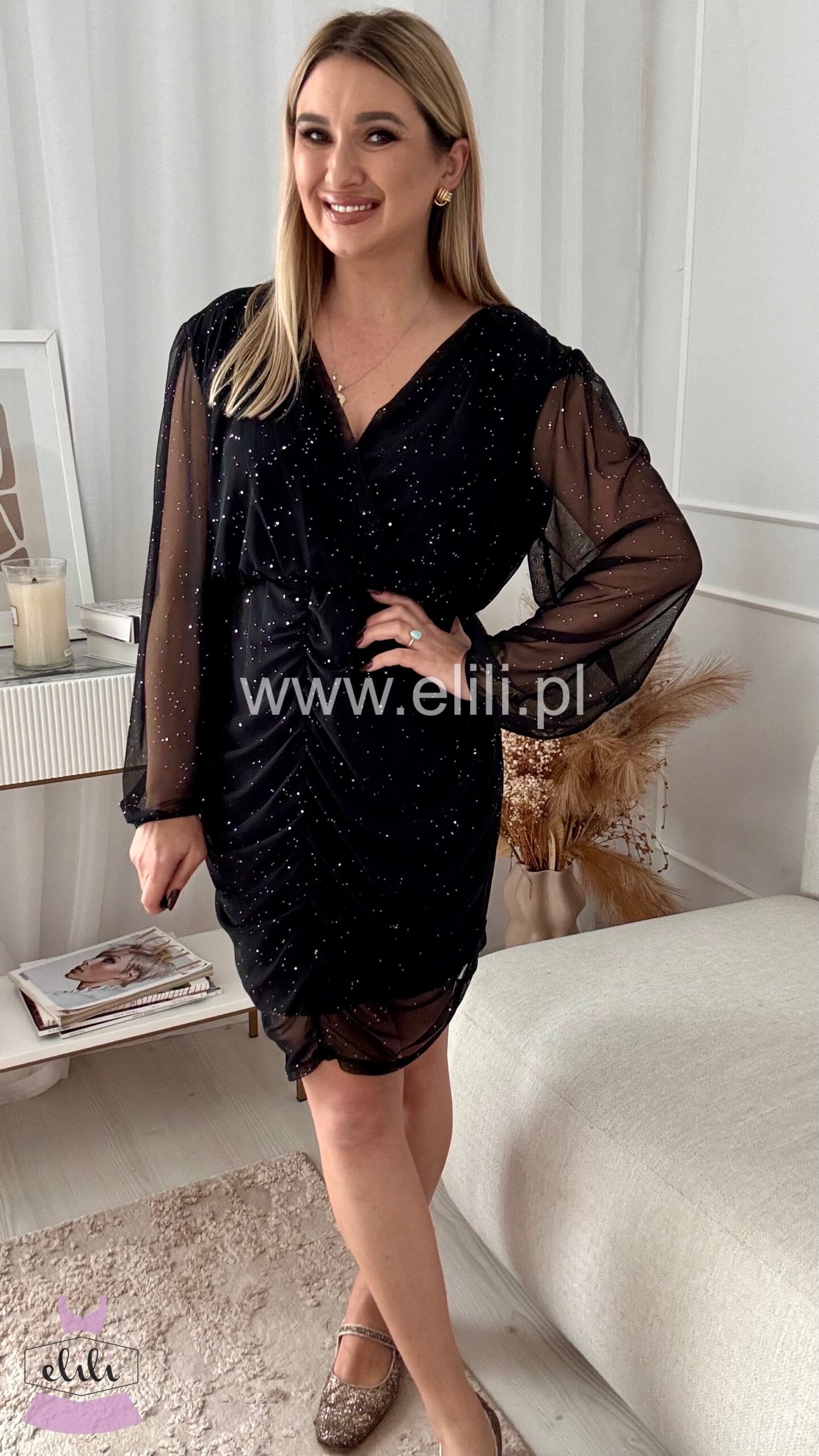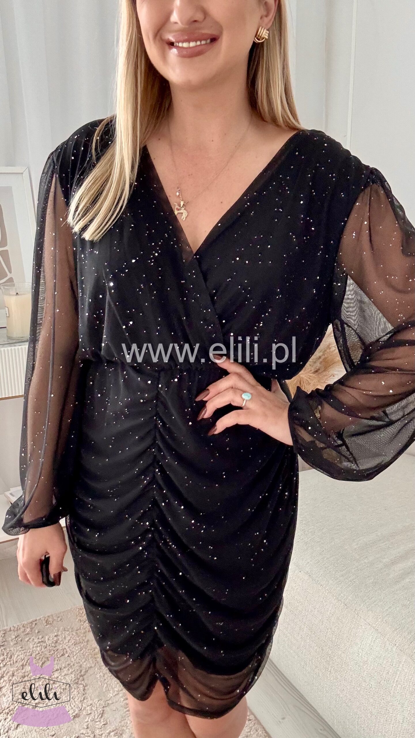 Dopasowana sukienka z drapowaniem to elegancka propozycja, która doskonale podkreśla sylwetkę, jednocześnie zapewniając komfort noszenia. Wykonana z bardzo elastycznego materiału, idealnie dopasowuje się do ciała, subtelnie eksponując kształty. Drapowanie na przodzie dodaje sukience finezyjnego charakteru, a kopertowy dekolt wprowadza element zmysłowości, przyciągając wzrok i nadając całemu fasonowi wyjątkowego wdzięku. To idealna sukienka na wieczorne wyjścia, koktajlowe przyjęcia czy romantyczne spotkania, łącząca elegancję z nowoczesnym stylem.