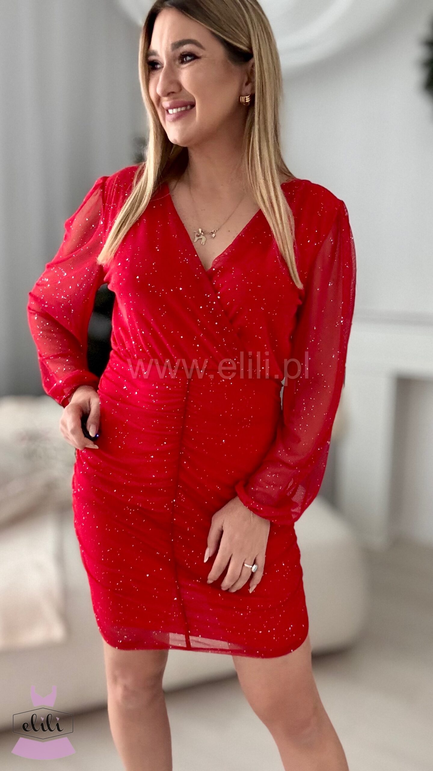 Sara Plus size shine czerwona