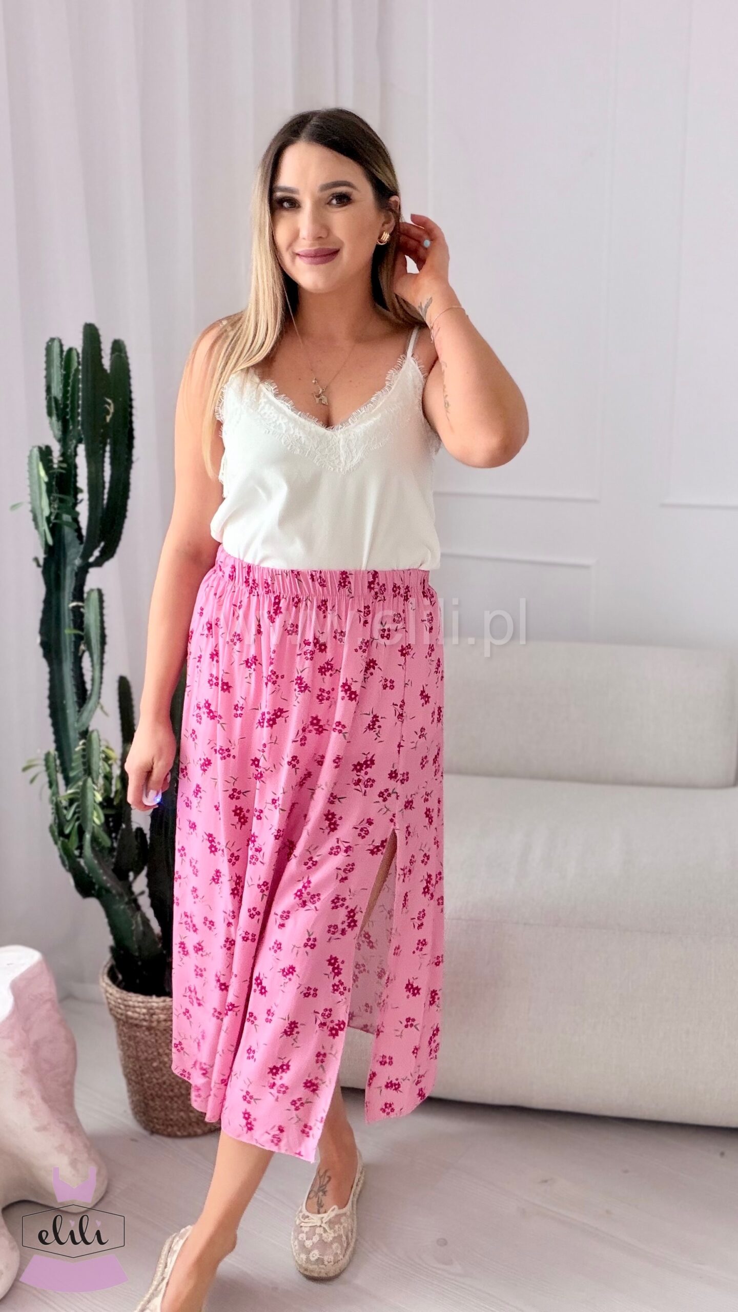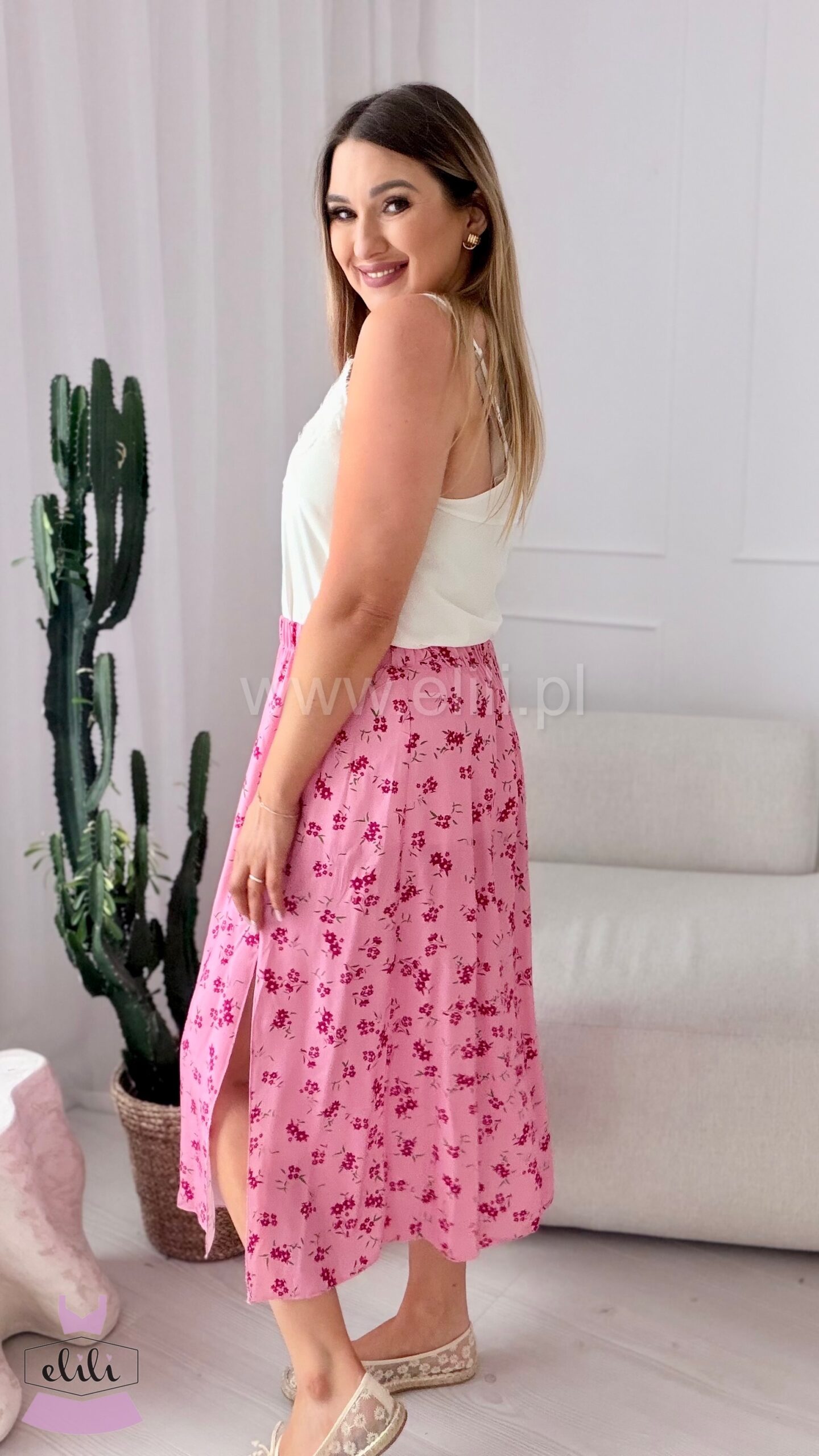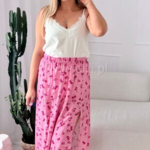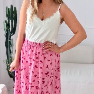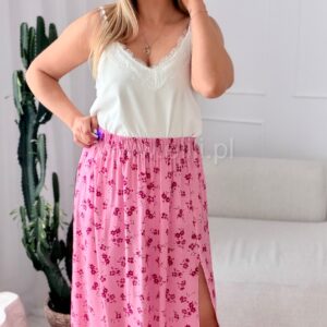 Spódnica z wiskozy różowa w fuksjowe kwiaty