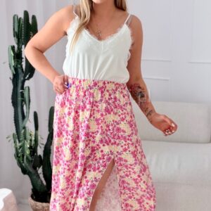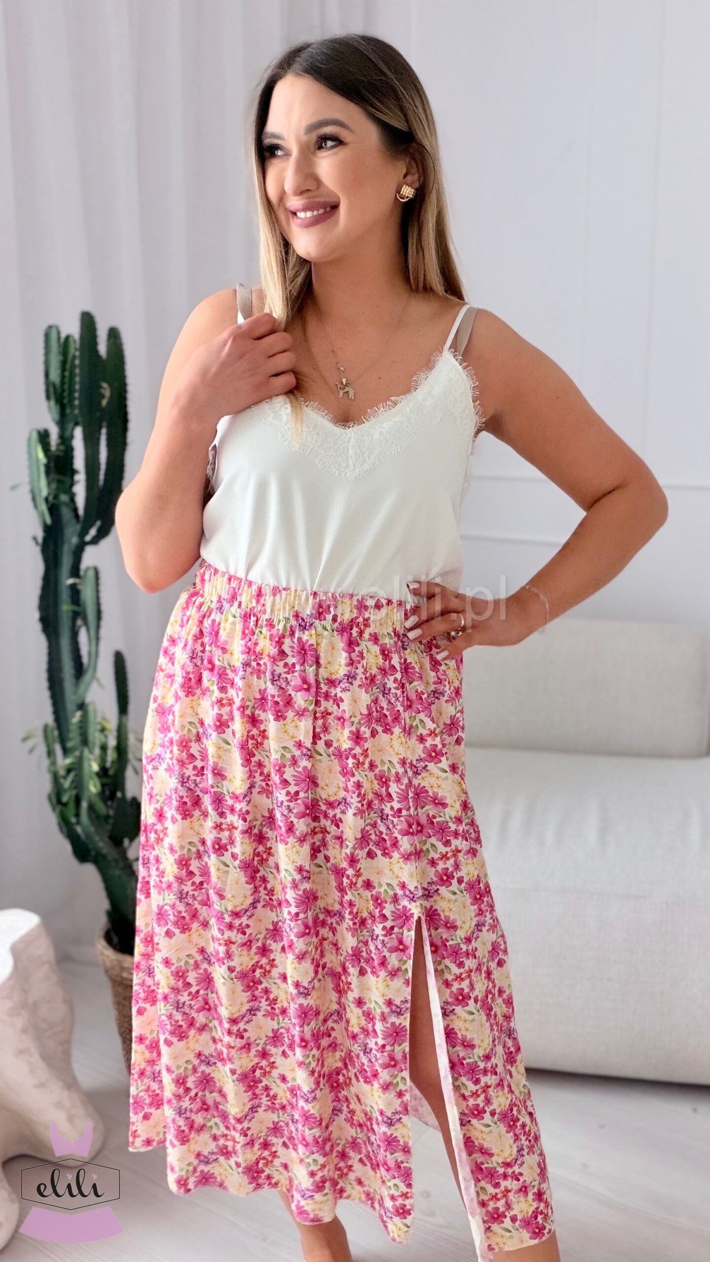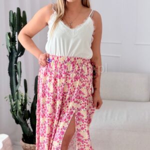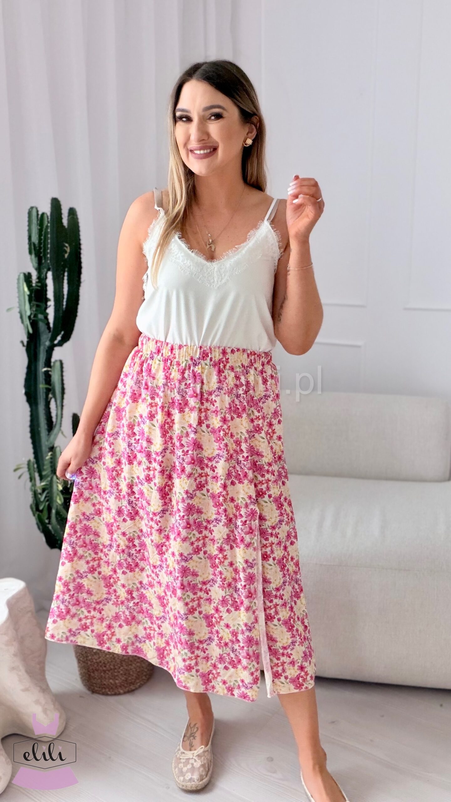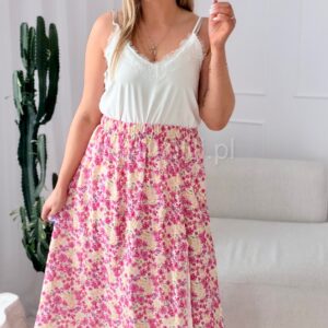 Spódnica z wiskozy różowo-fioletowe kwiatuszki