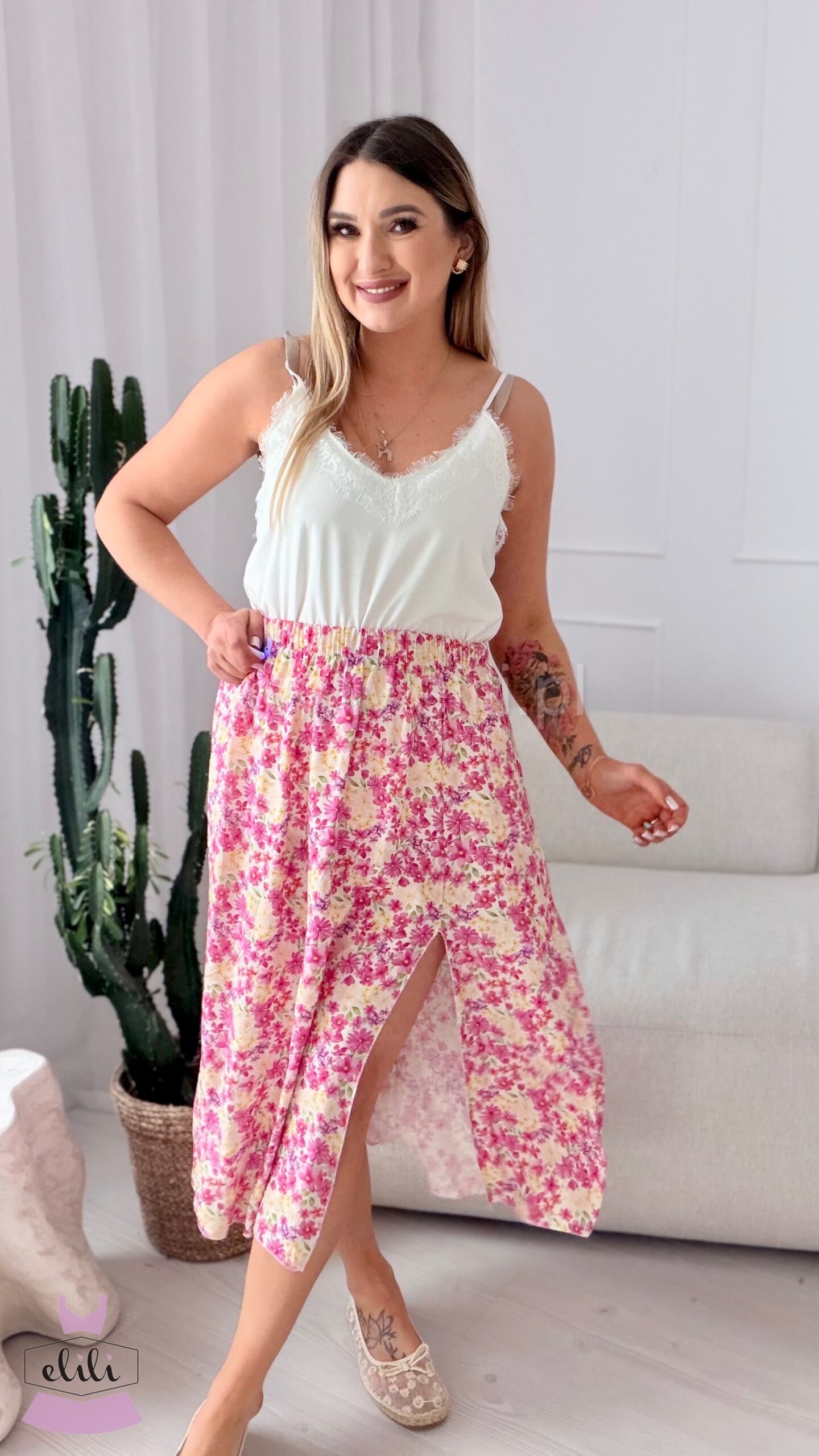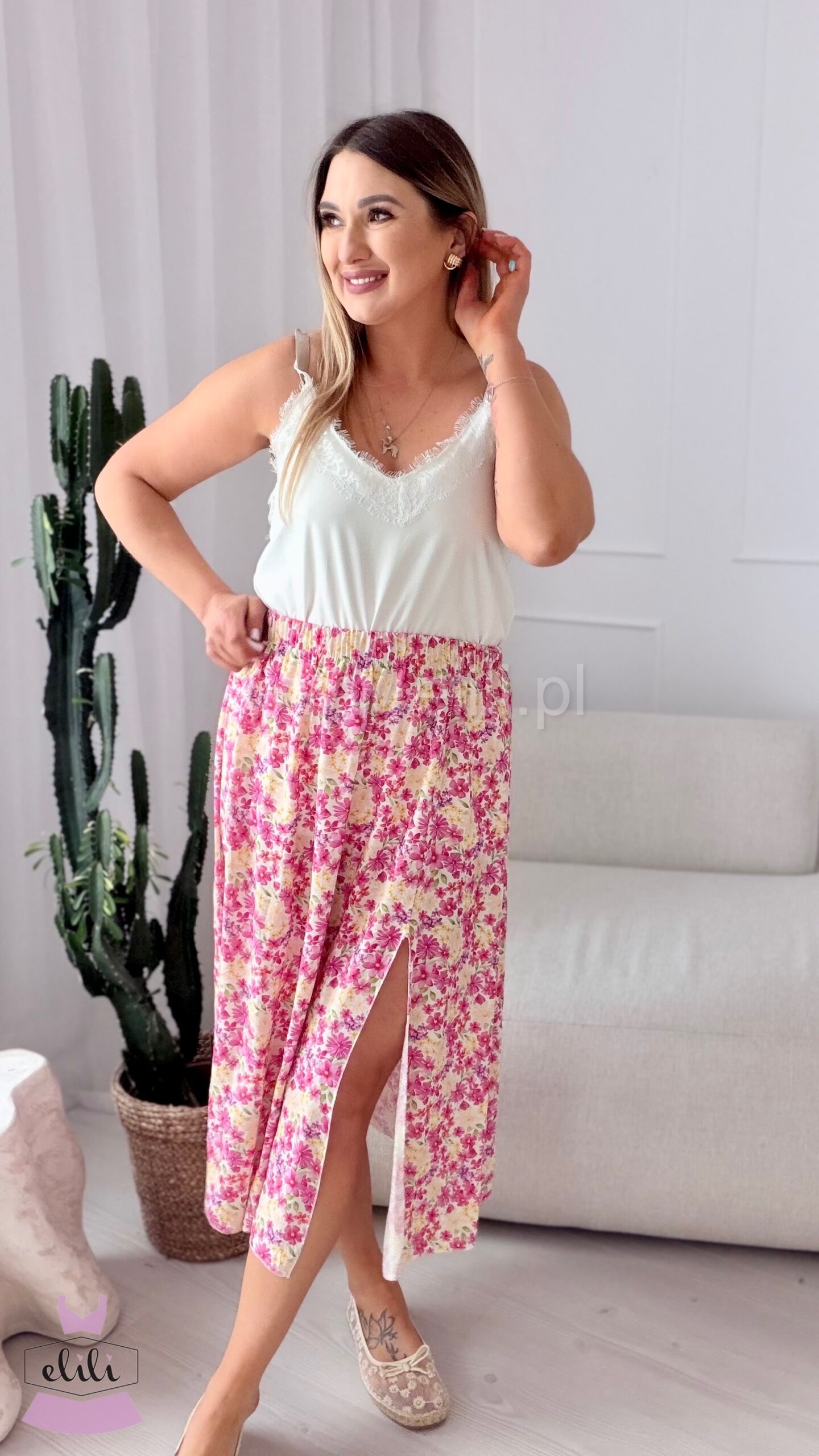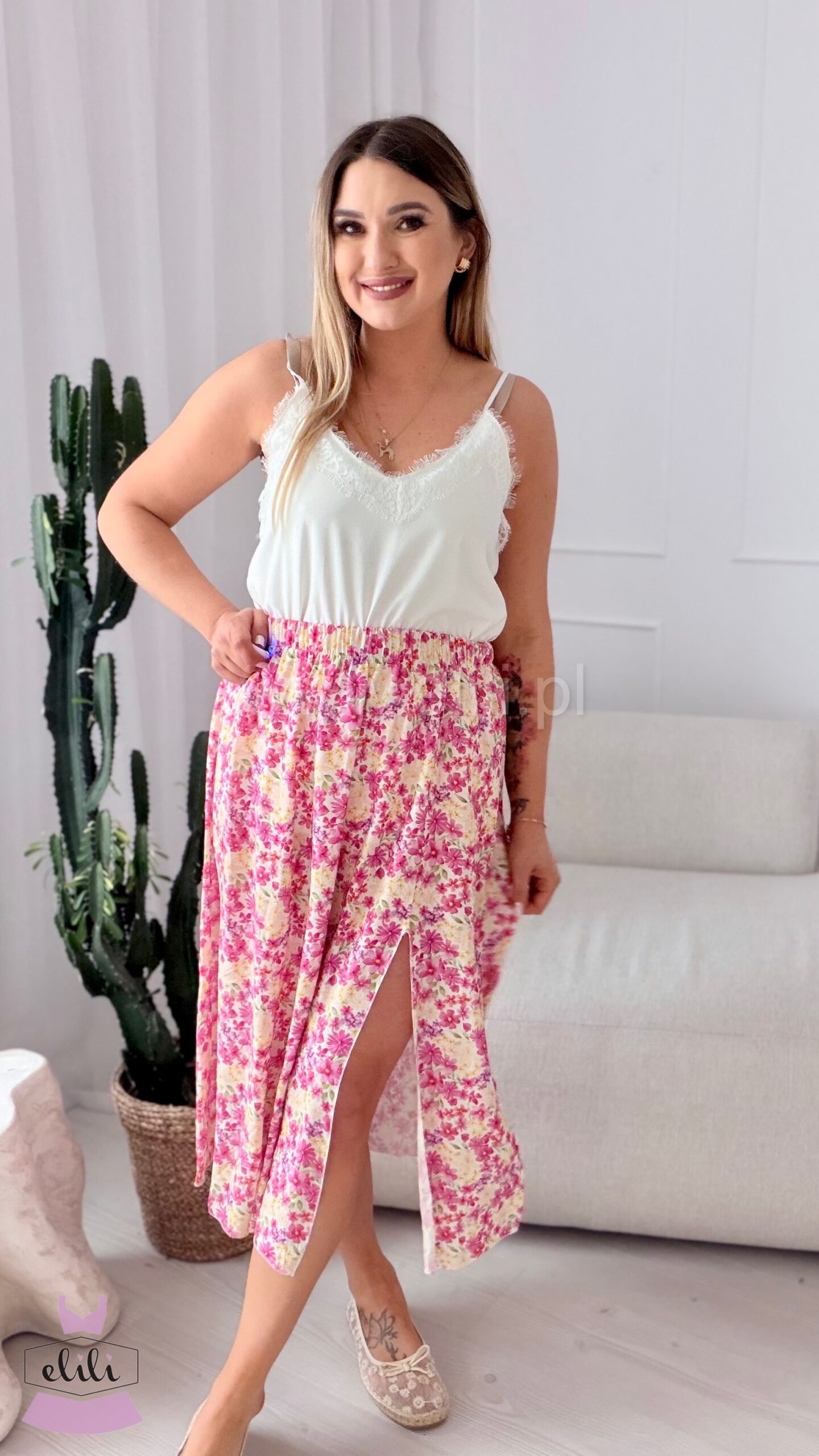 Spódnica z wiskozy różowo-fioletowe kwiatuszki