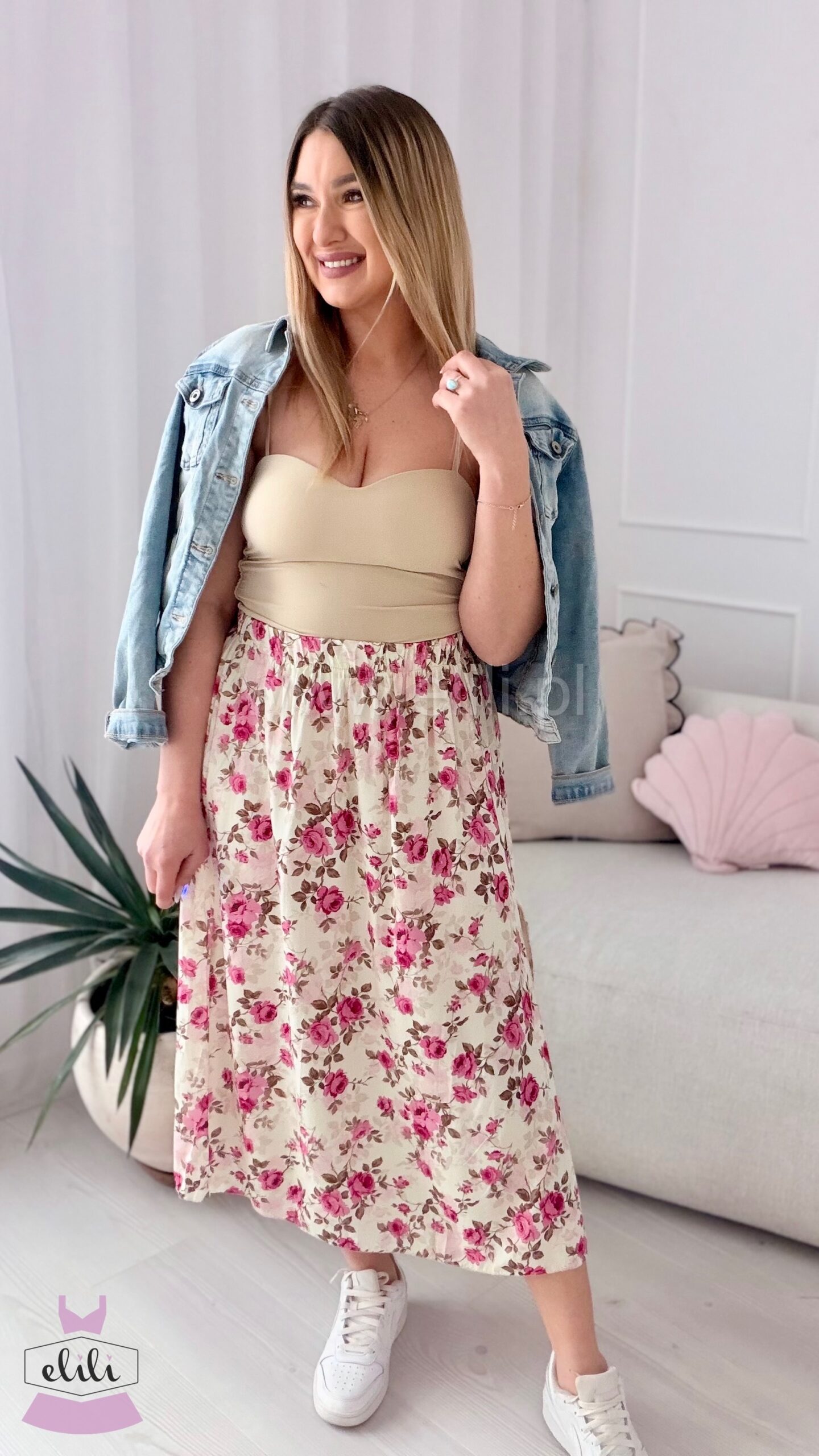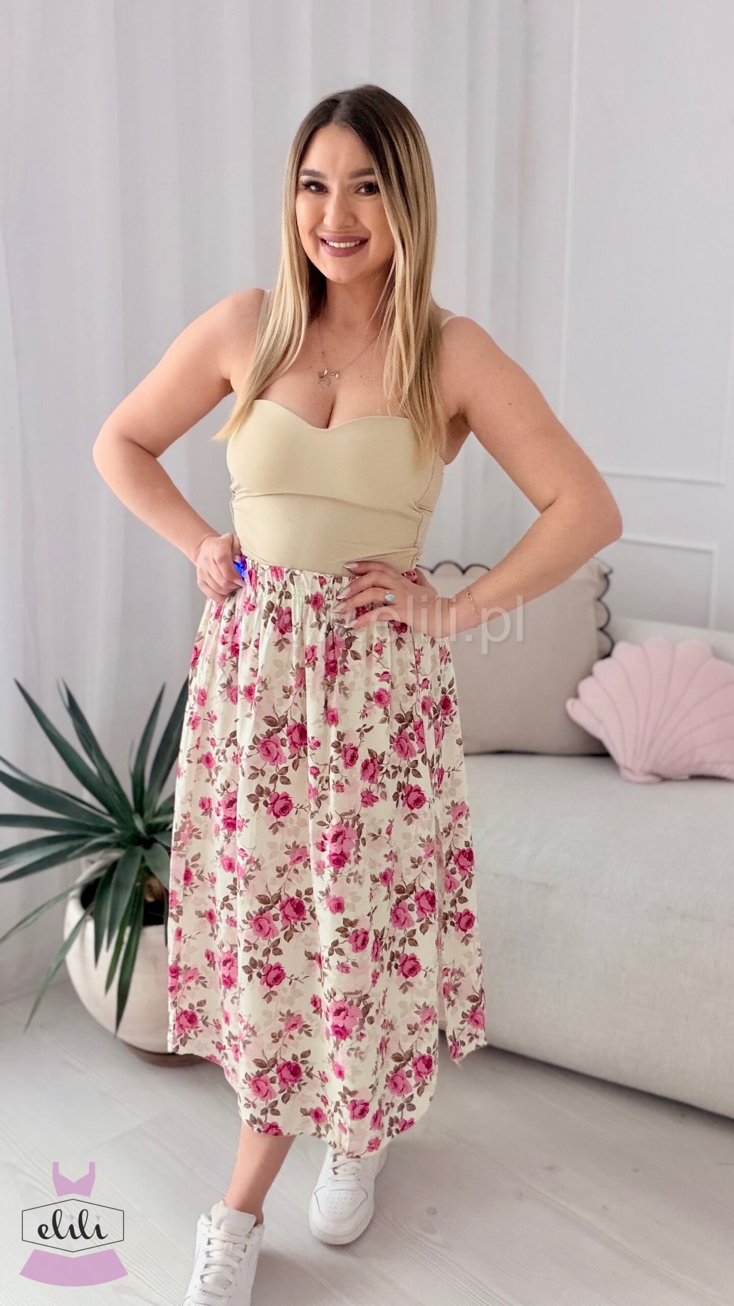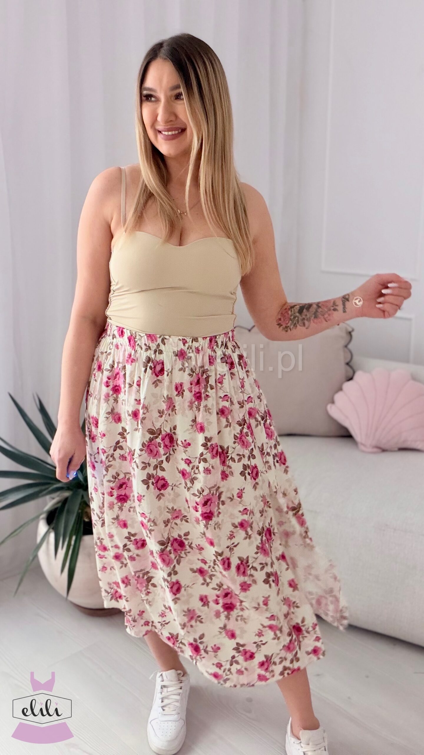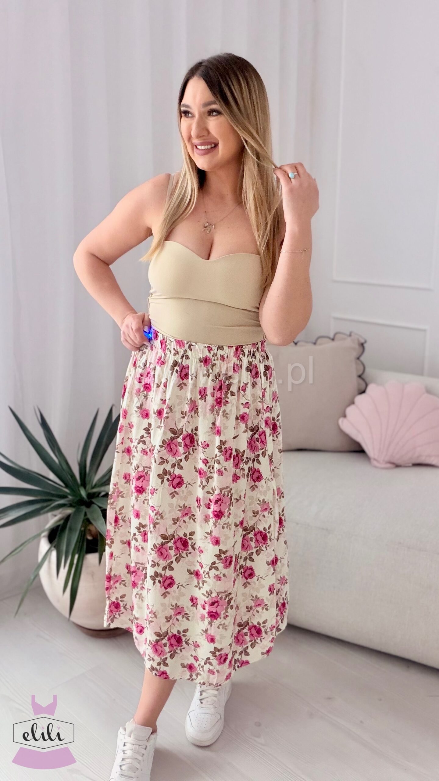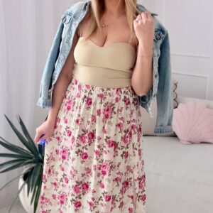Spódnica z wiskozy w malinowe kwiatki