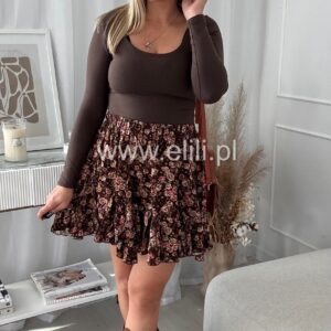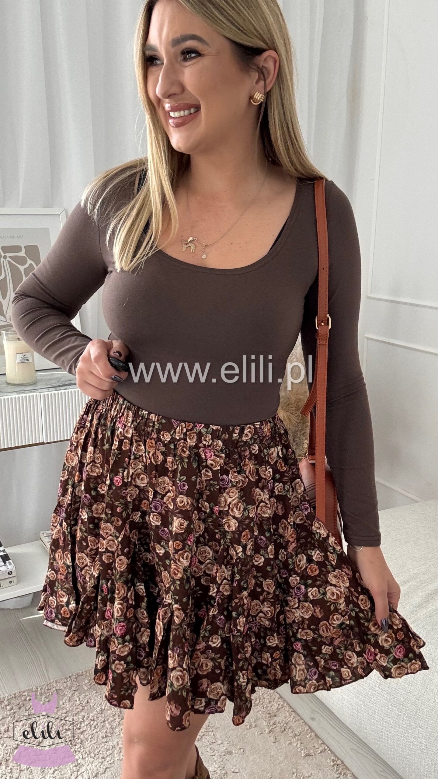 Spódniczka falbanka z wiskozy czekoladowa w kwiatuszki
