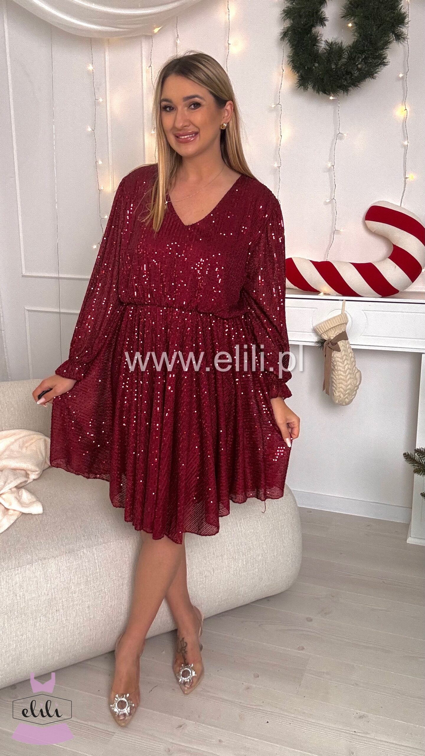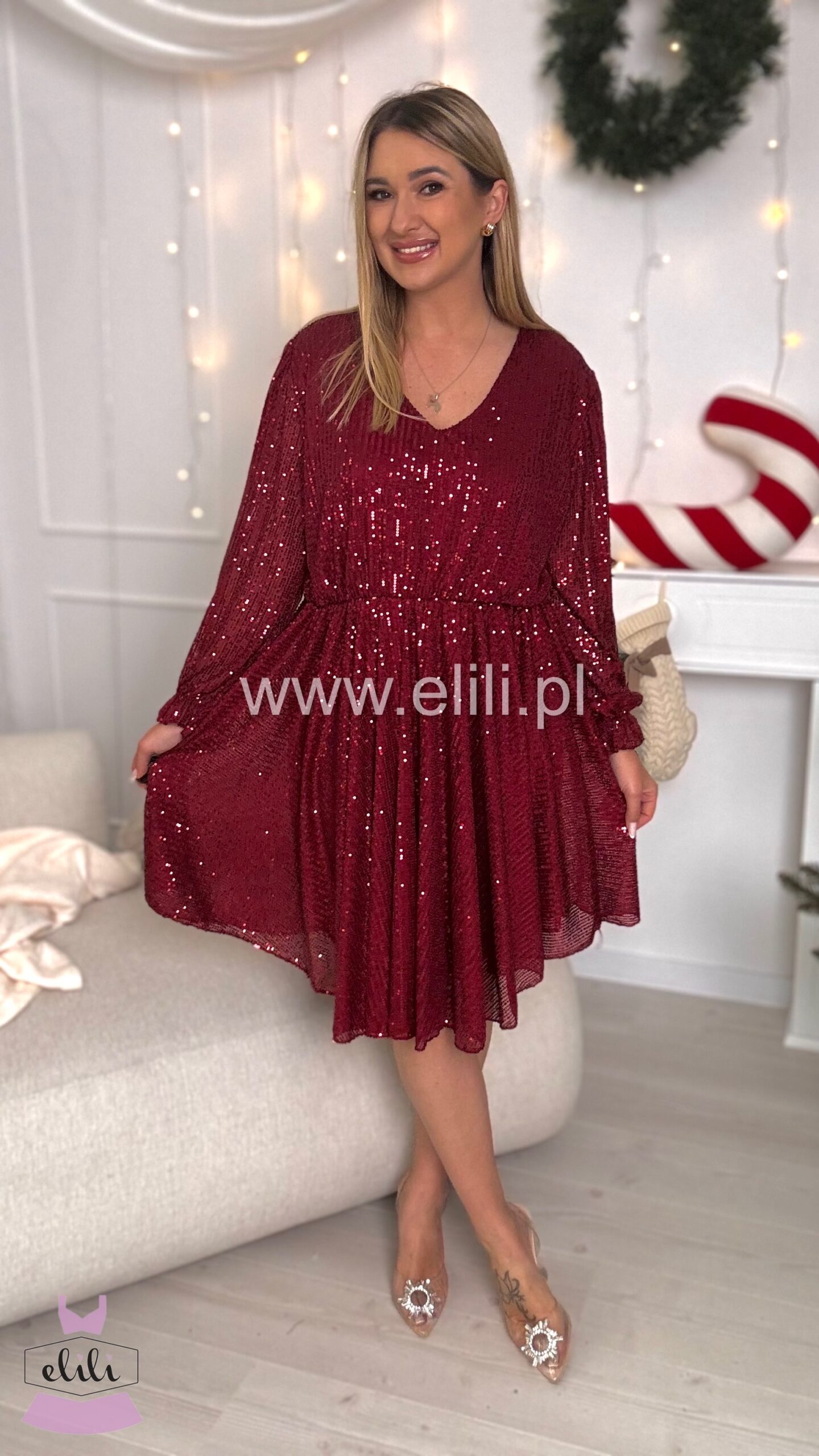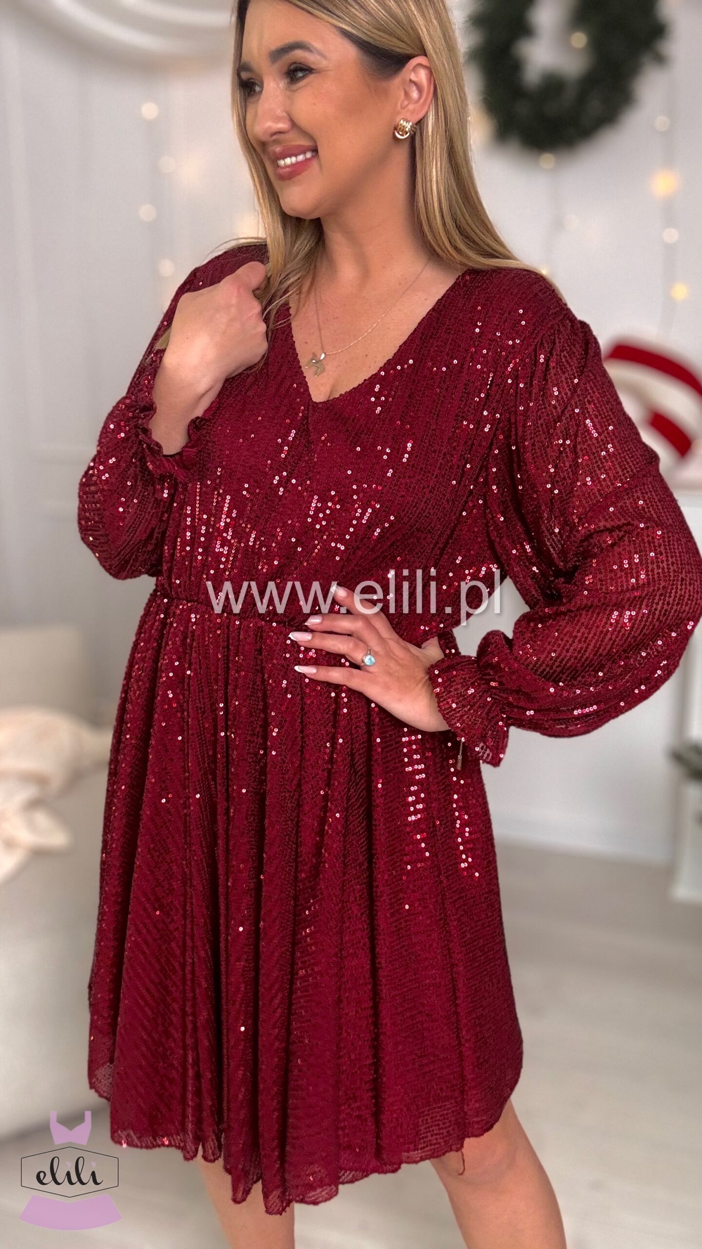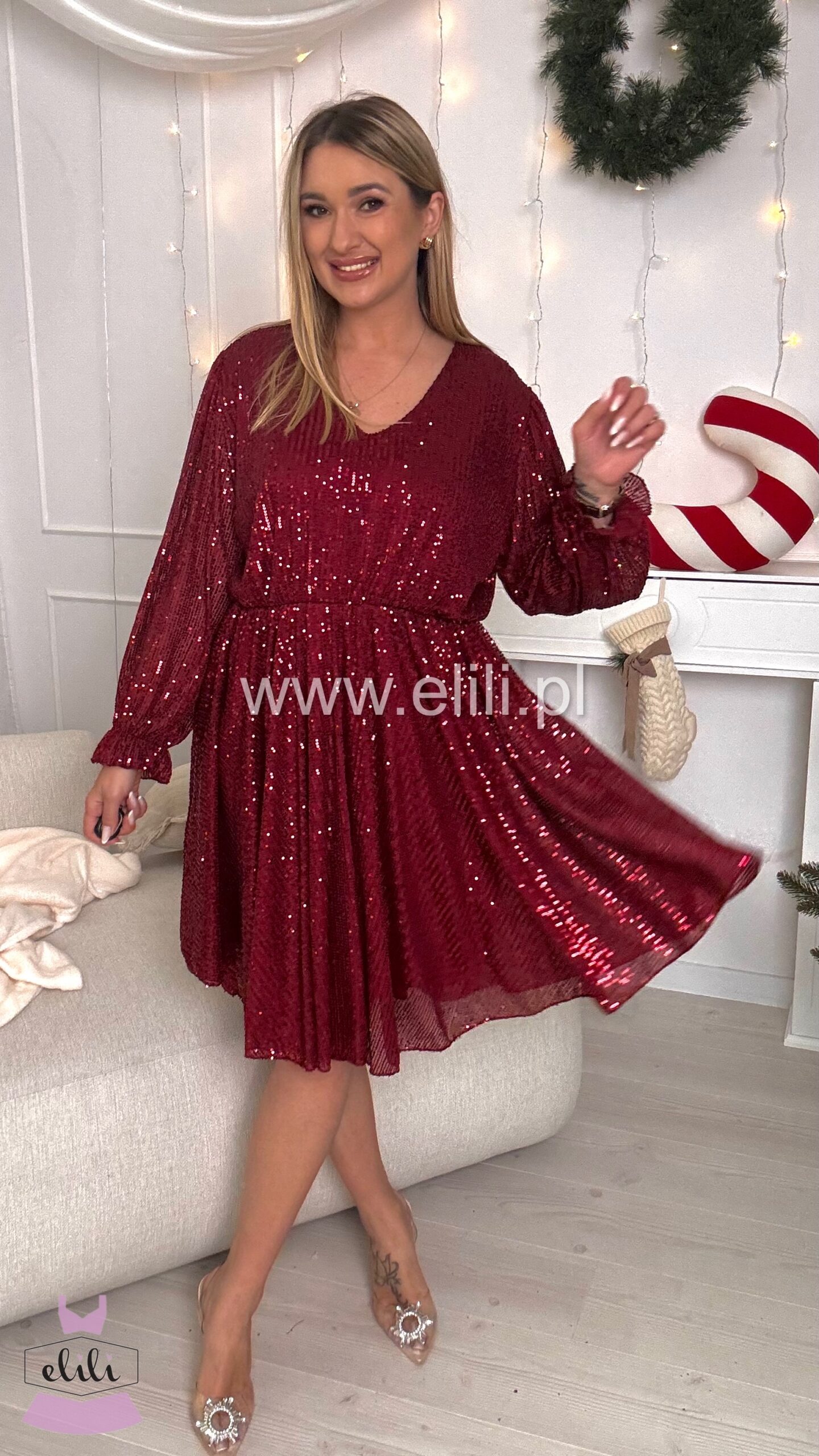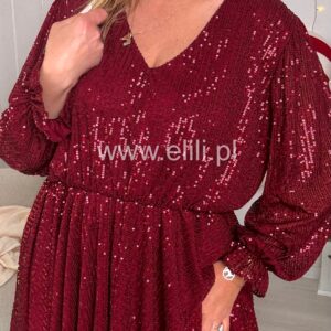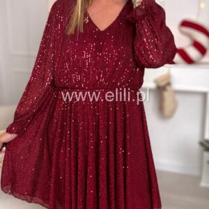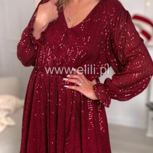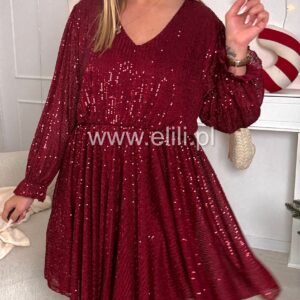 Elegancka sukienka z gumką w talii oraz falbanką na dole sukienki.