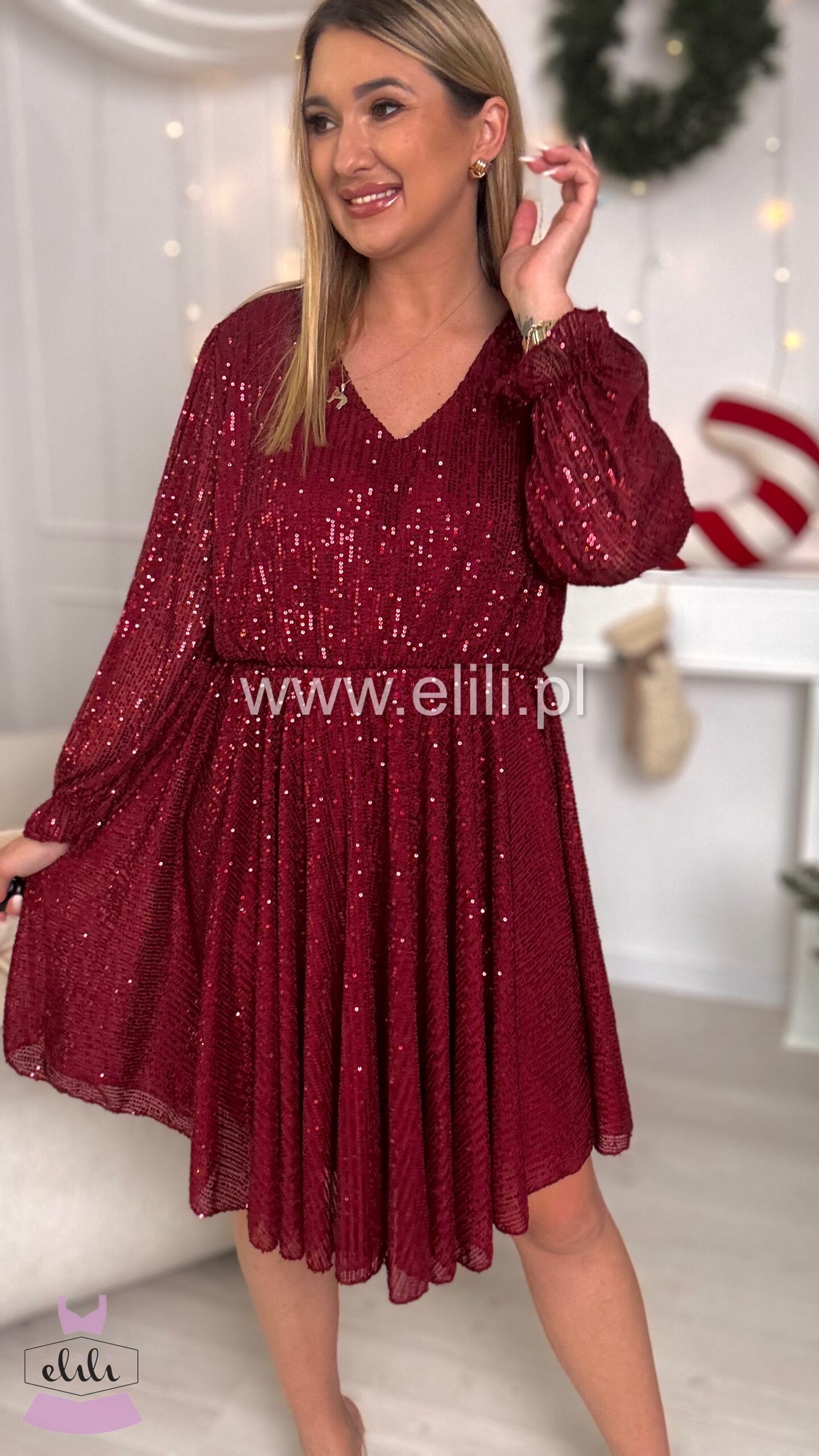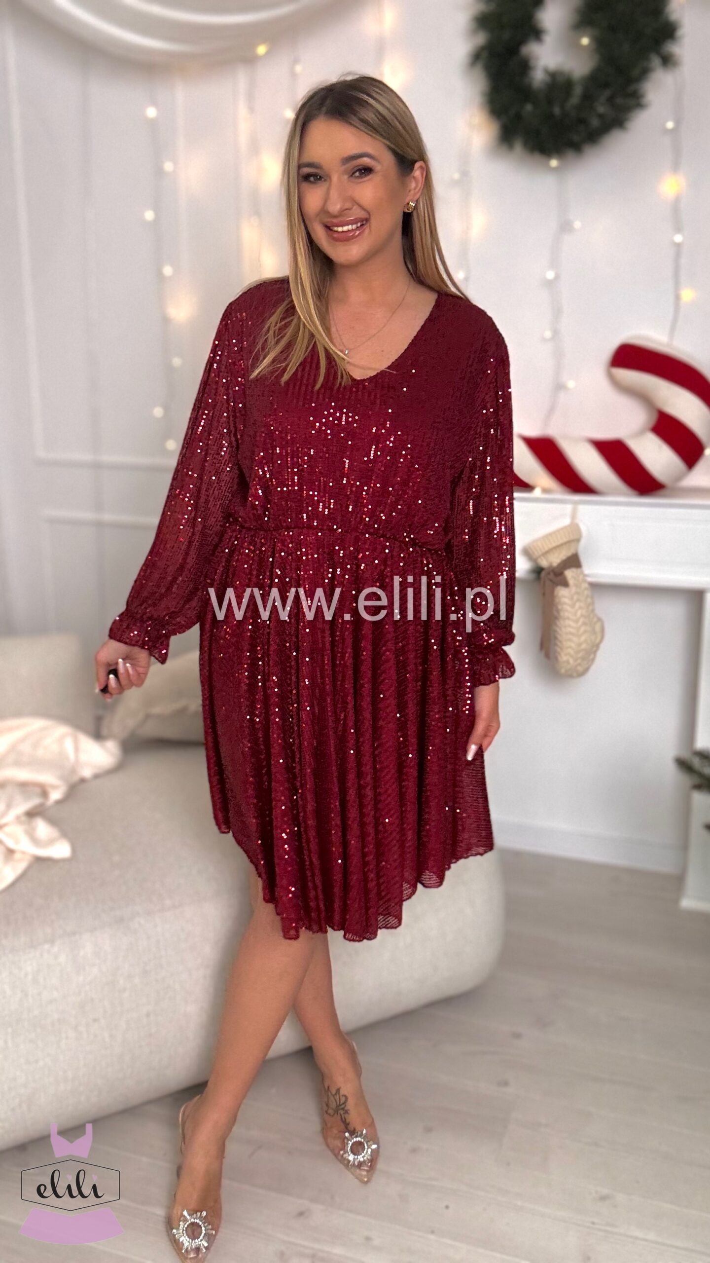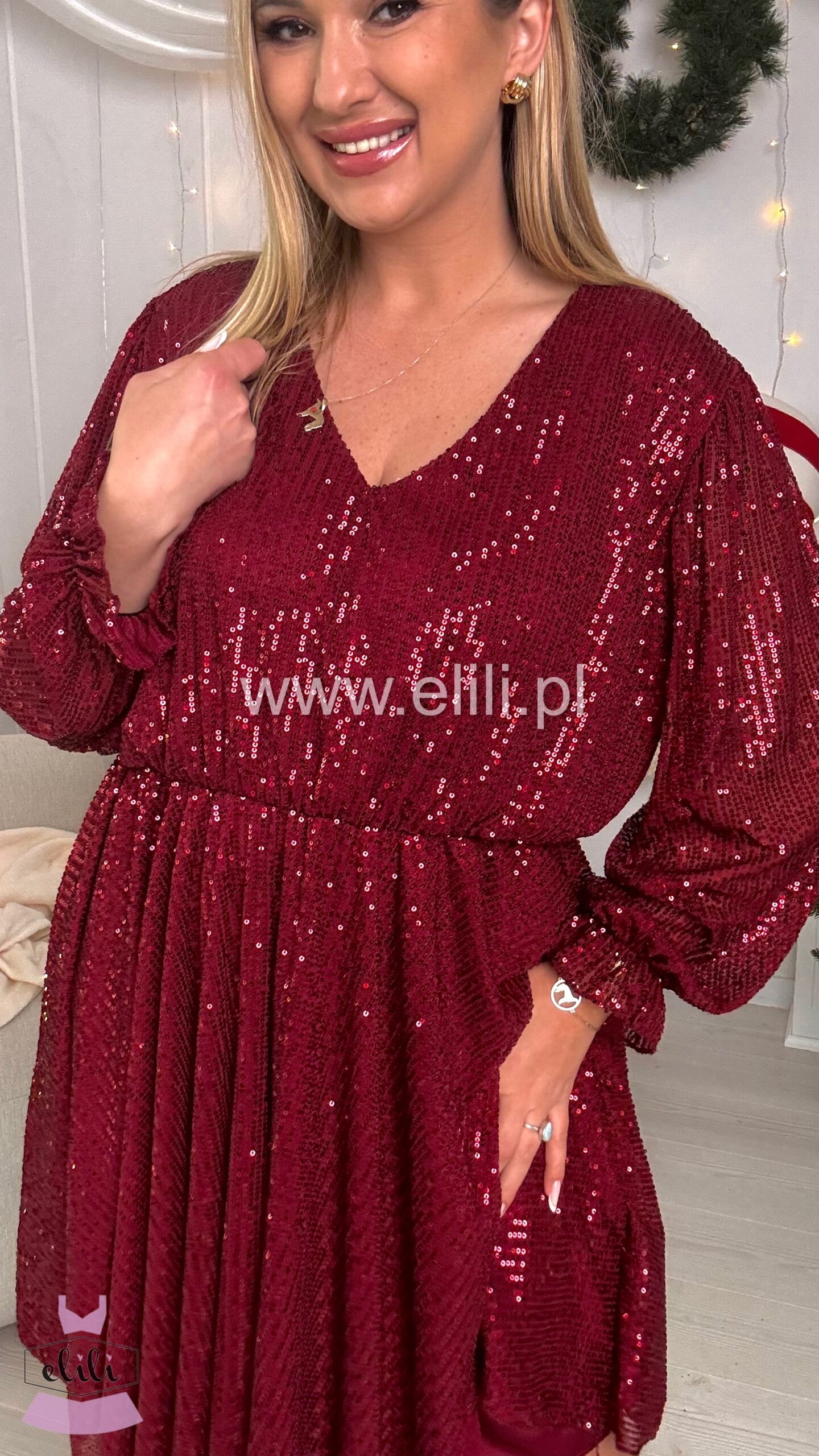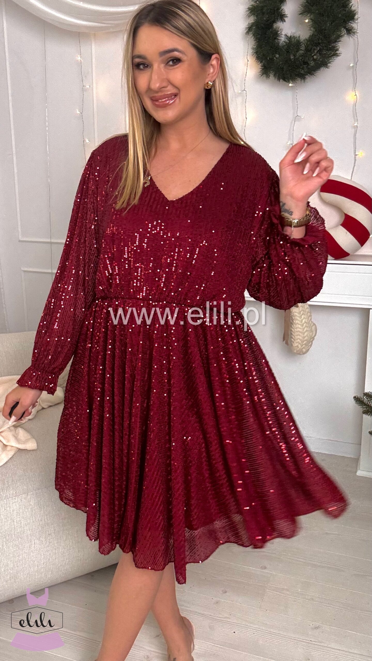 Elegancka sukienka z gumką w talii oraz falbanką na dole sukienki.
