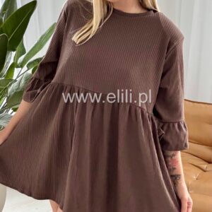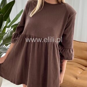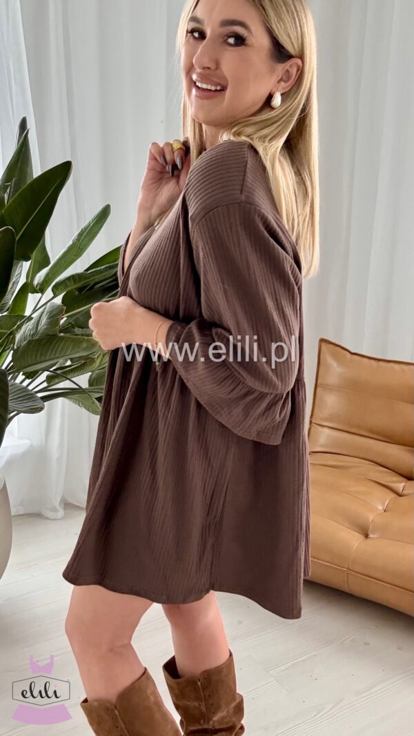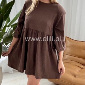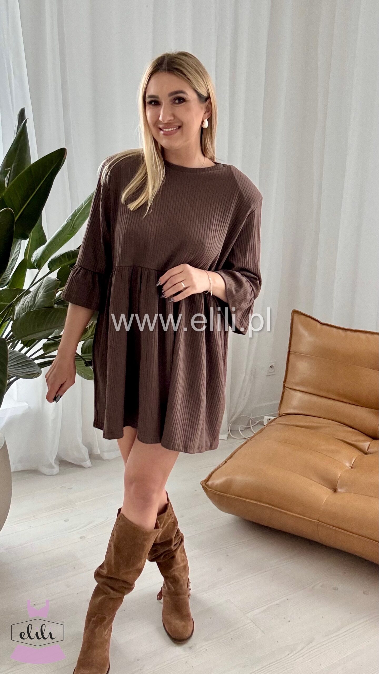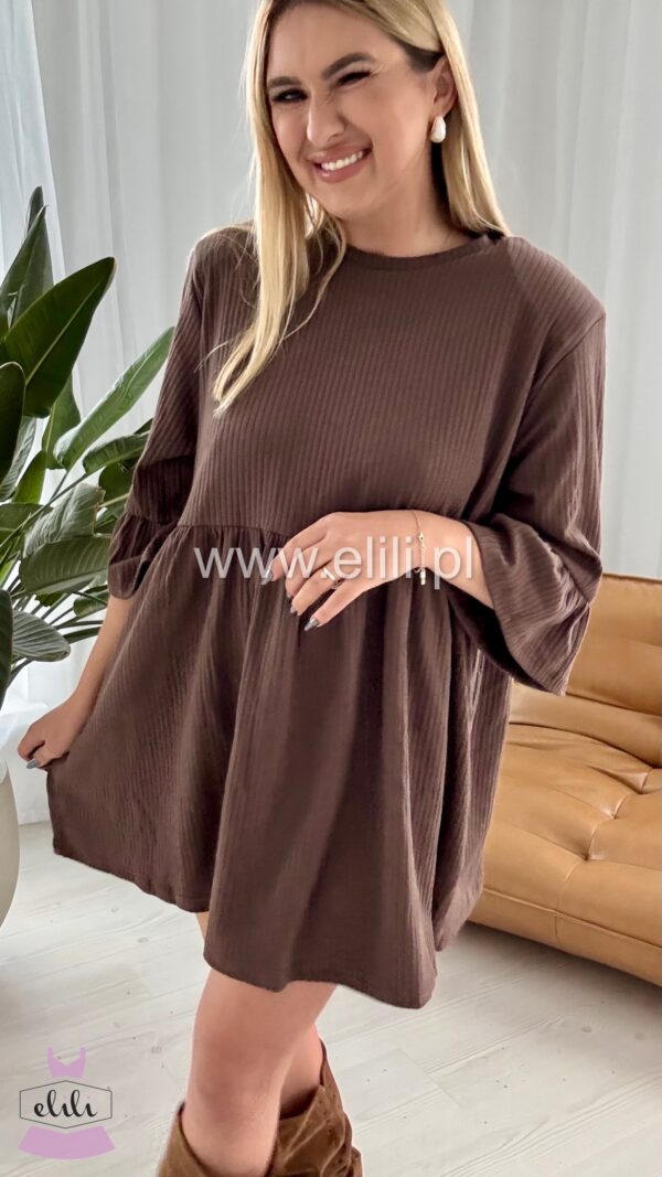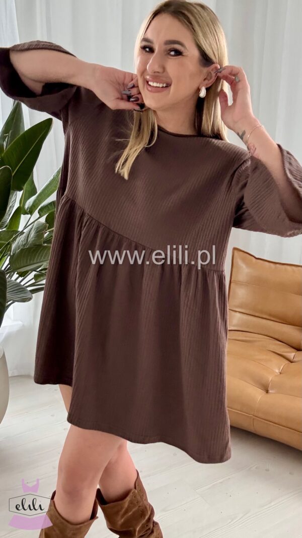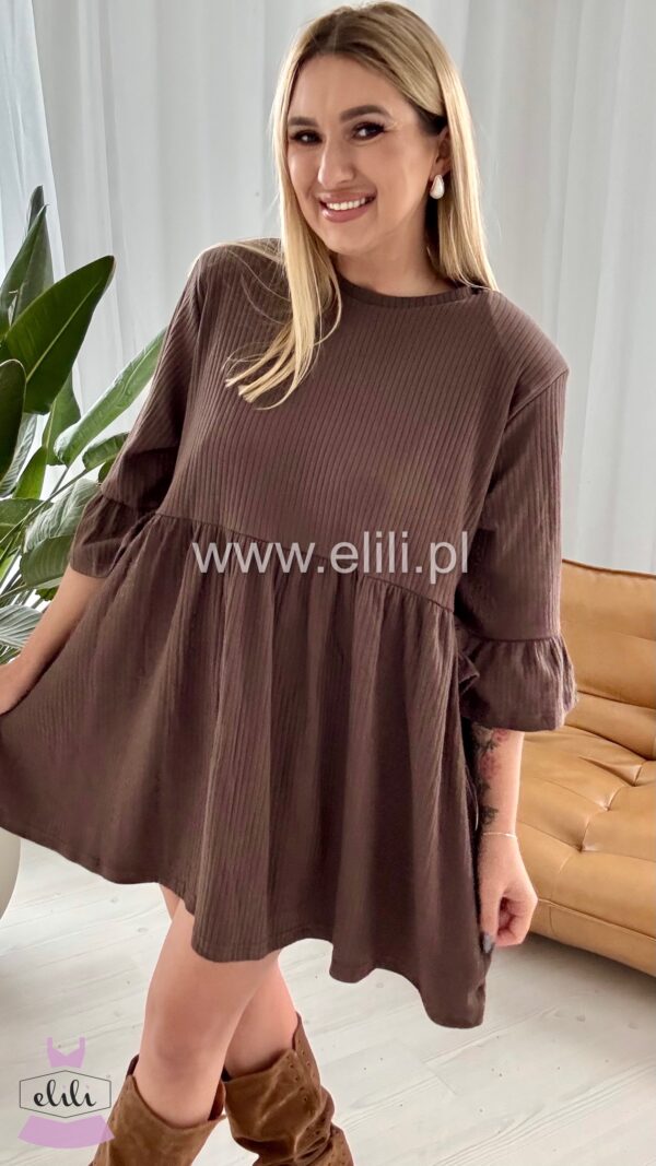 Sukienka o kroju typu baby doll. uszyta z prążkowanego materiału. posiada wszyte poduszki, które w razie potrzeby bez problemu można odpruć. Uszyta w polsce