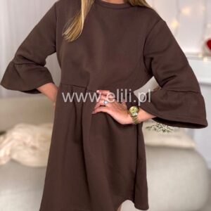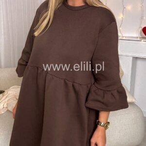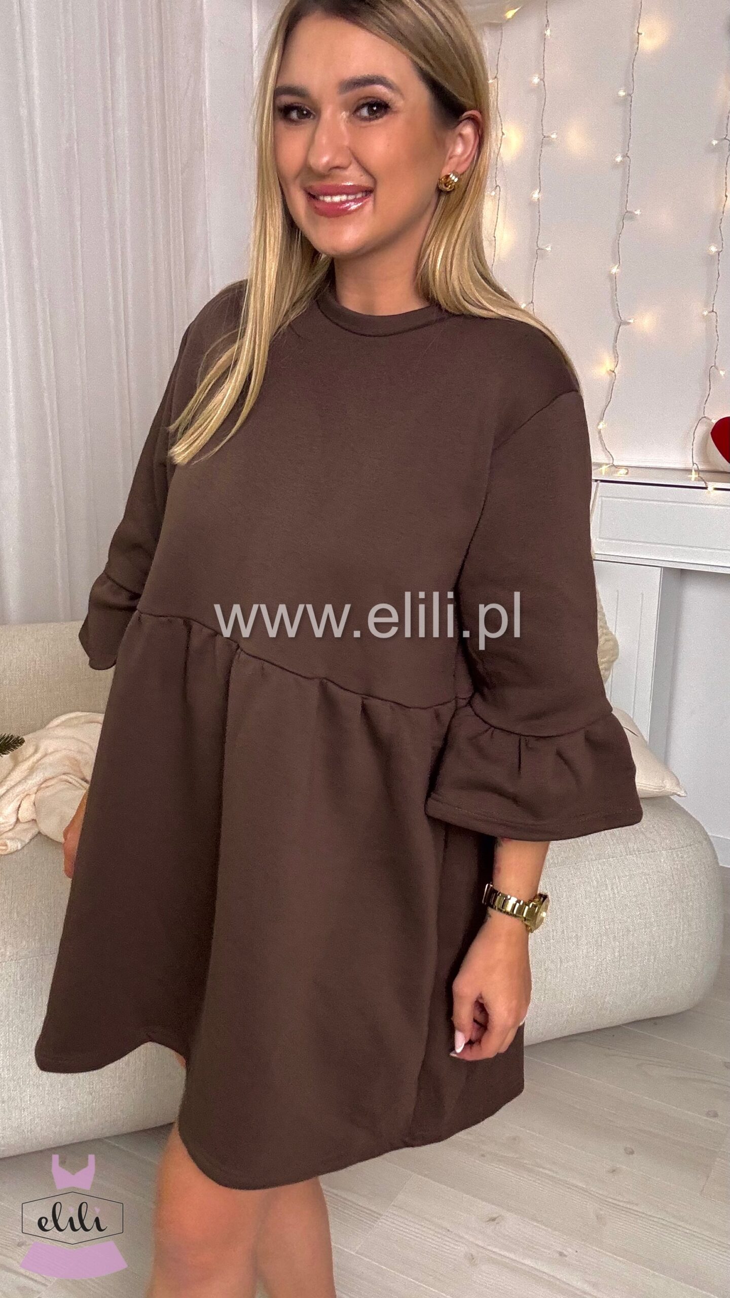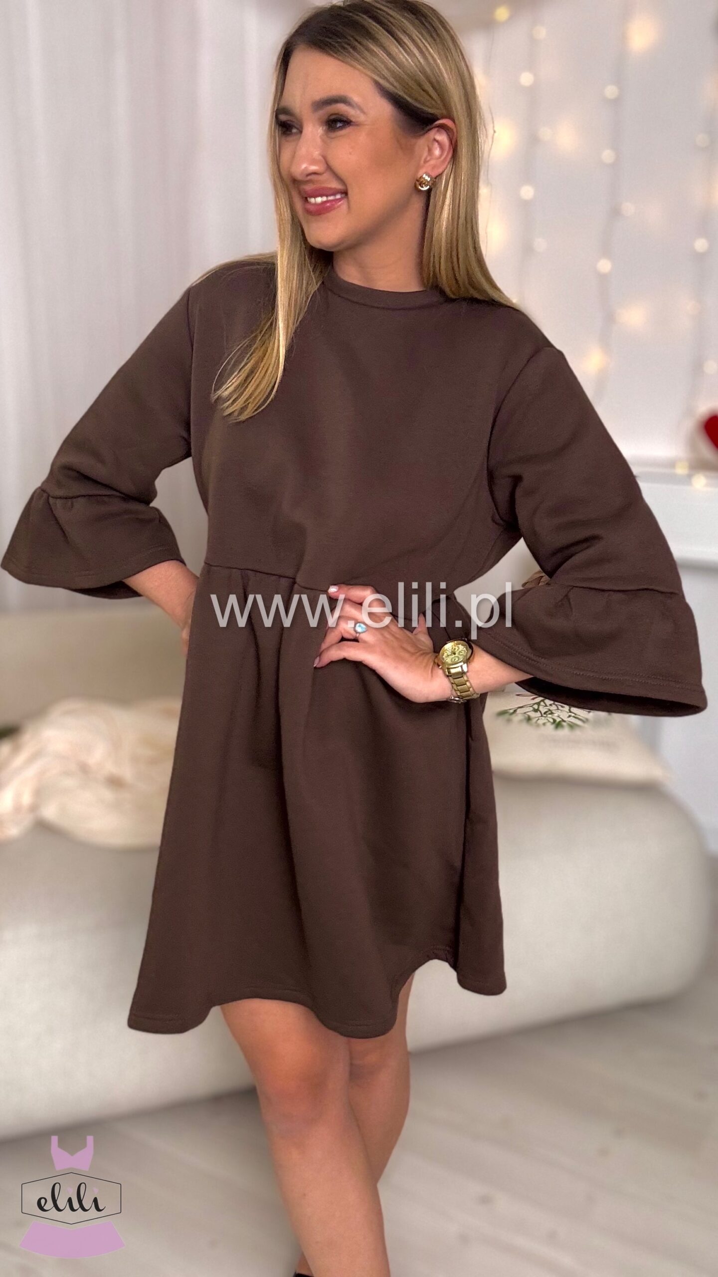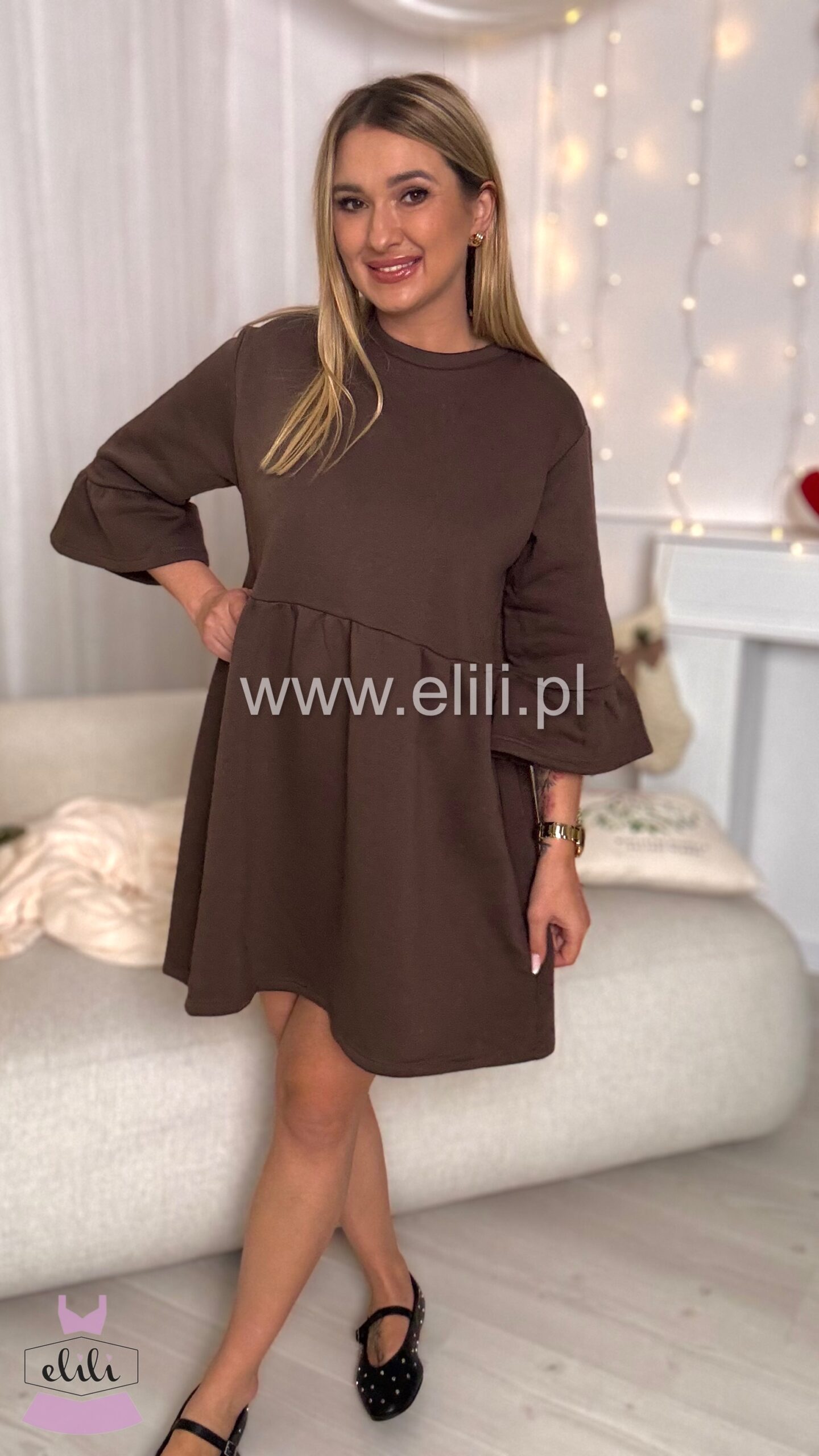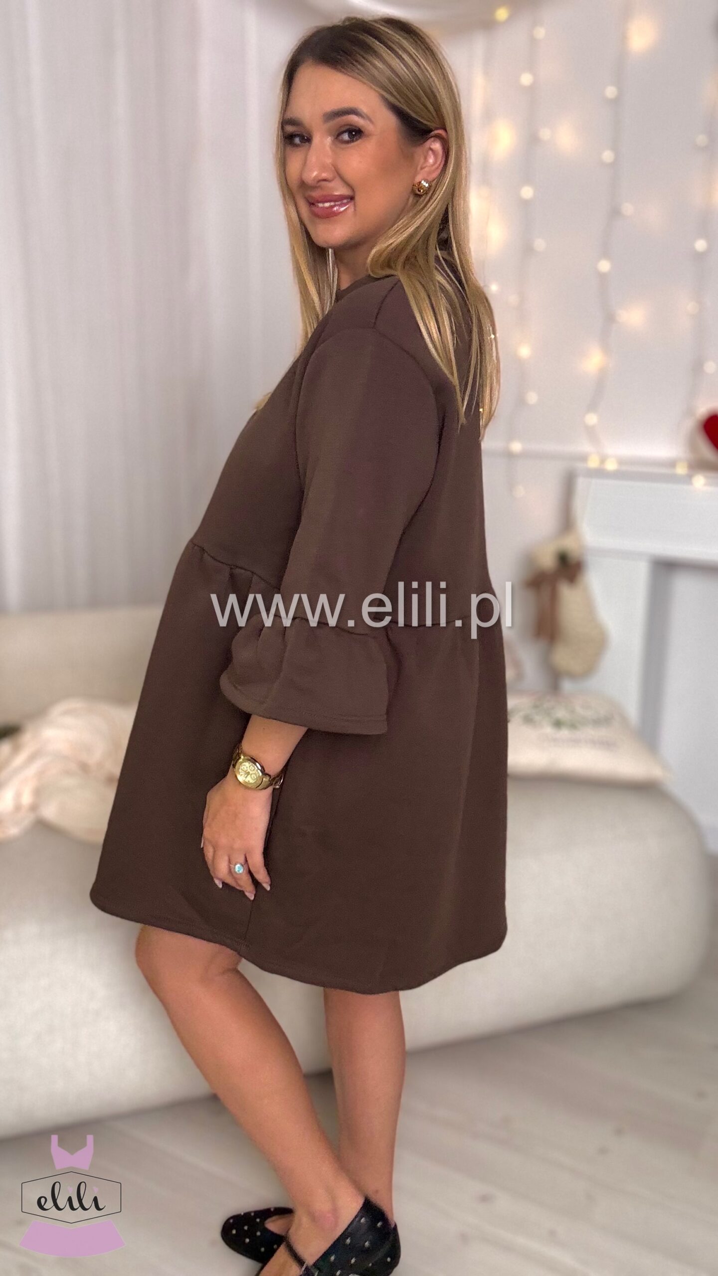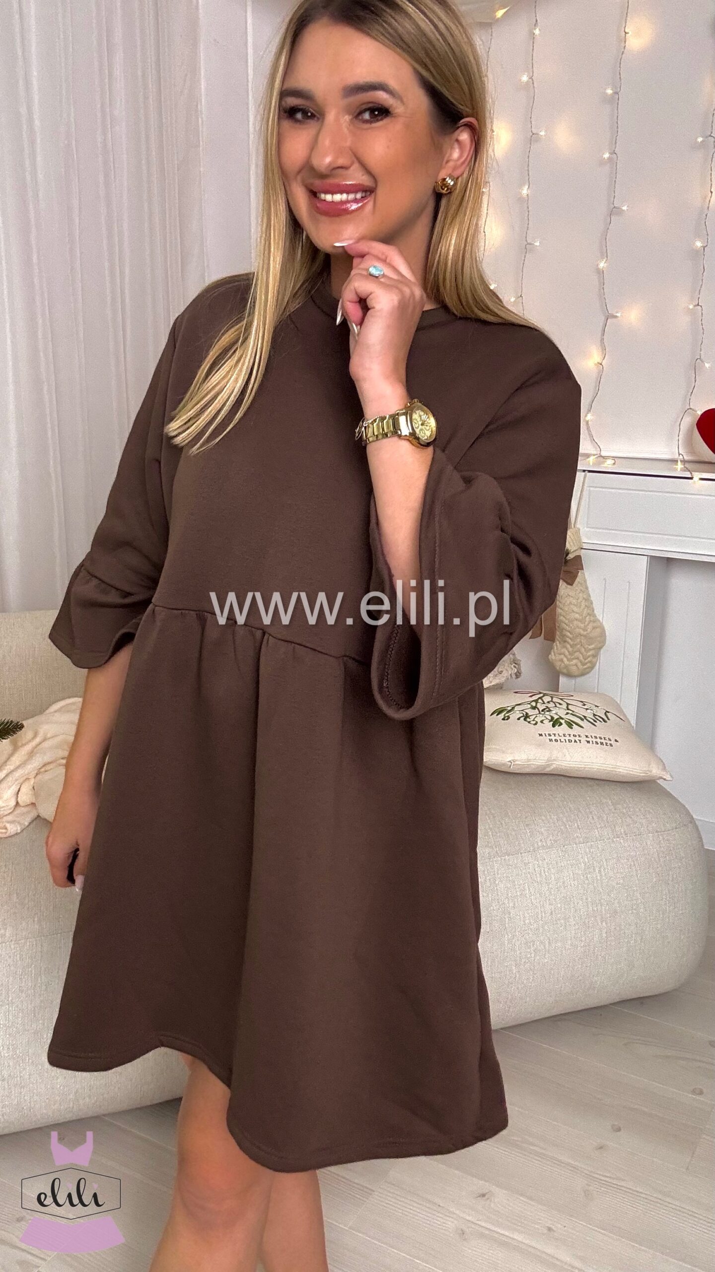 Sukienka o kroju typu baby doll,  uszyta z gładkiego ocieplanego materiału. Wyprodukowana w Polsce