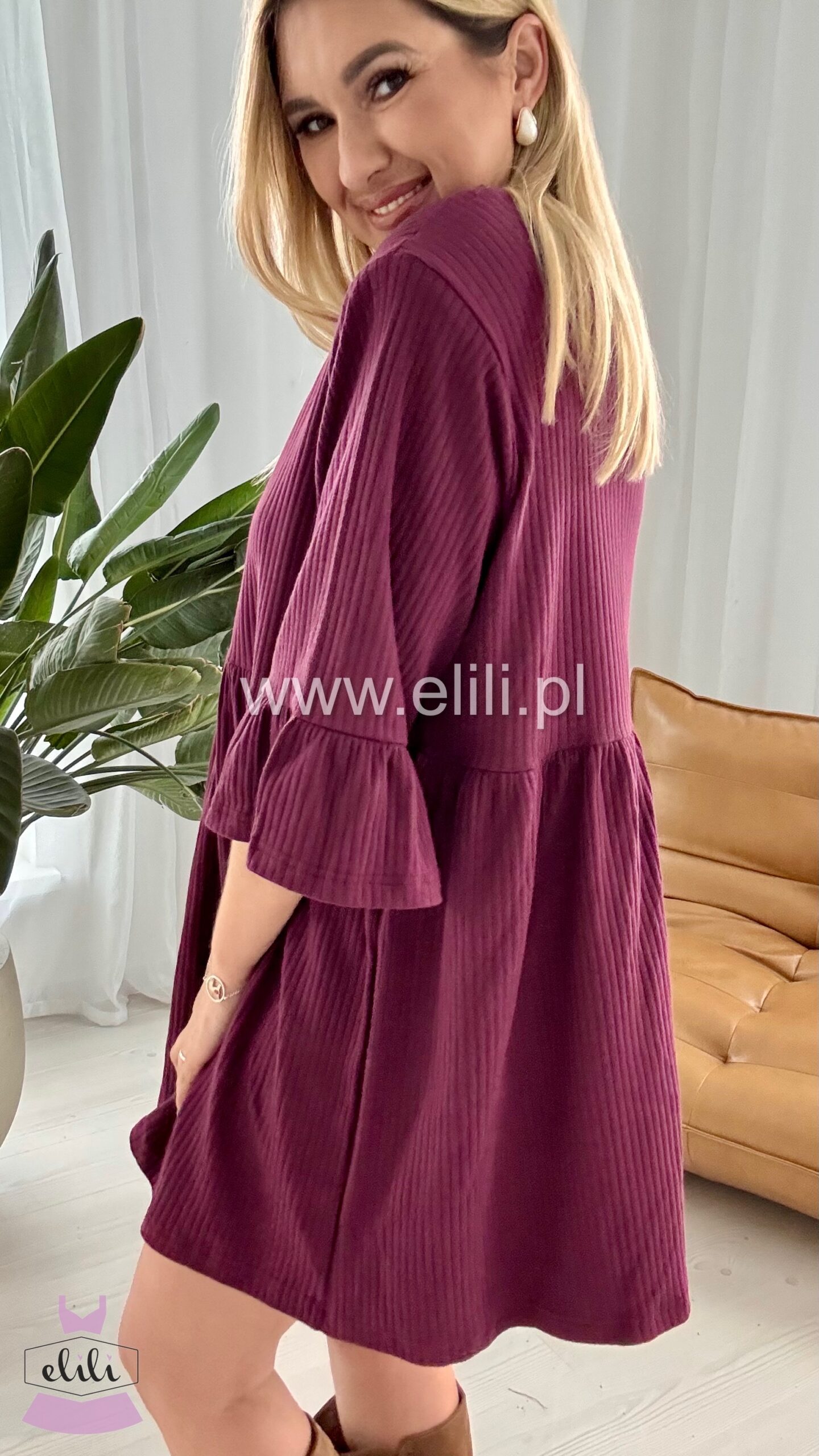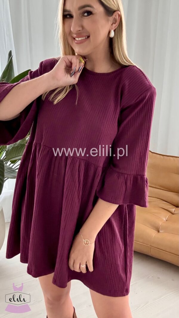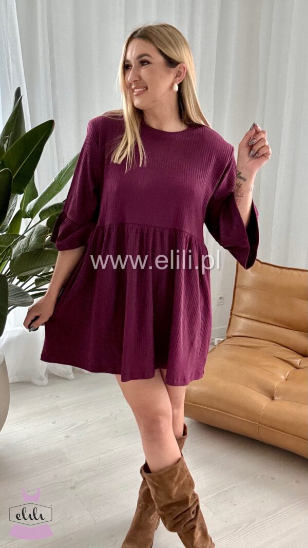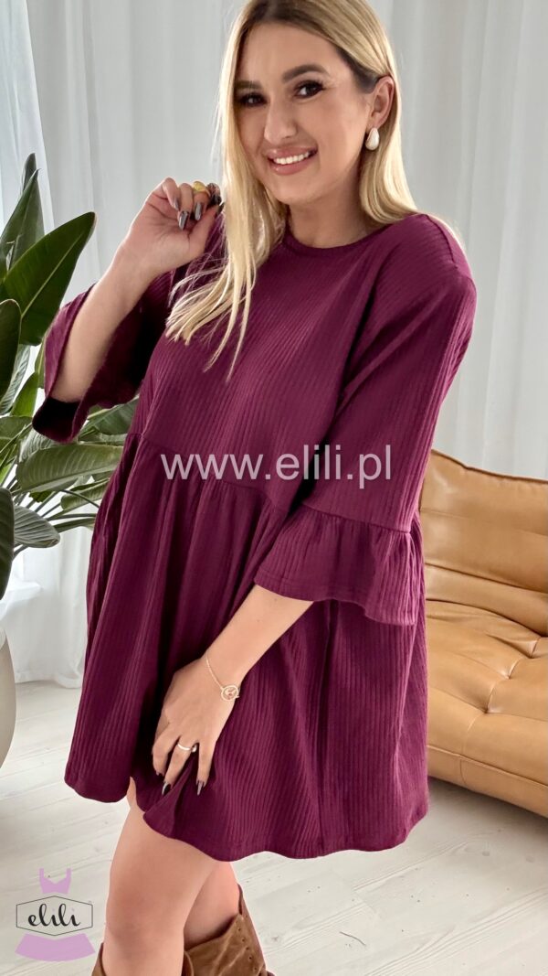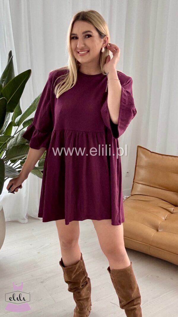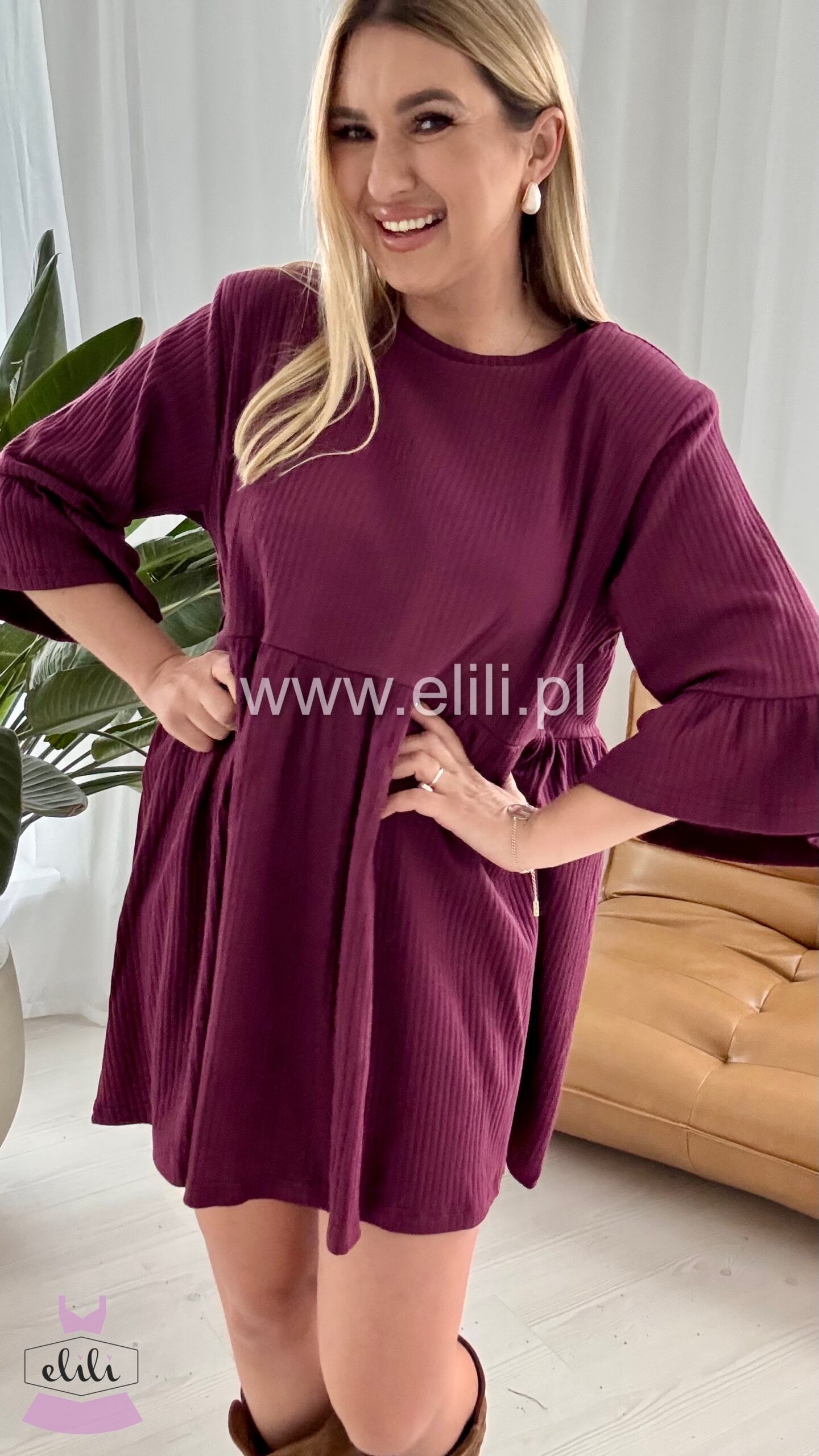 Sukienka o kroju typu baby doll. uszyta z prążkowanego materiału. posiada wszyte poduszki, które w razie potrzeby bez problemu można odpruć. Uszyta w polsce