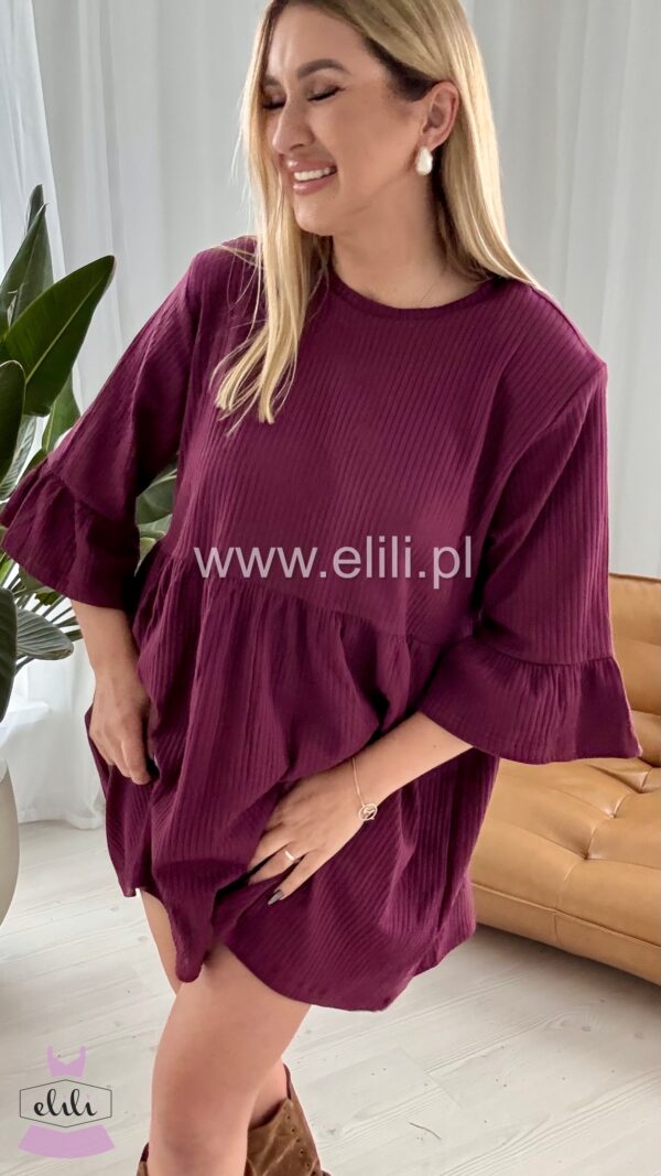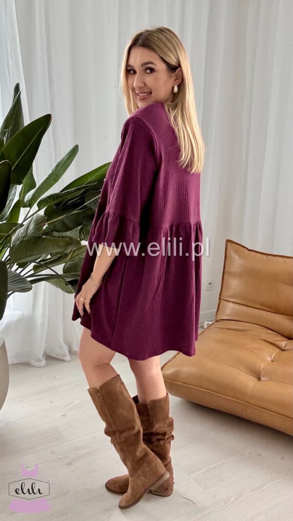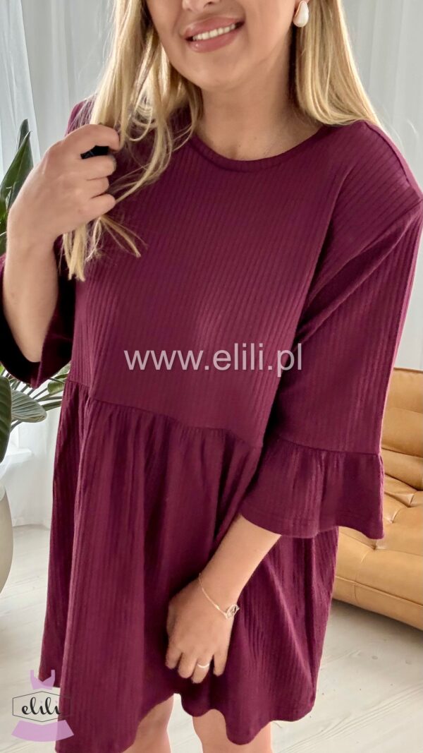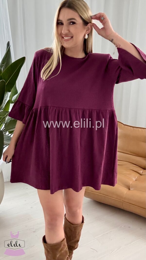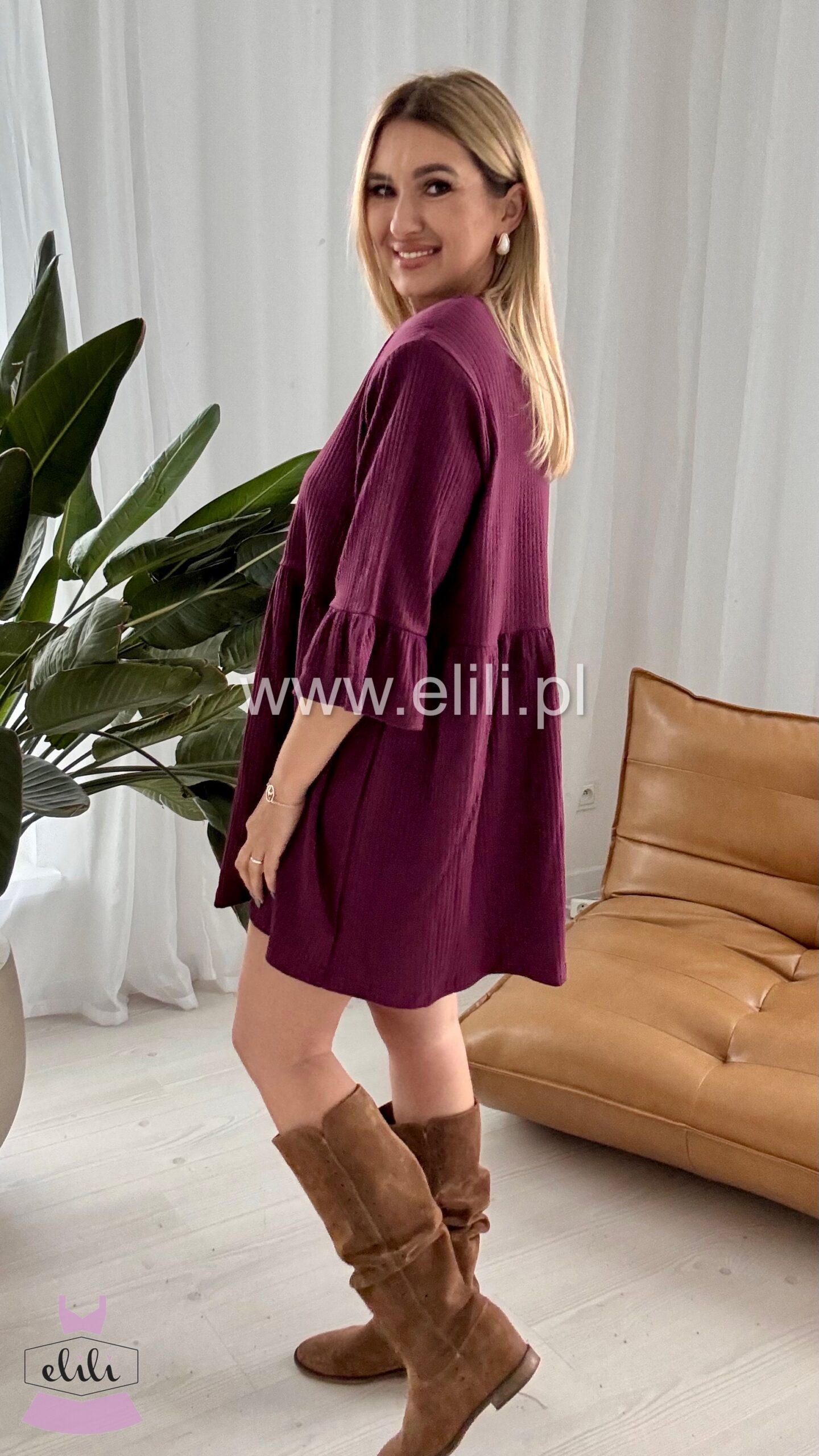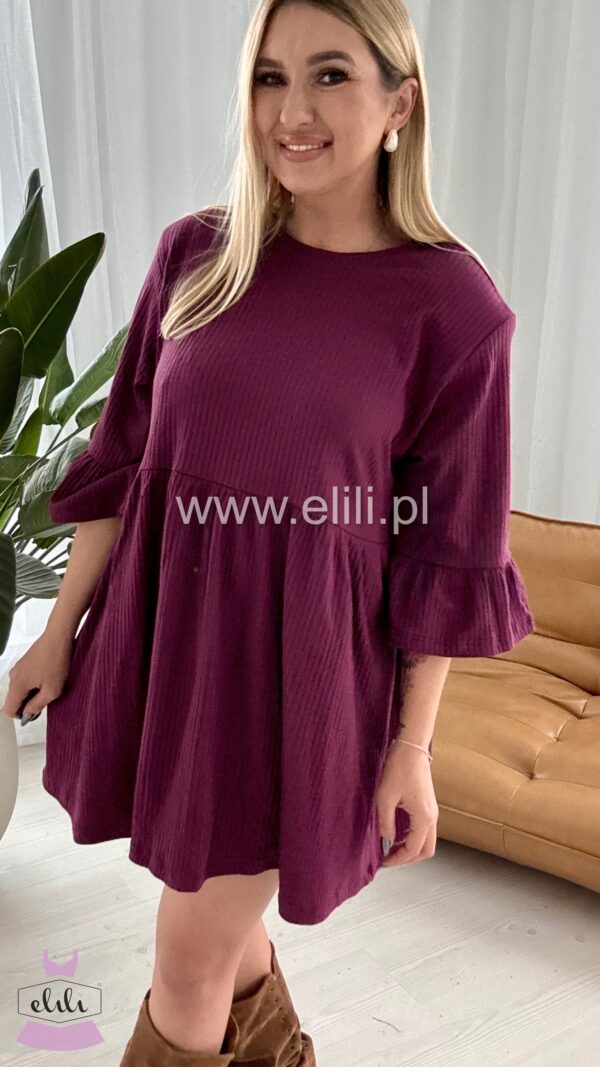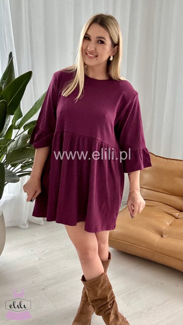 Sukienka o kroju typu baby doll. uszyta z prążkowanego materiału. posiada wszyte poduszki, które w razie potrzeby bez problemu można odpruć. Uszyta w polsce