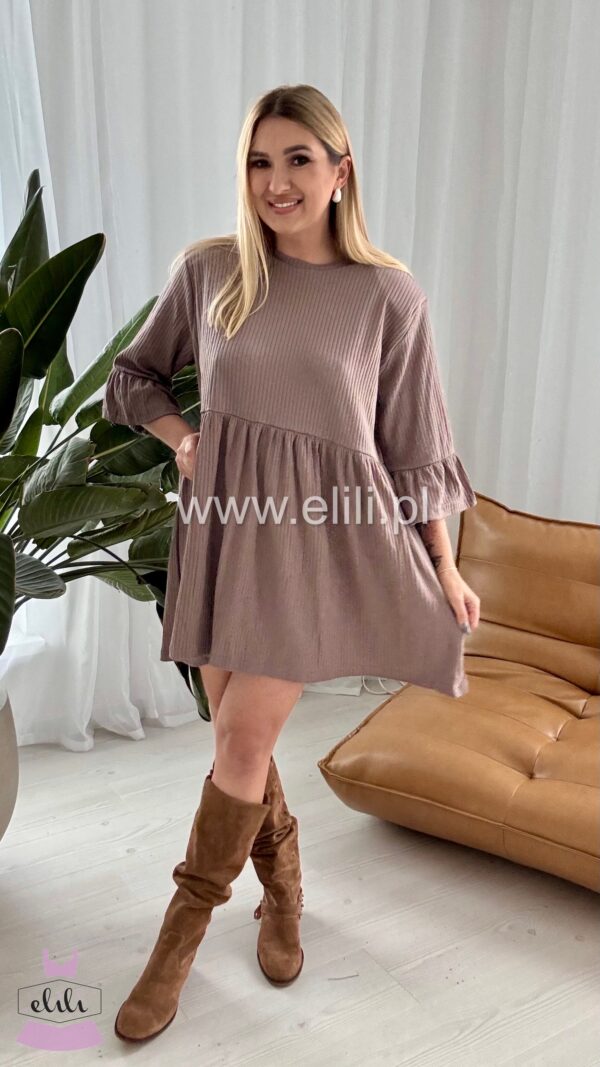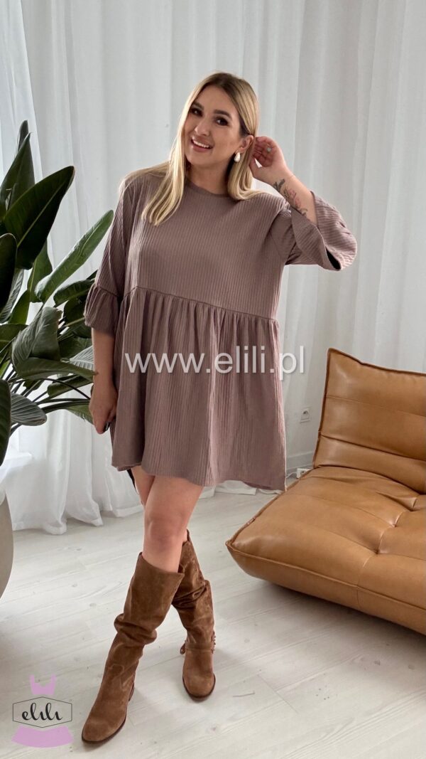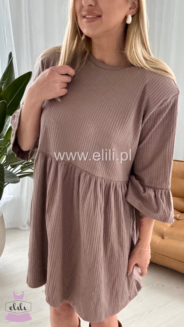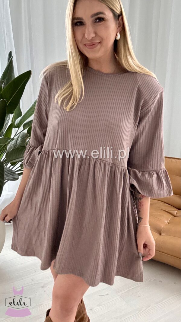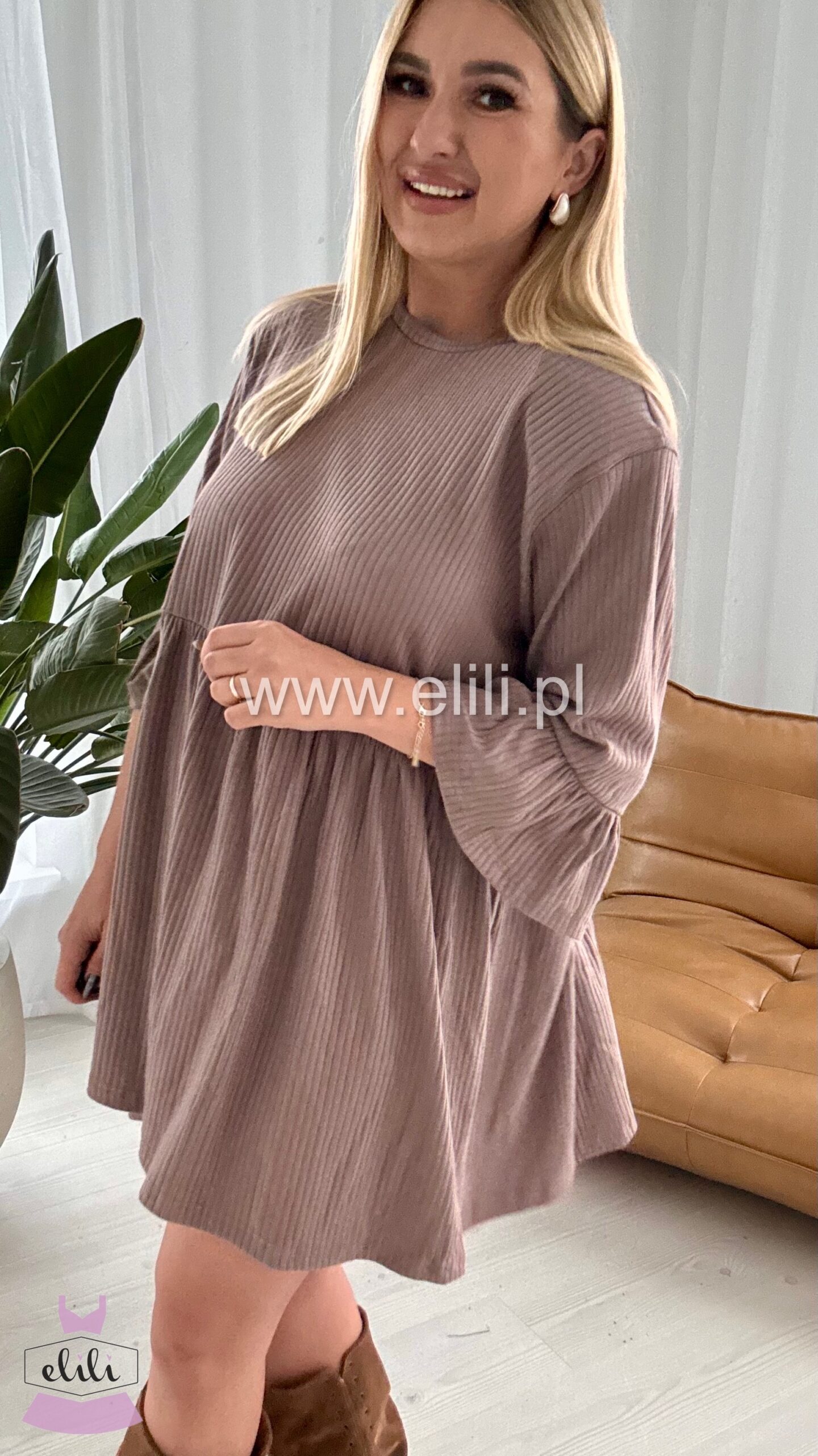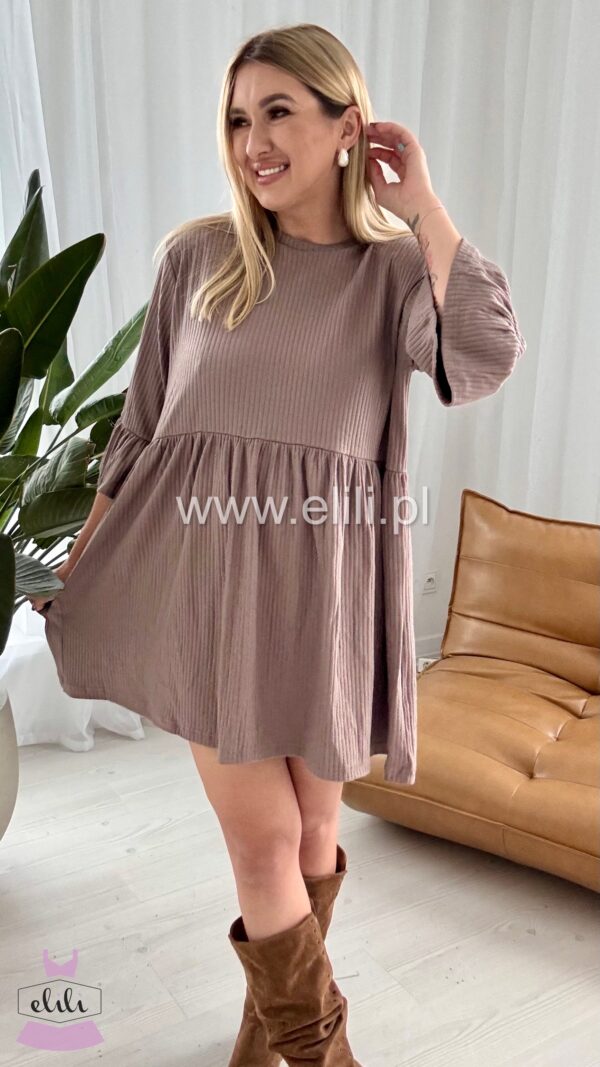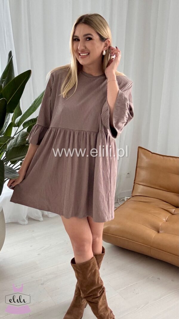 Sukienka o kroju typu baby doll. uszyta z prążkowanego materiału. posiada wszyte poduszki, które w razie potrzeby bez problemu można odpruć. Uszyta w polsce