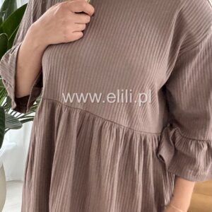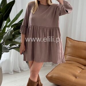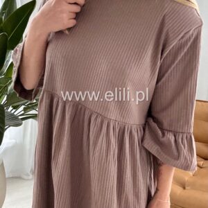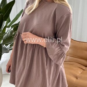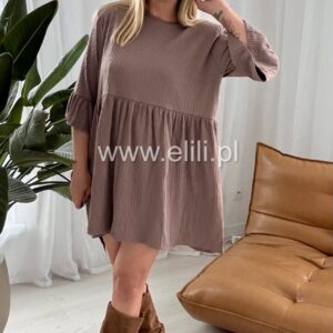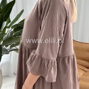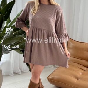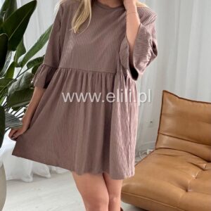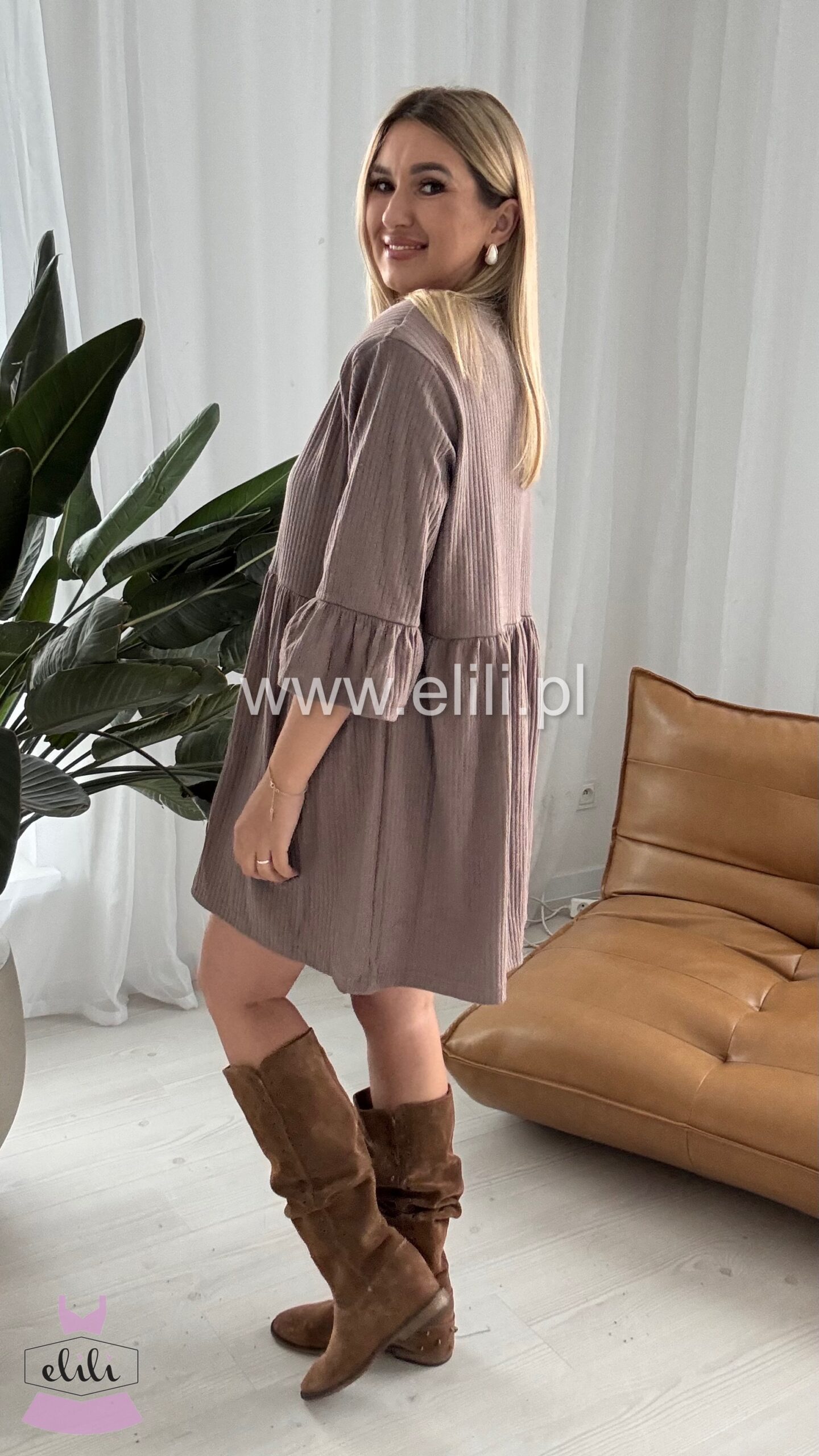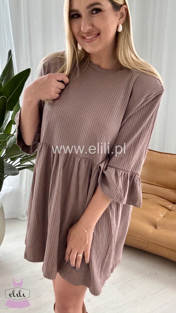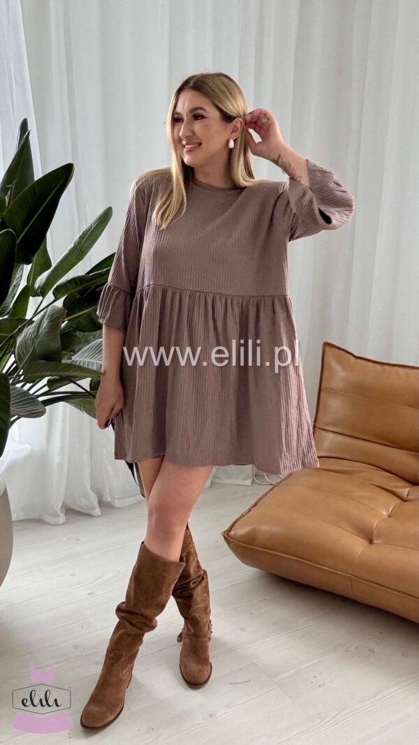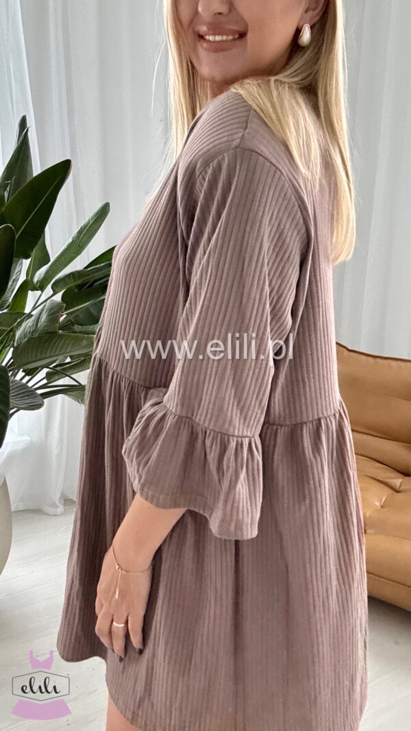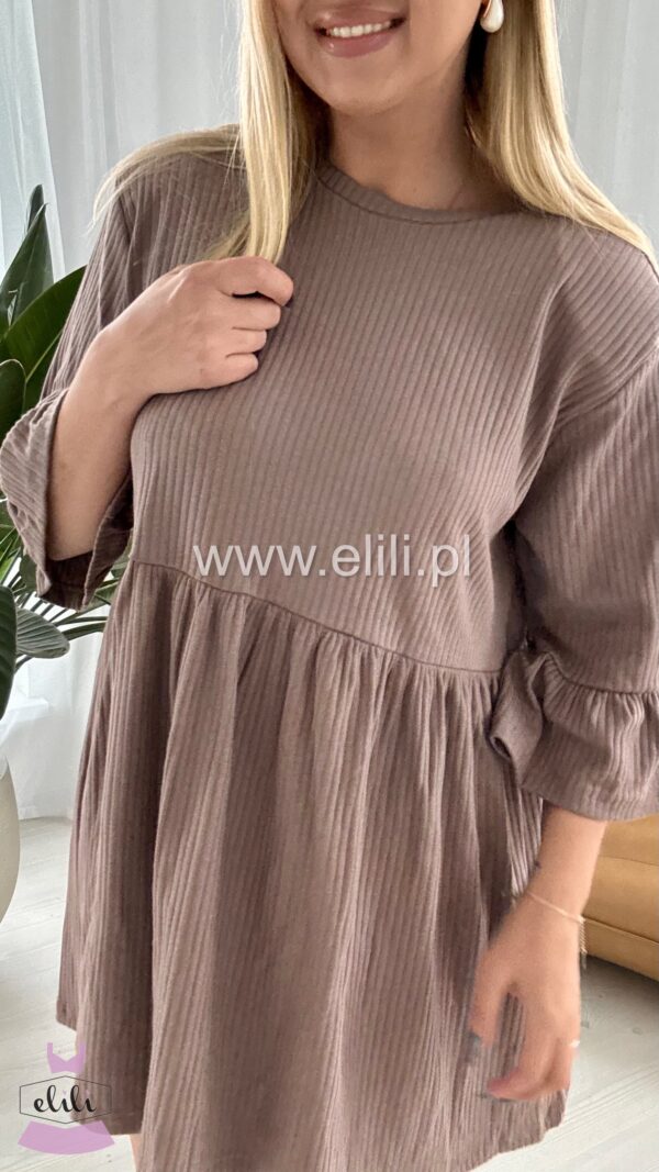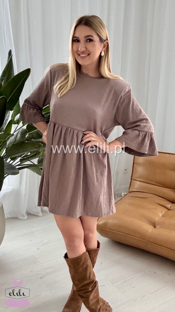Sukienka o kroju typu baby doll. uszyta z prążkowanego materiału. posiada wszyte poduszki, które w razie potrzeby bez problemu można odpruć. Uszyta w polsce