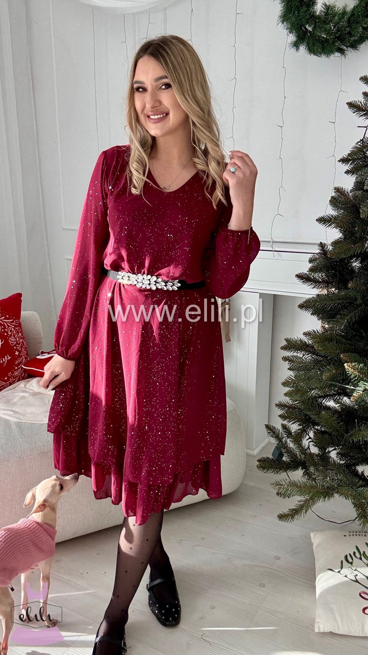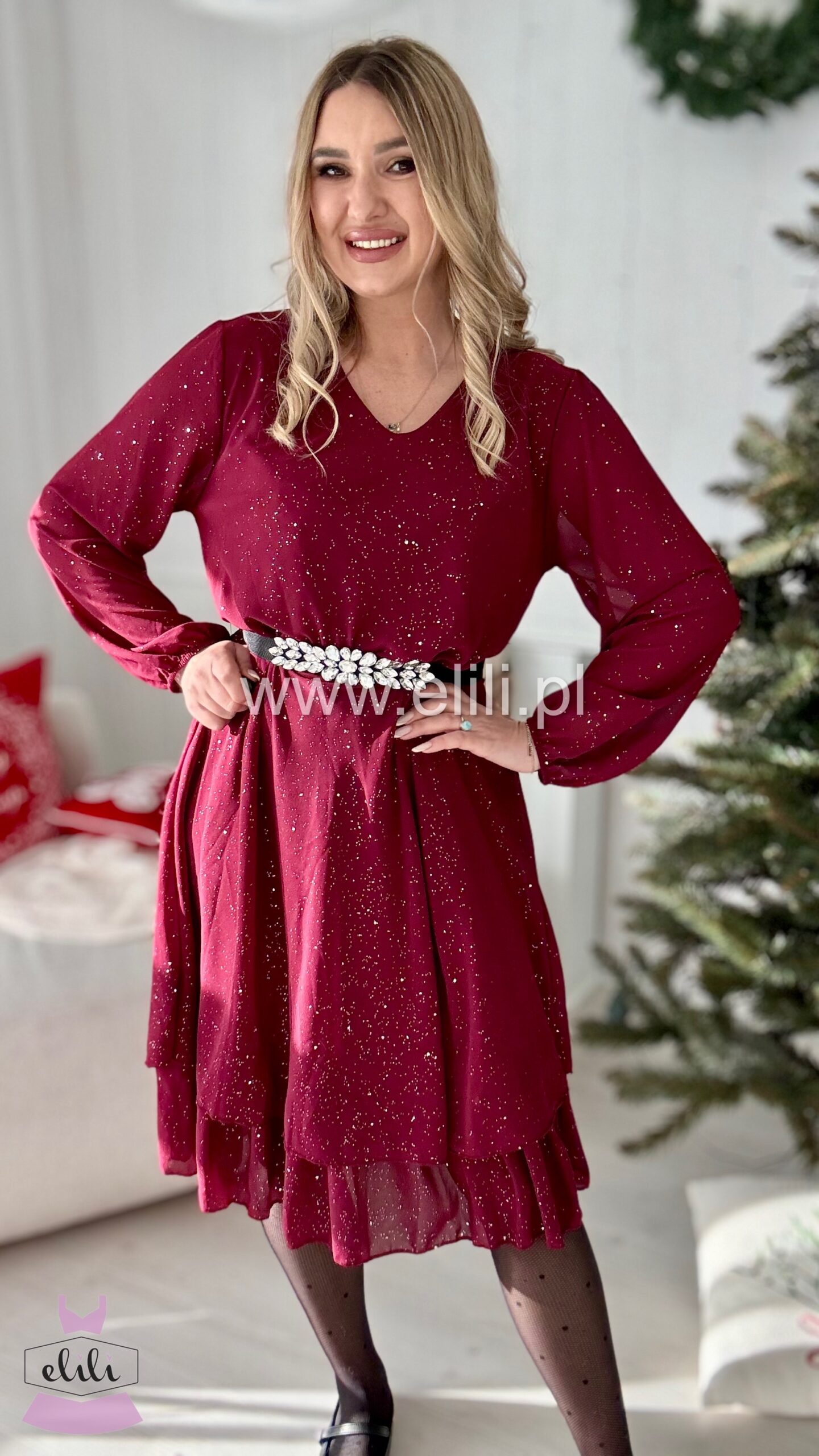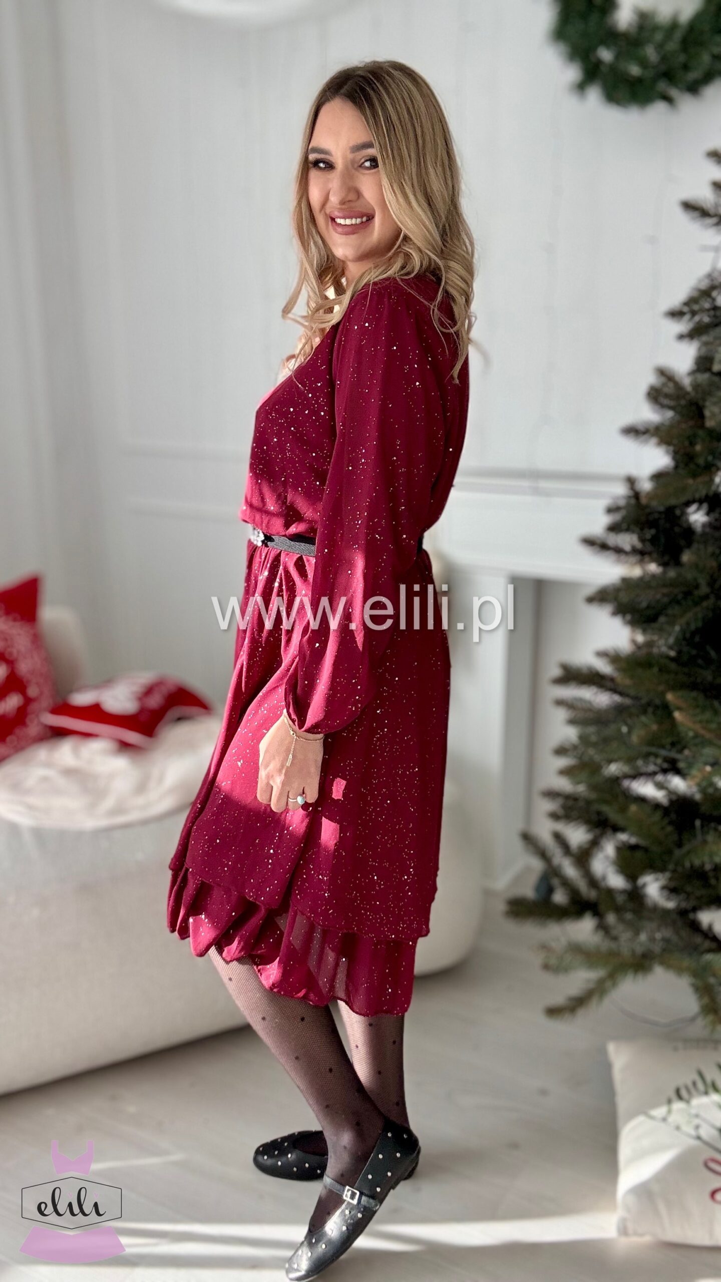 Sukienka Bella shine bordo