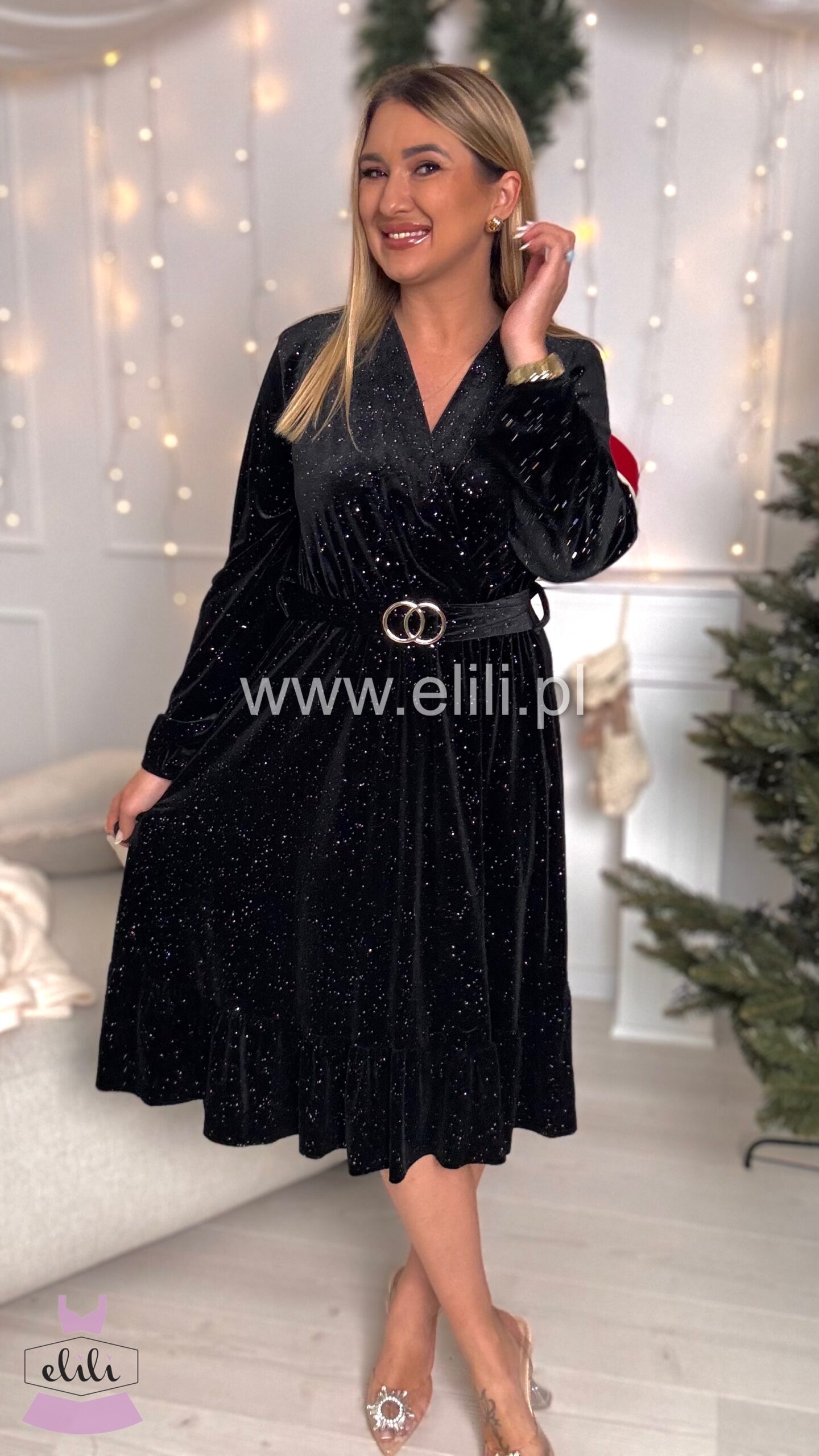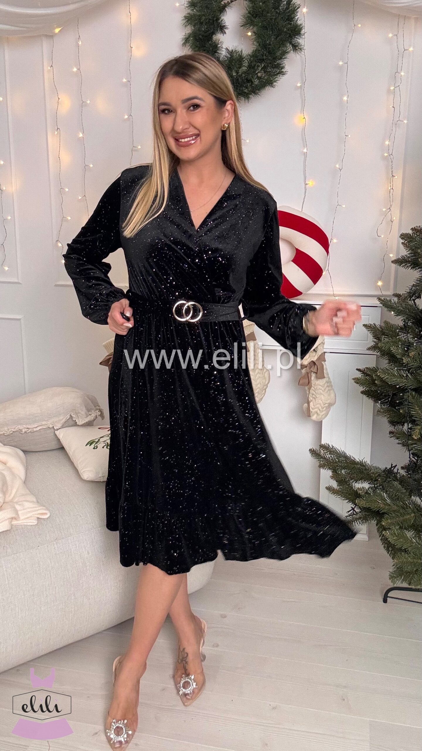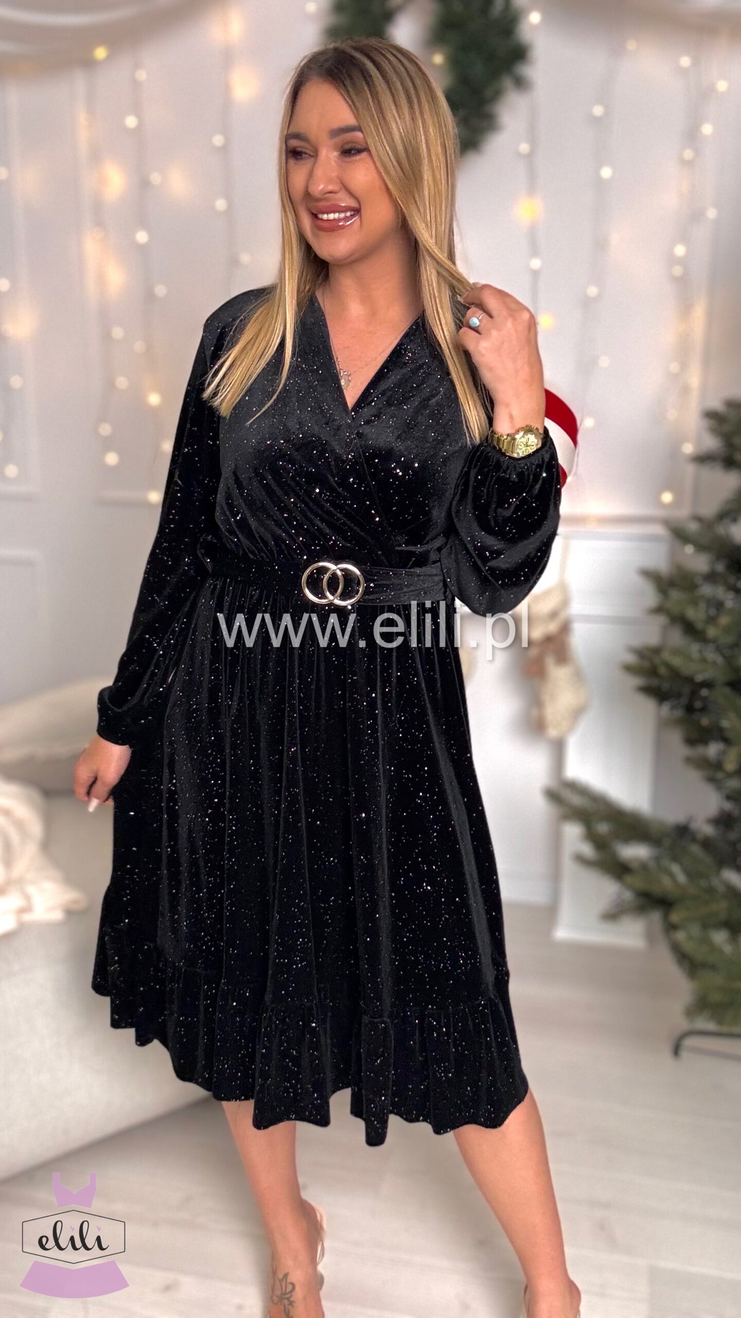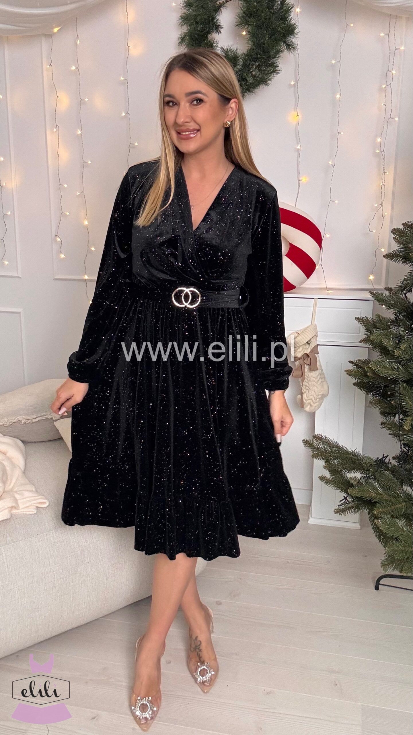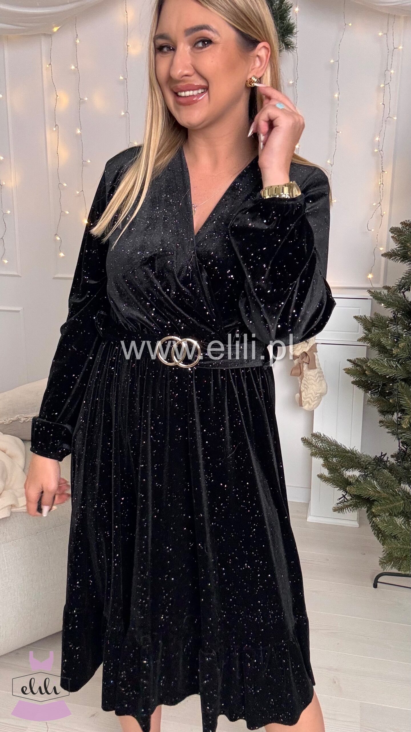 Welurowy model w błyszczące cyrkonie z ozdobna klamra