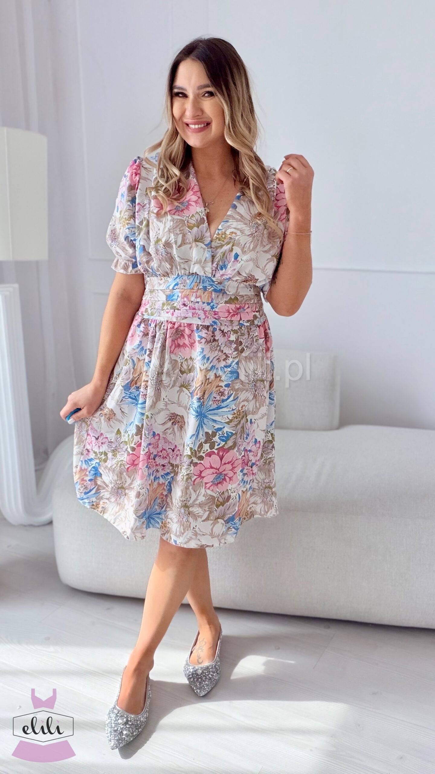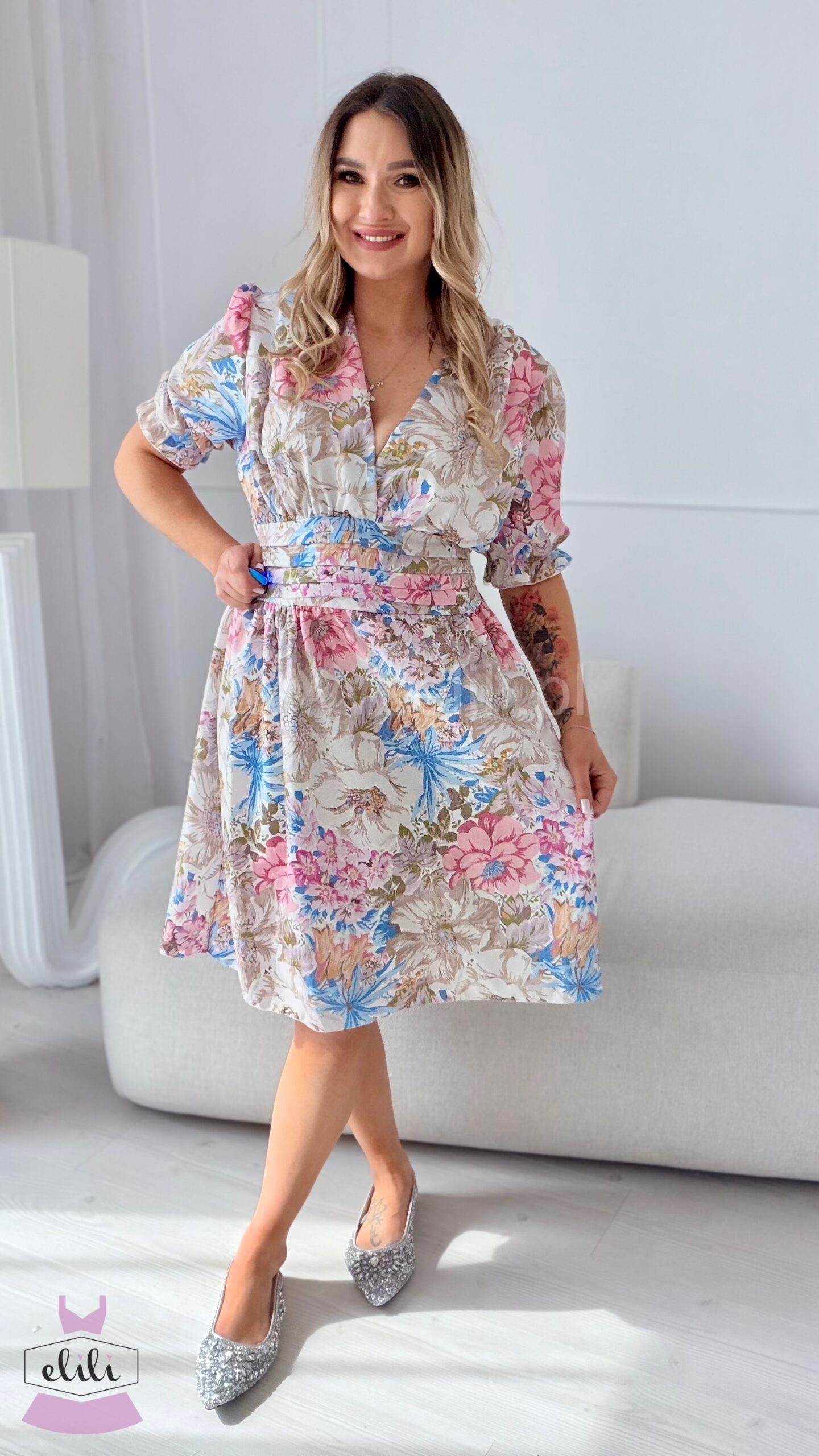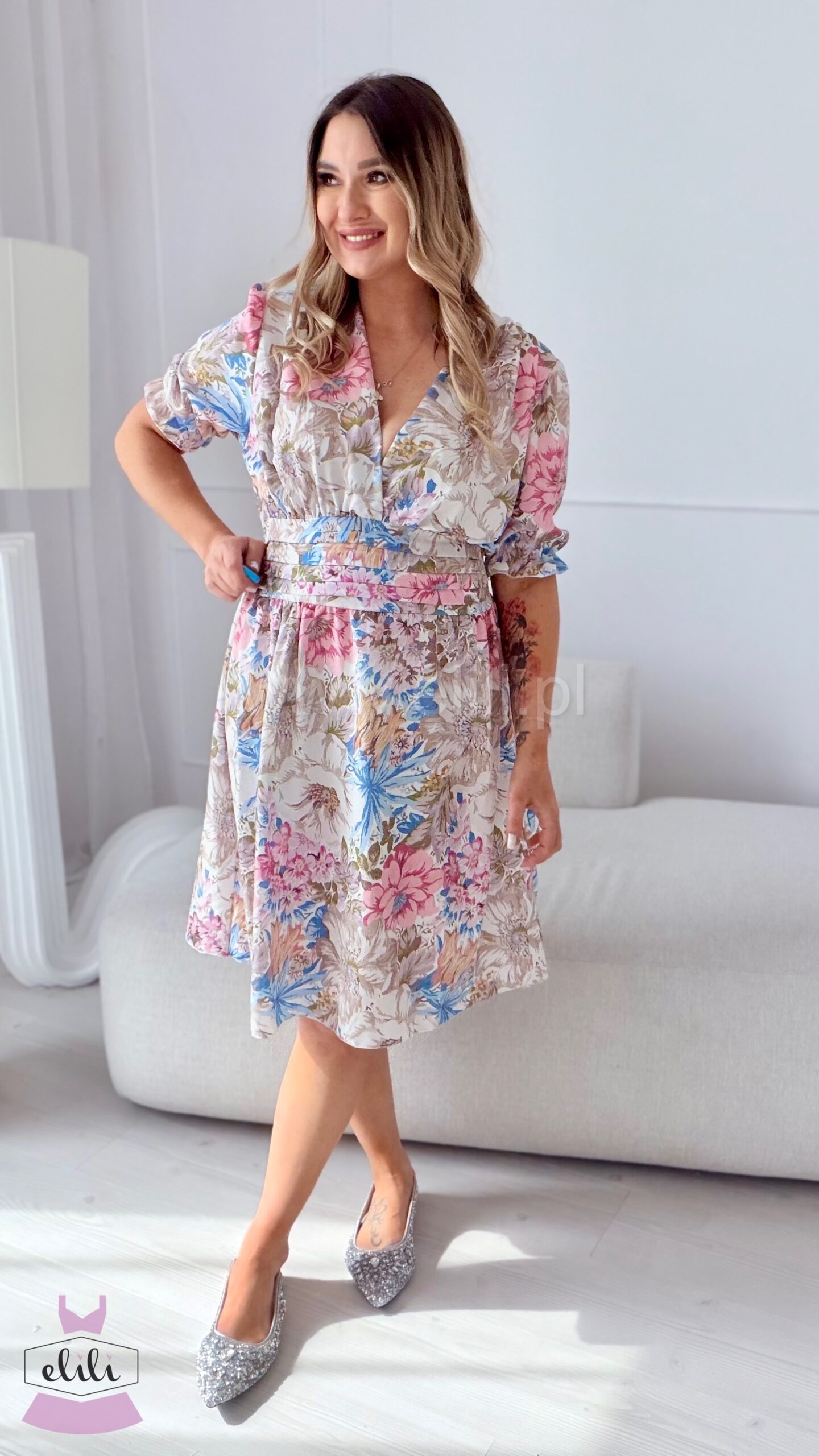 Eleganza to uwielbiany model , teraz dostępny również w wersji mini. Sukienka została zaprojektowana tak, aby pięknie podkreślać sylwetkę — zaznaczona talia nadaje proporcji, a dekolt w serek subtelnie wysmukla górę i eksponuje biust. Kobiecy krój w połączeniu z wygodą sprawia, że to idealna propozycja zarówno na co dzień, jak i na wyjątkowe okazje.