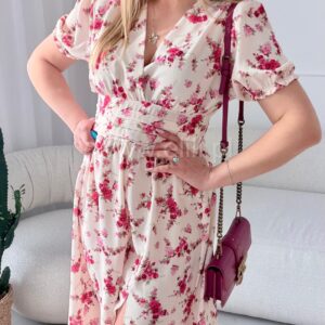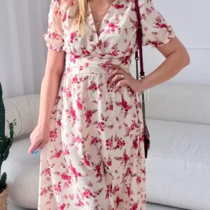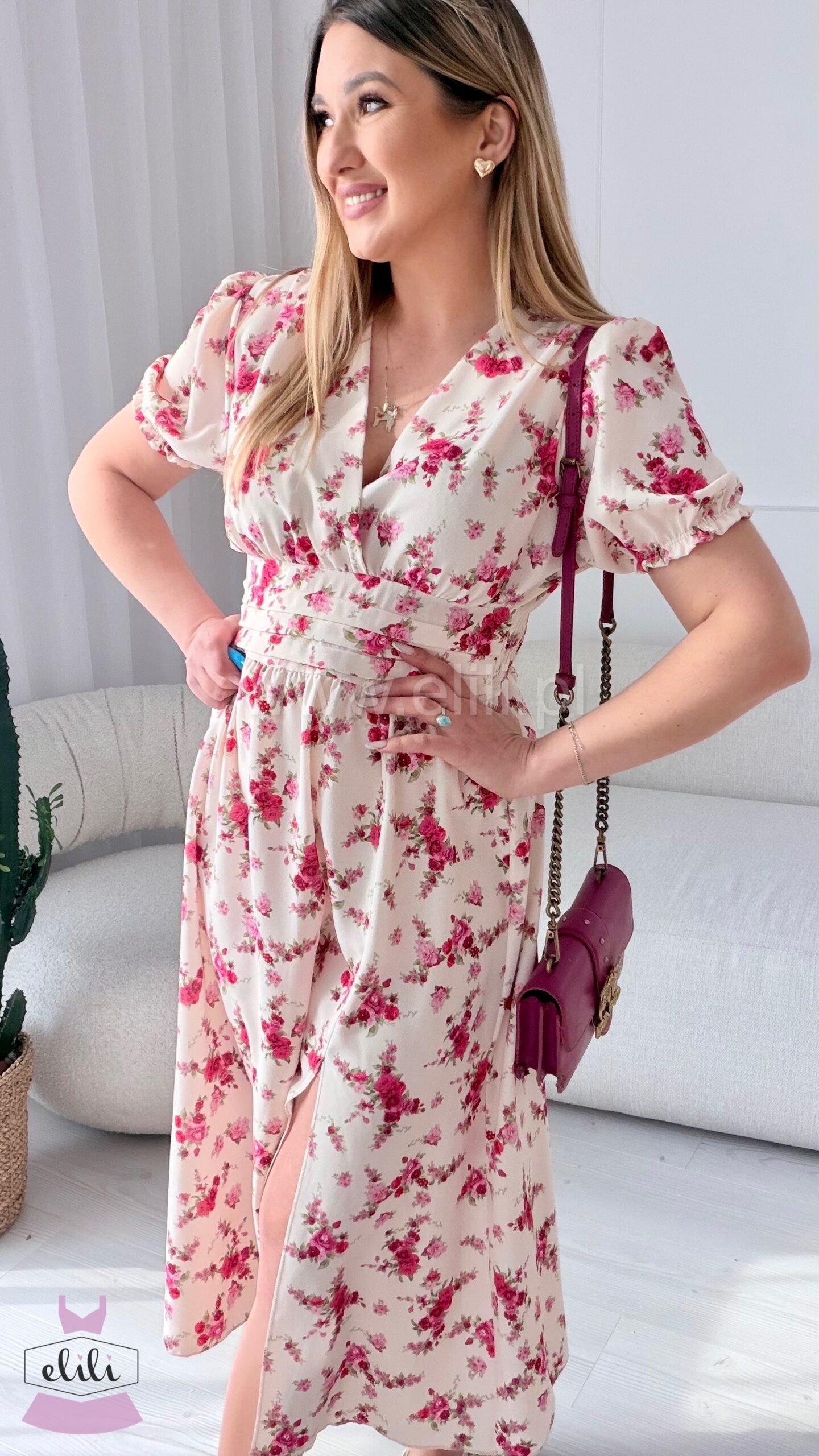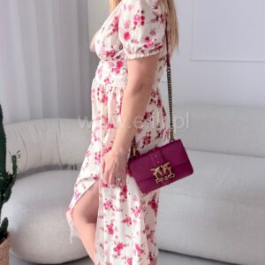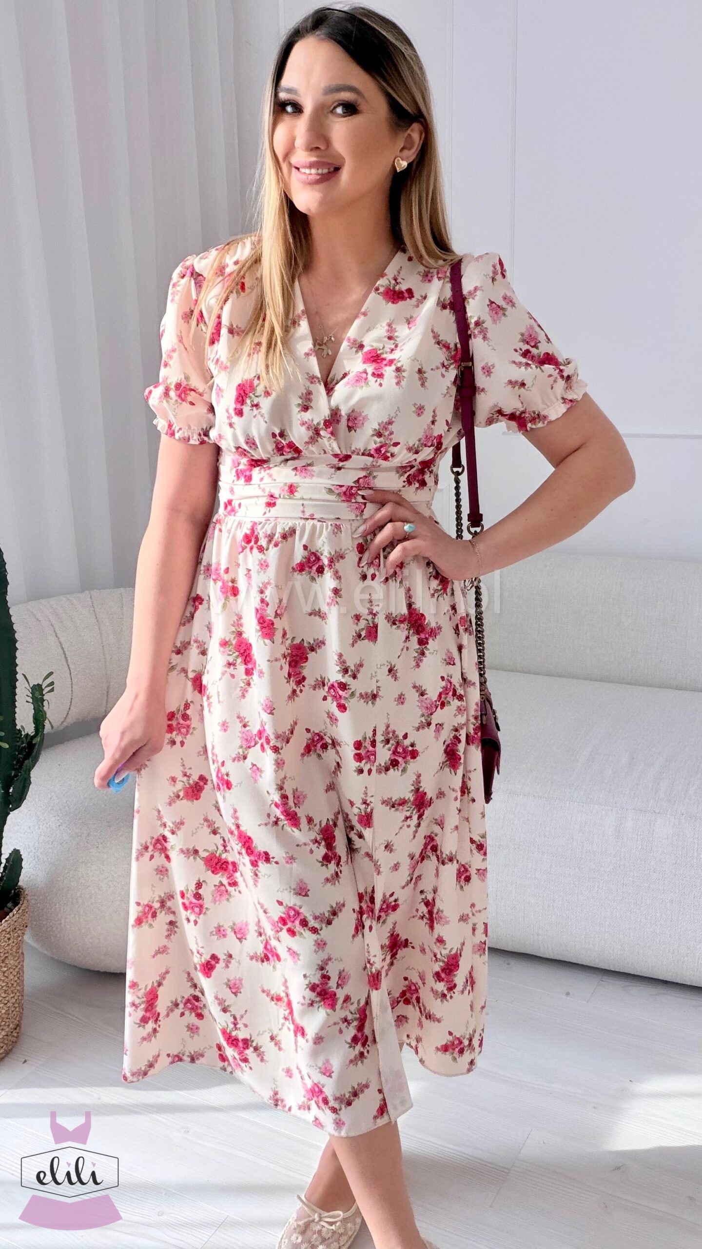 Kopertowy dekolt delikatnie eksponuje biust i wysmukla szyję, nadając całości lekkości i elegancji. Zmysłowe rozcięcie na nodze dodaje charakteru i sprawia, że Elina prezentuje się niezwykle kobieco – zarówno w ruchu, jak i na zdjęciach.