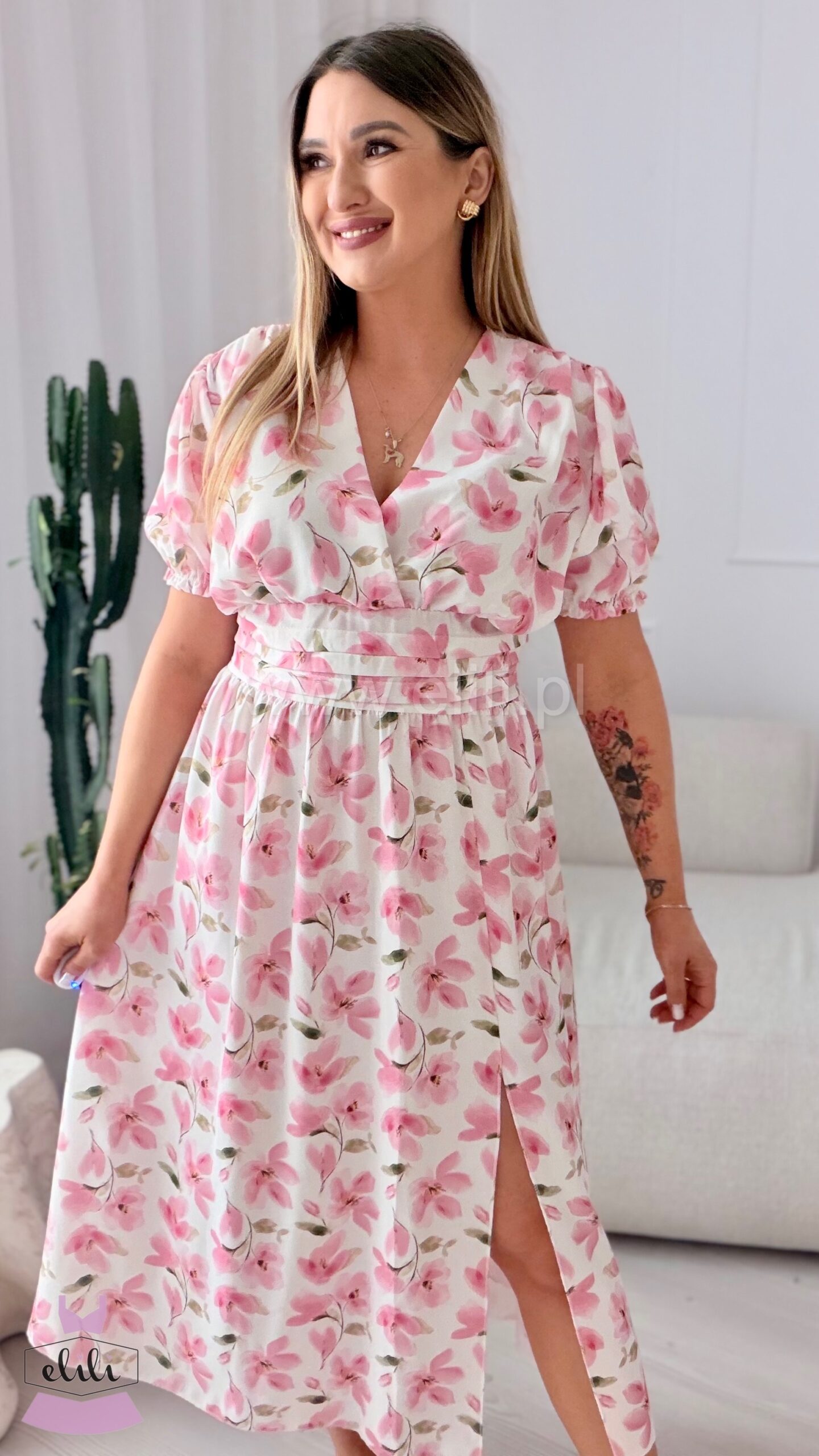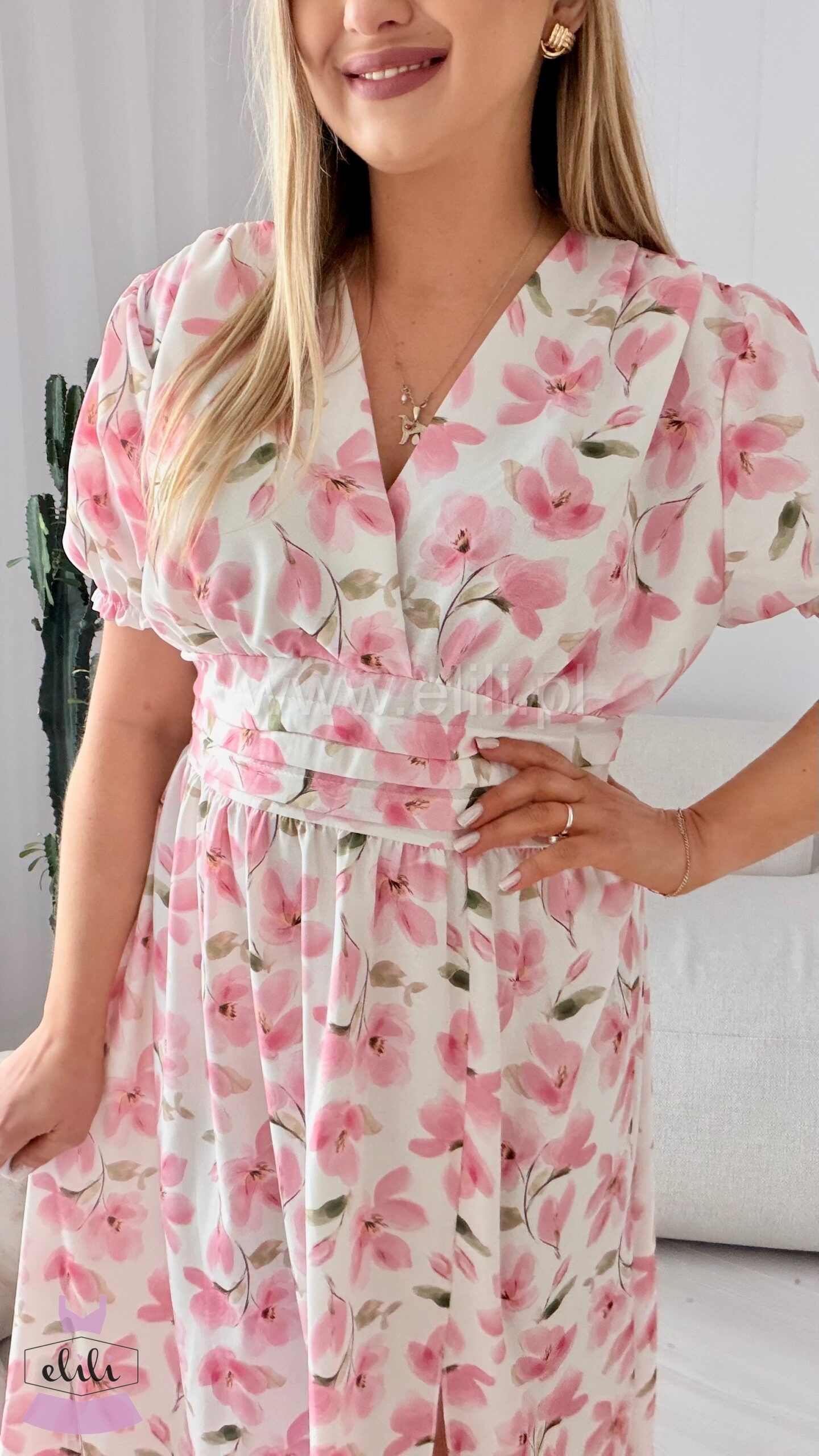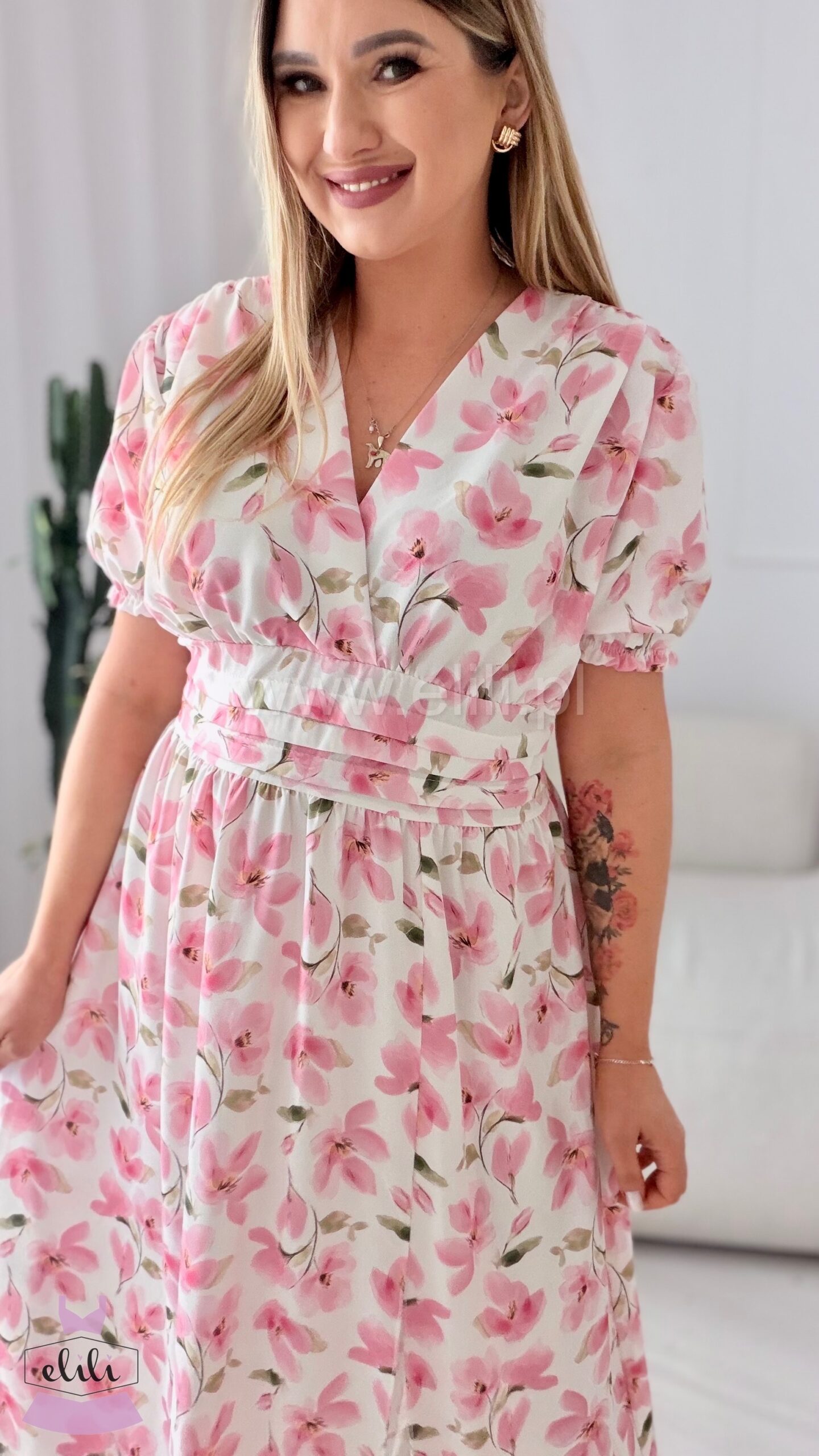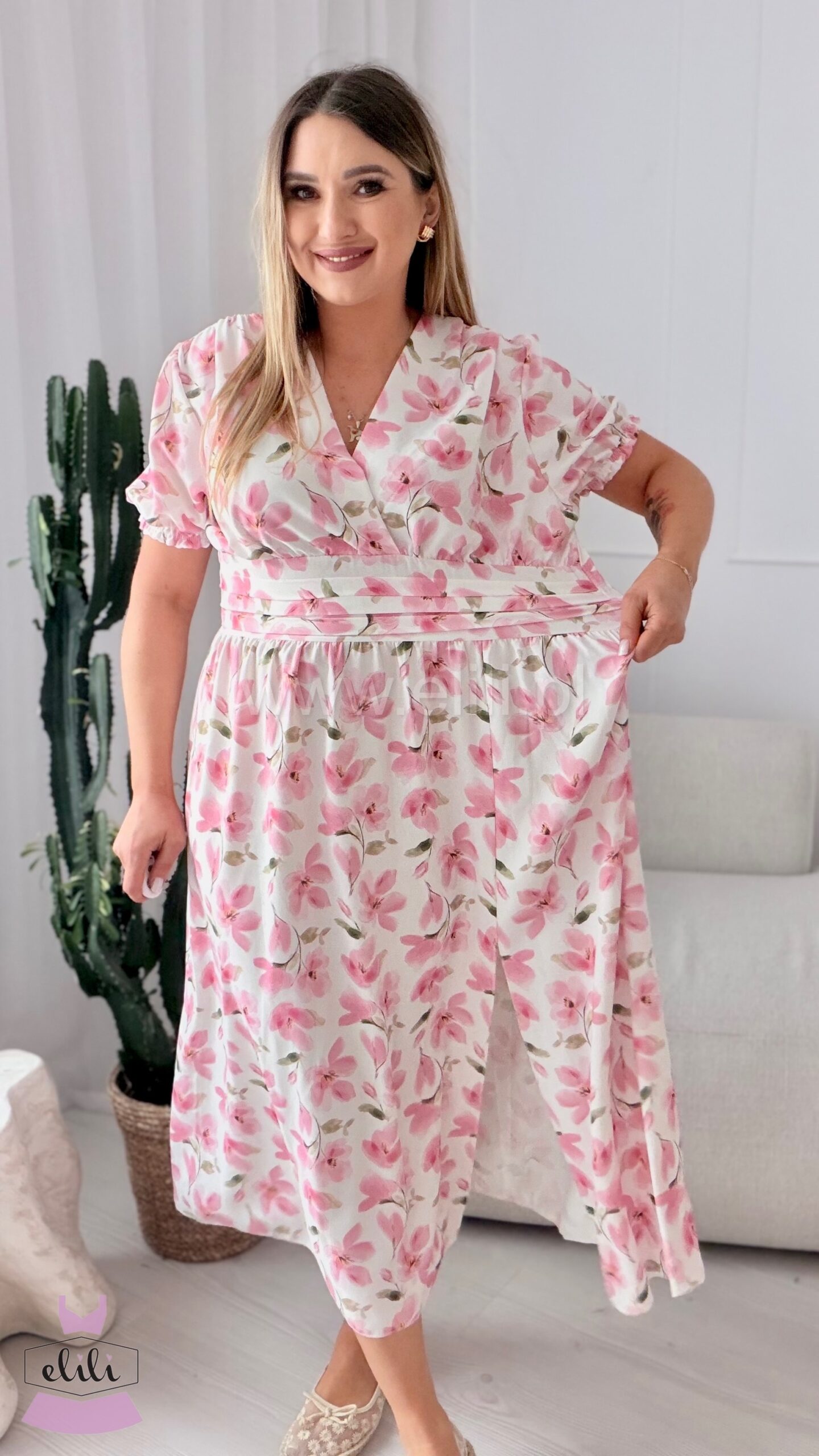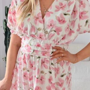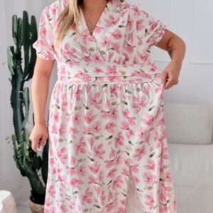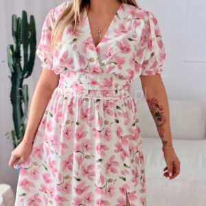 Sukienka Elina PLUS SIZE biała w brzoskwiniowe kwiaty