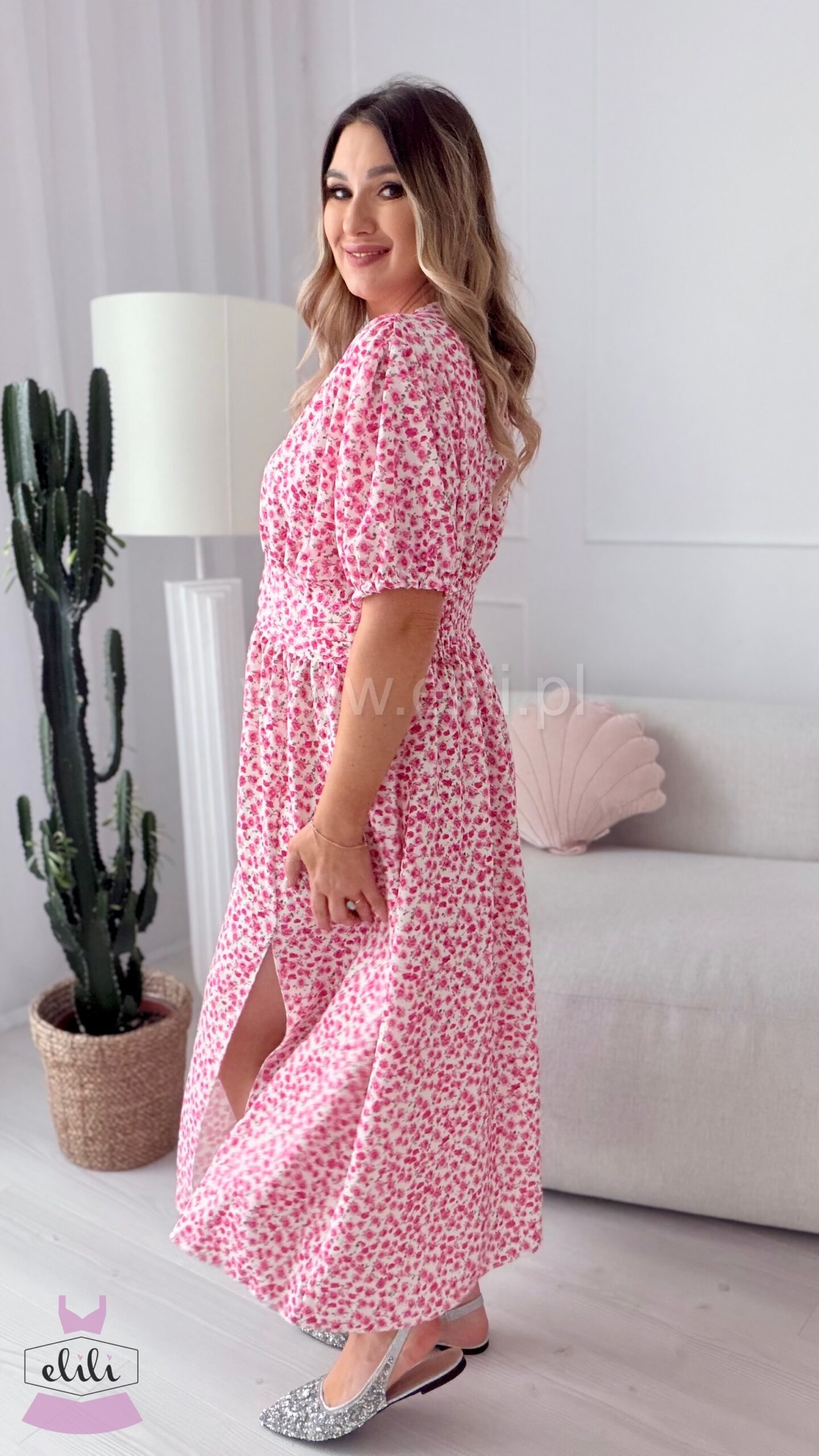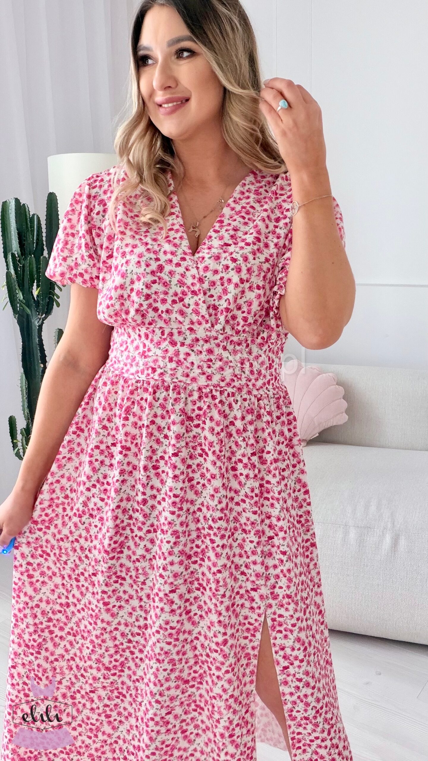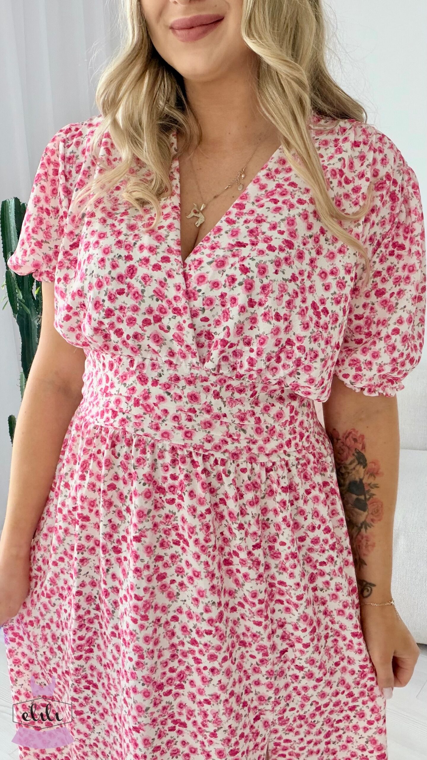 Sukienka Elina PLUS SIZE biała w fuksjowe kwiatuszki