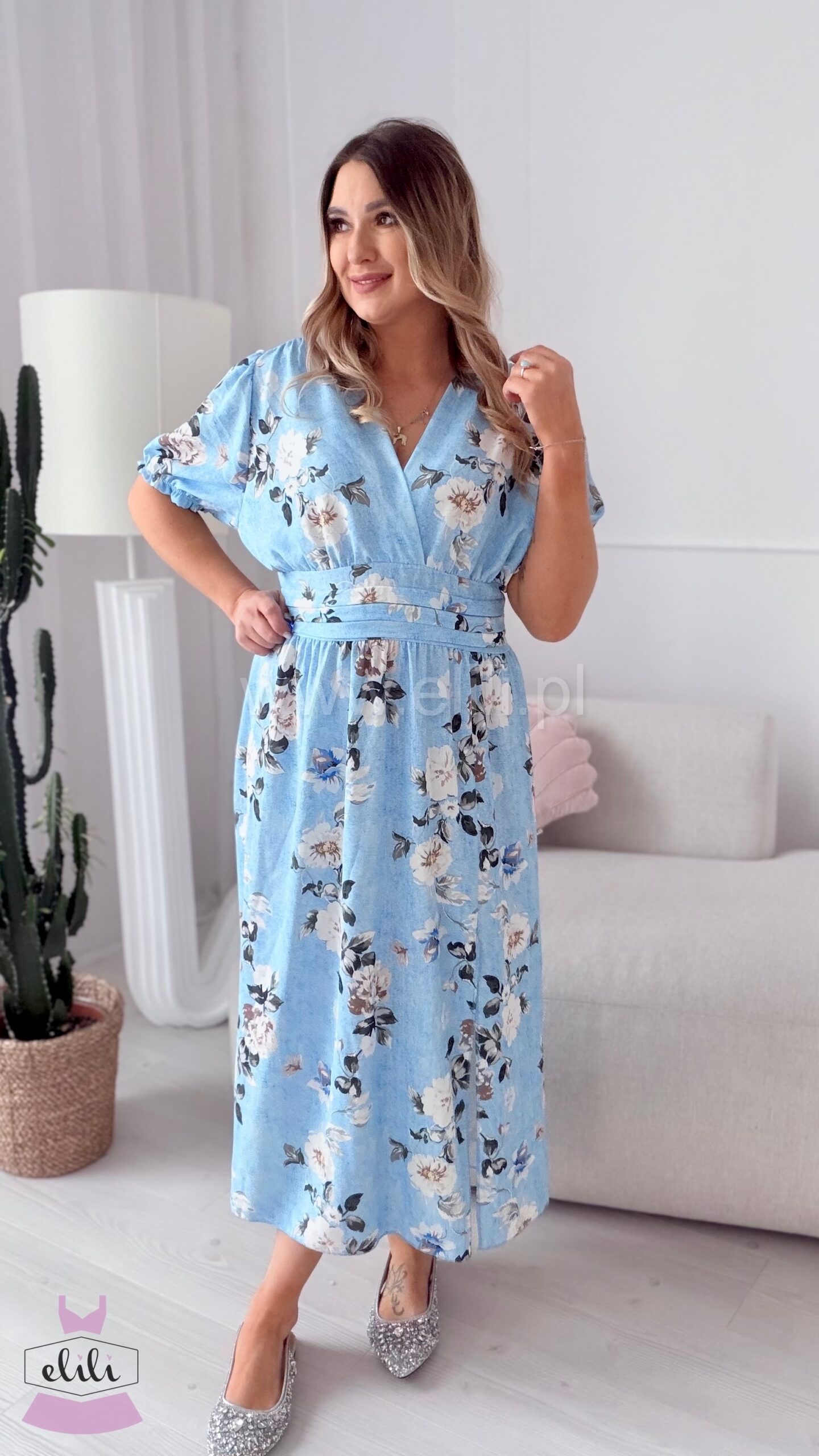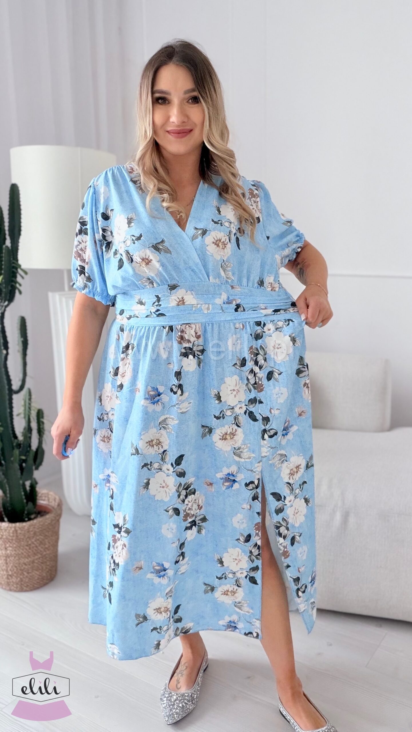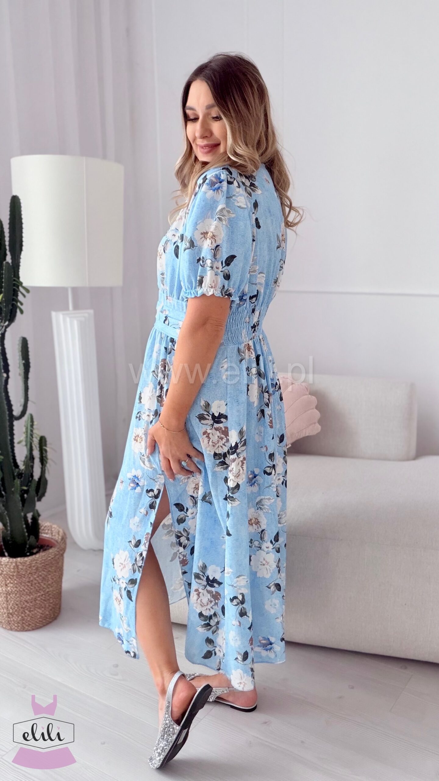 Kopertowy dekolt delikatnie eksponuje biust i wysmukla szyję, nadając całości lekkości i elegancji. Zmysłowe rozcięcie na nodze dodaje charakteru i sprawia, że Elina prezentuje się niezwykle kobieco – zarówno w ruchu, jak i na zdjęciach.