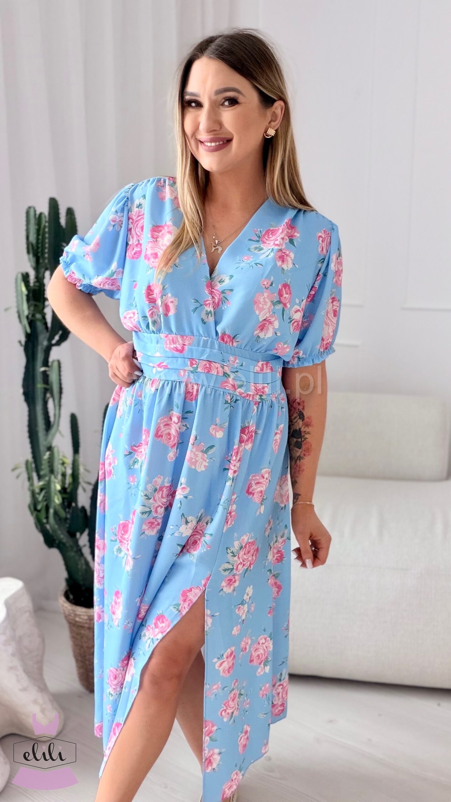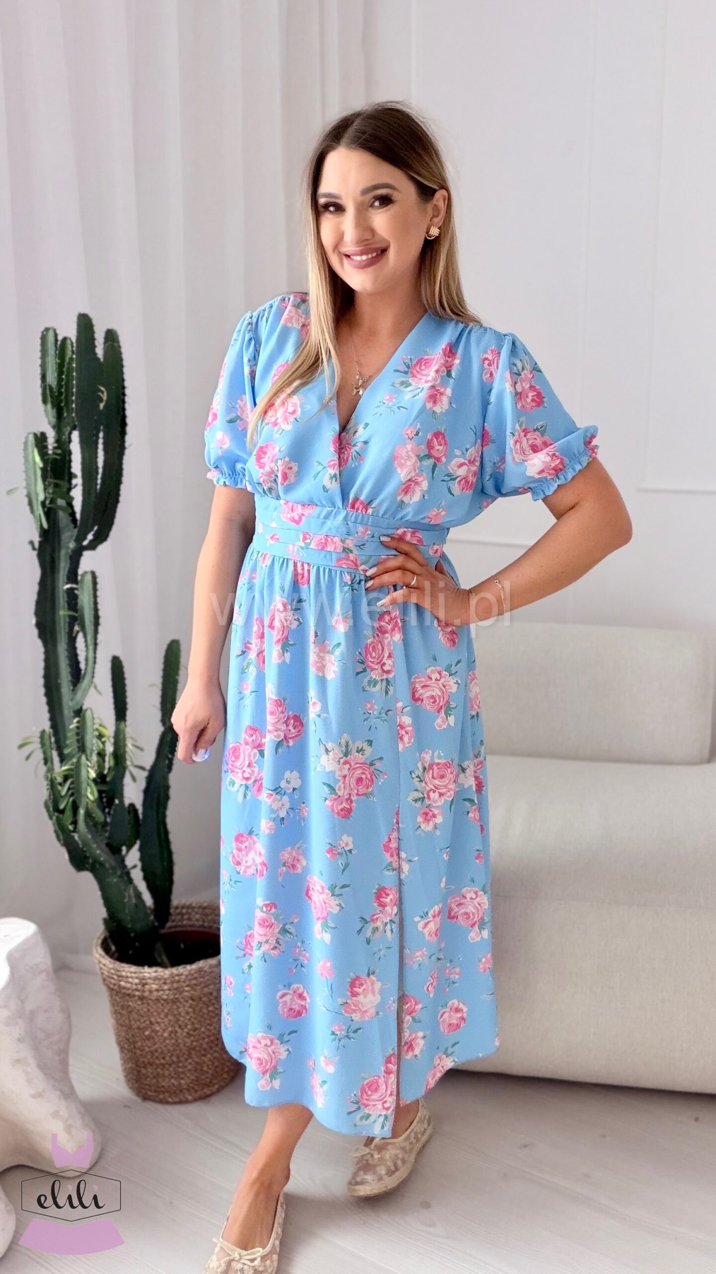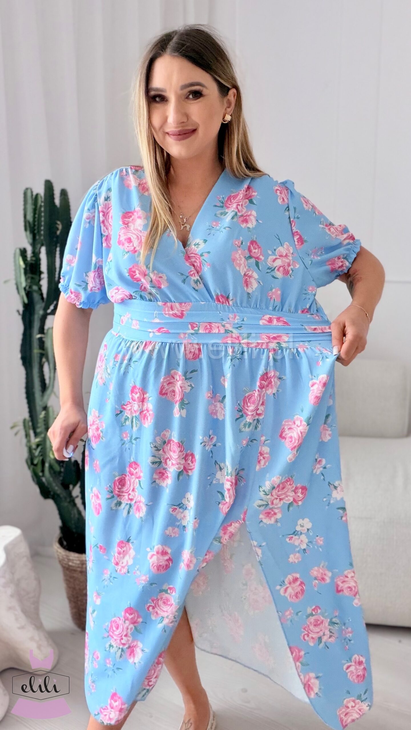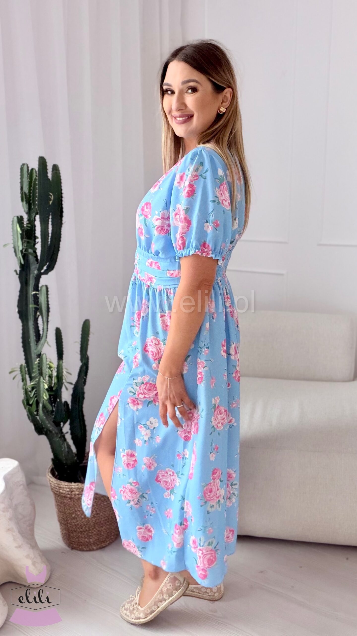 Kopertowy dekolt delikatnie eksponuje biust i wysmukla szyję, nadając całości lekkości i elegancji. Zmysłowe rozcięcie na nodze dodaje charakteru i sprawia, że Elina prezentuje się niezwykle kobieco – zarówno w ruchu, jak i na zdjęciach.