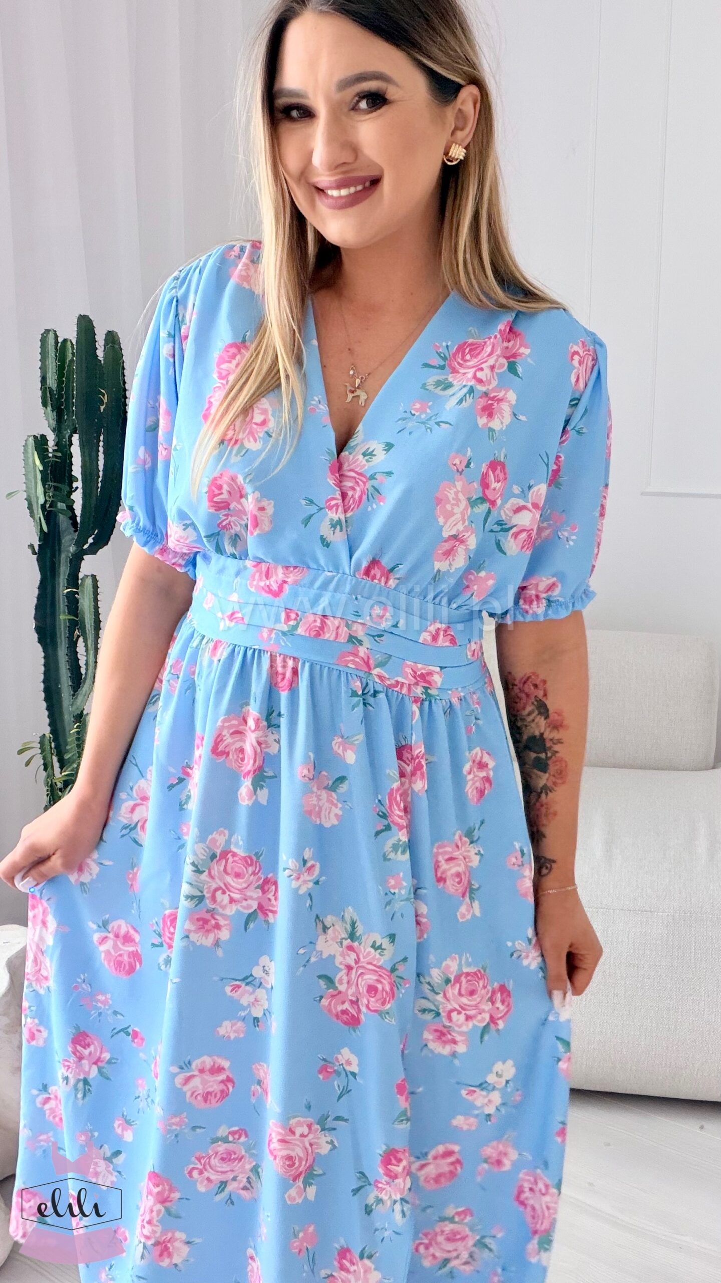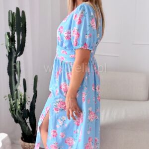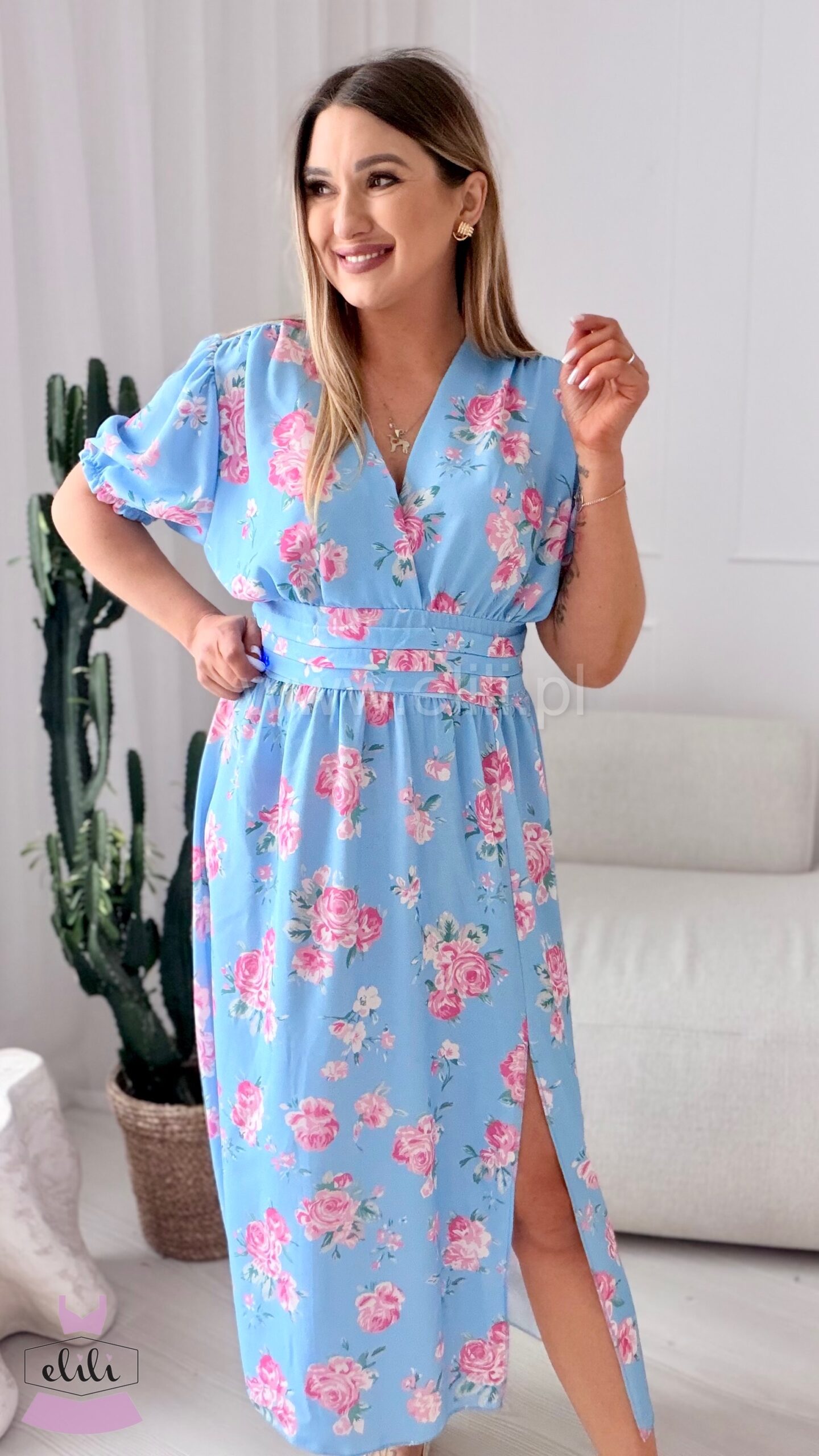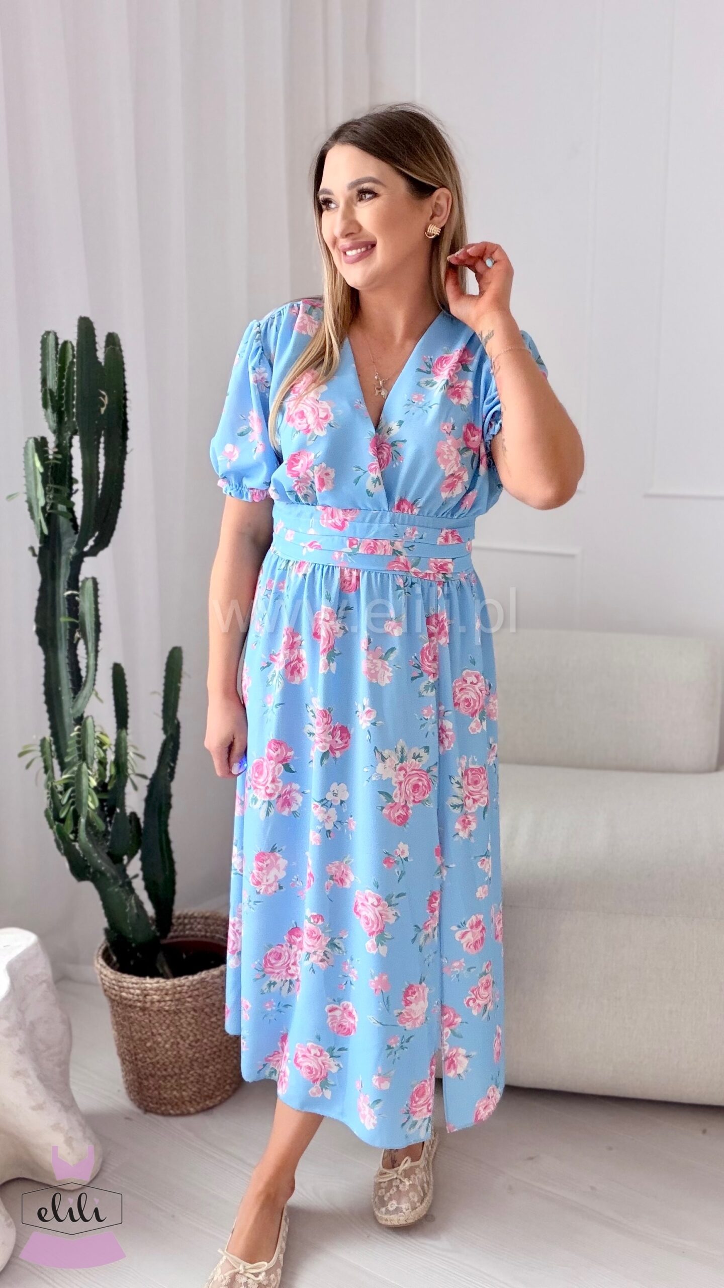 Kopertowy dekolt delikatnie eksponuje biust i wysmukla szyję, nadając całości lekkości i elegancji. Zmysłowe rozcięcie na nodze dodaje charakteru i sprawia, że Elina prezentuje się niezwykle kobieco – zarówno w ruchu, jak i na zdjęciach.