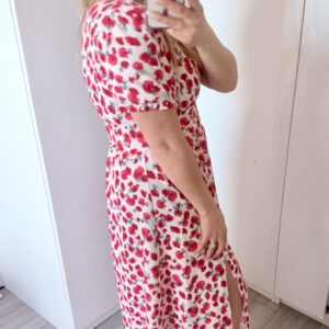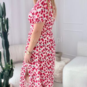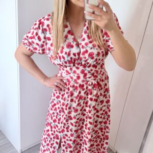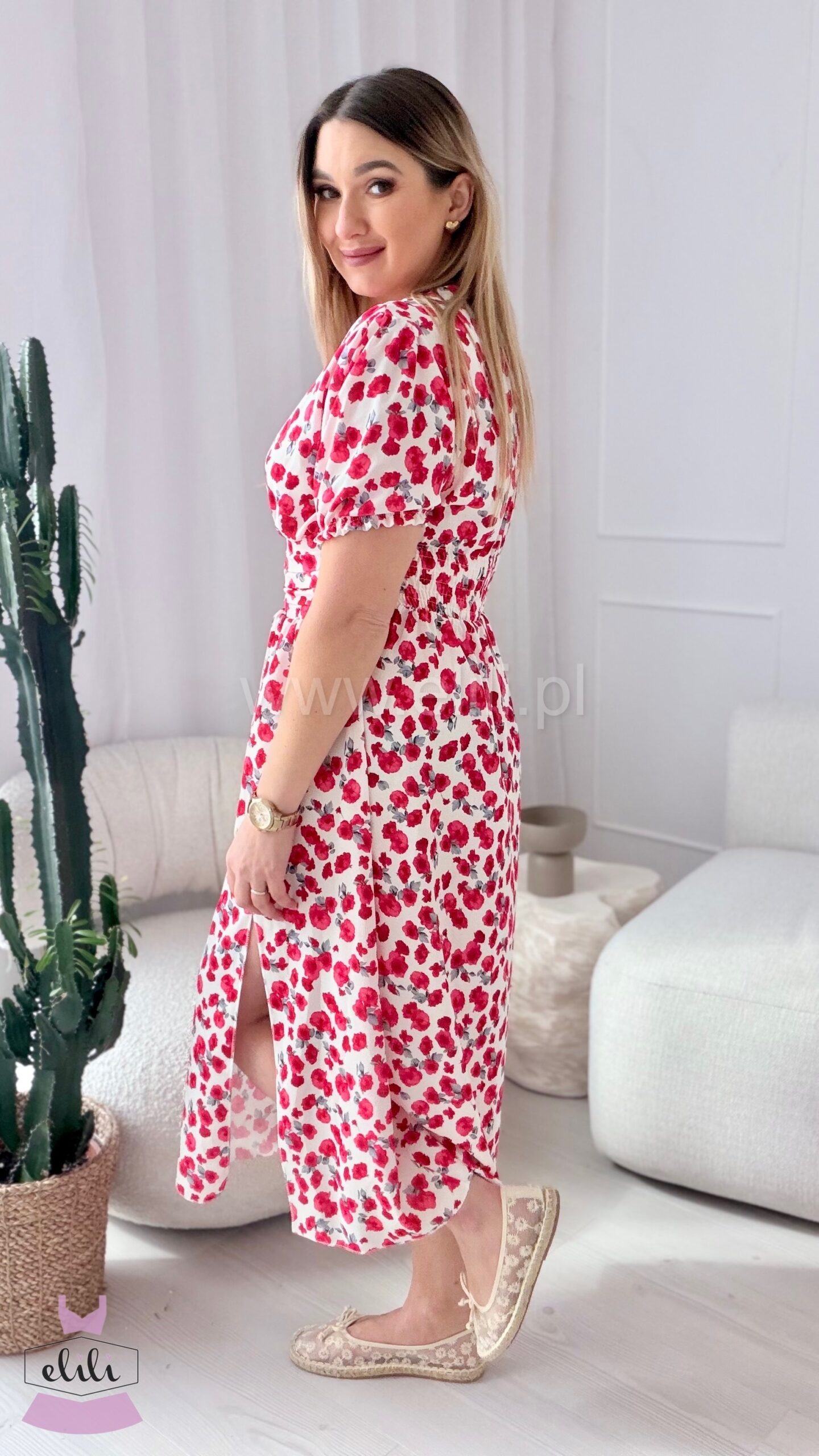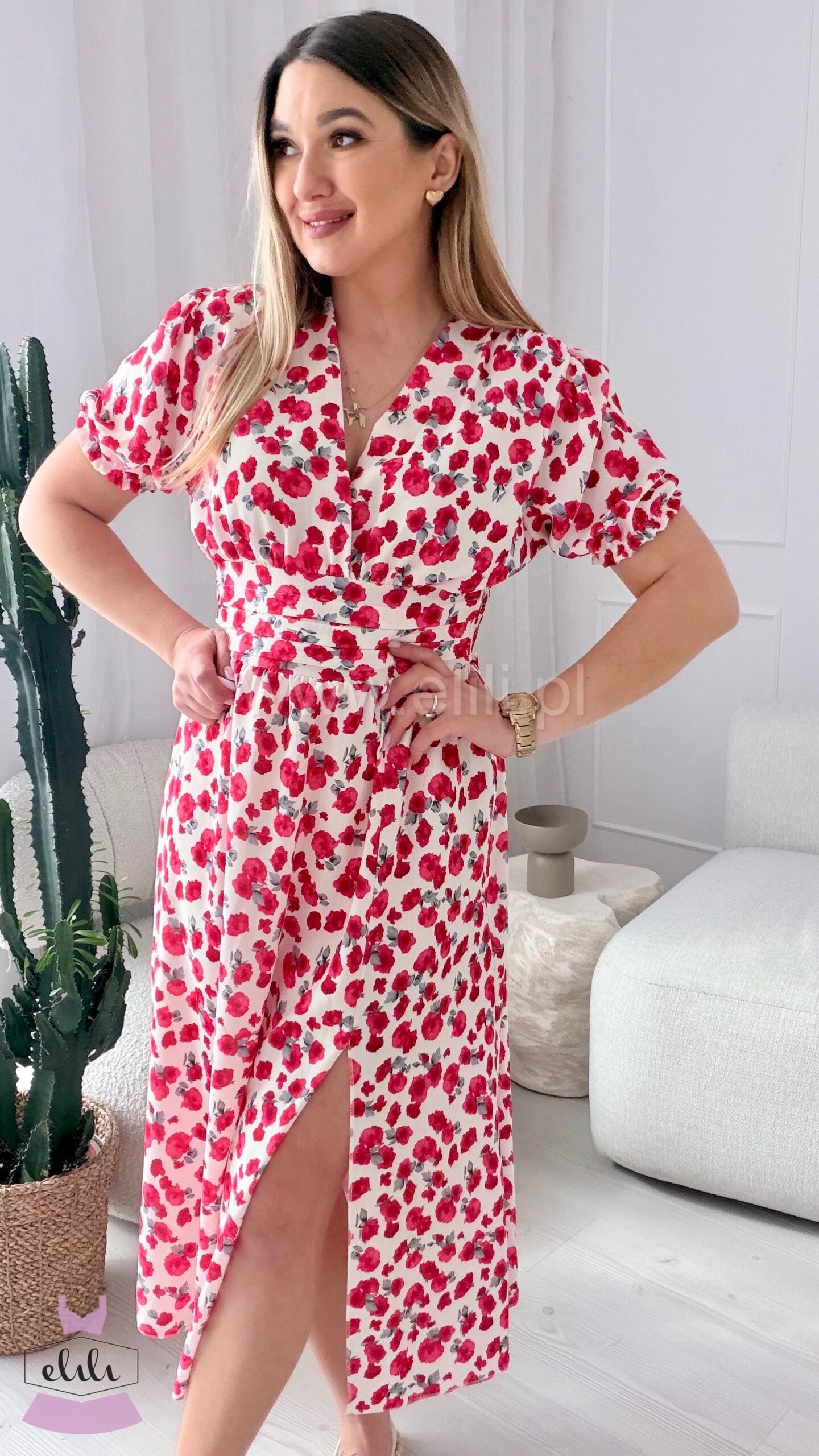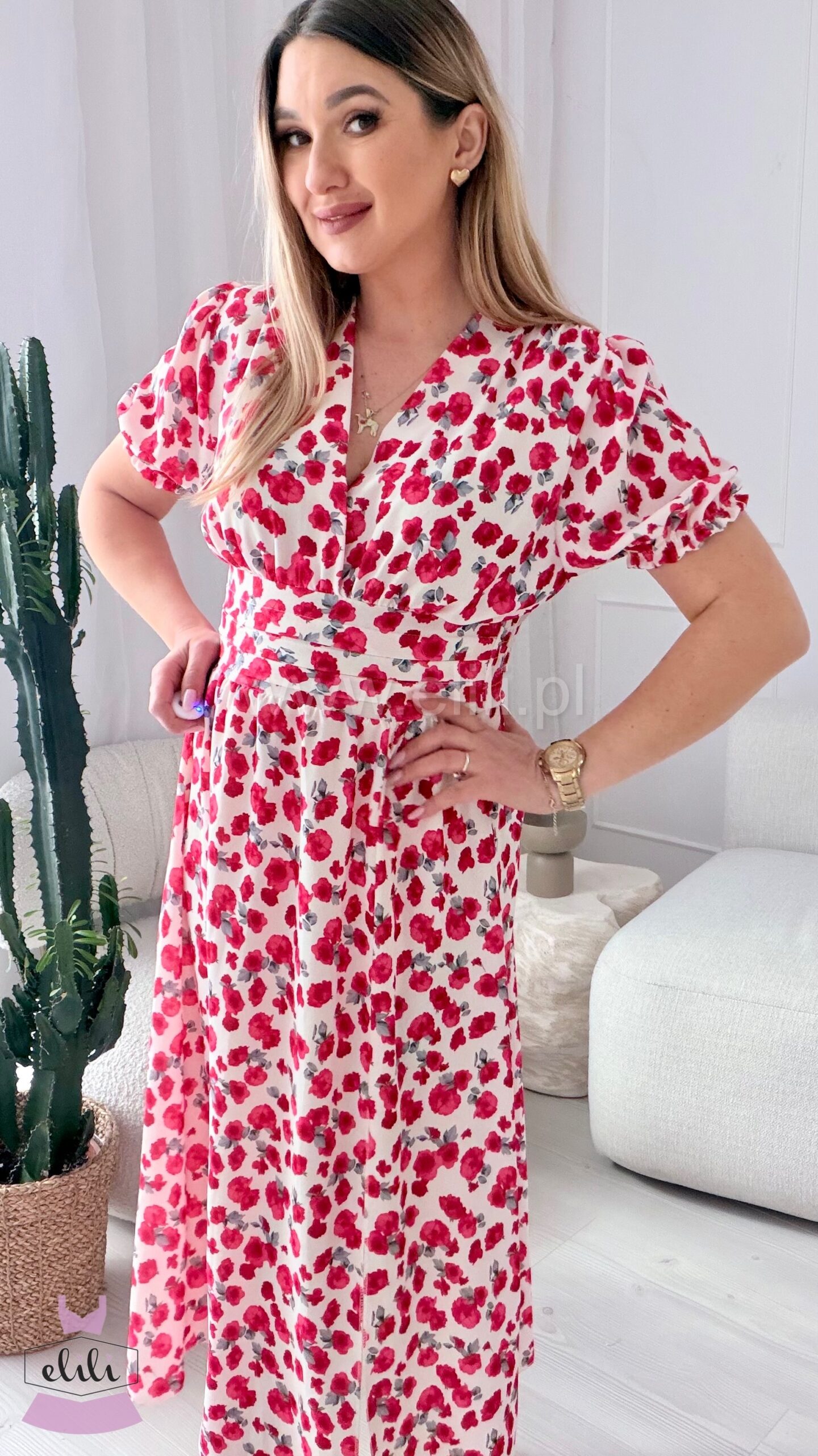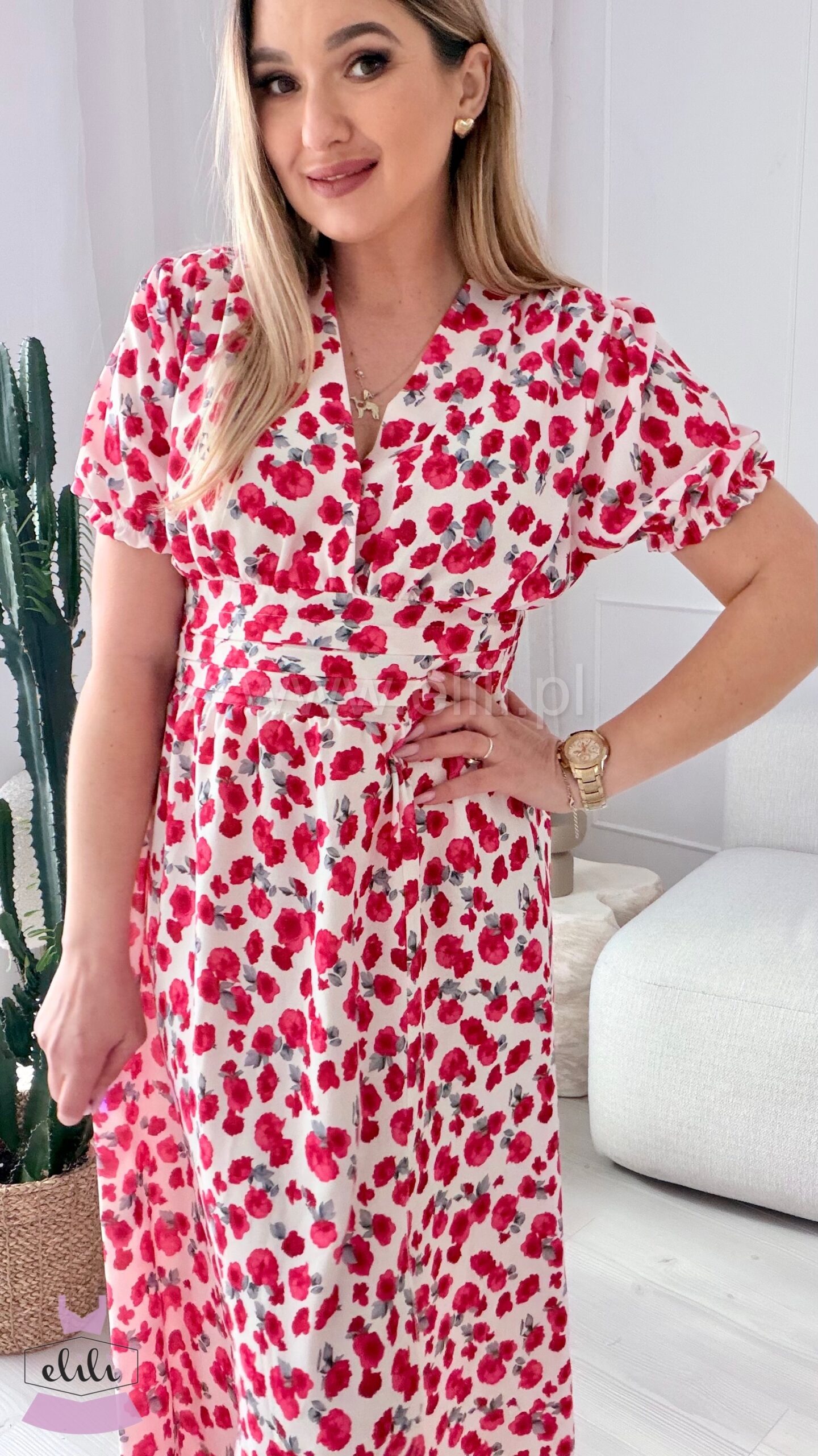 Kopertowy dekolt delikatnie eksponuje biust i wysmukla szyję, nadając całości lekkości i elegancji. Zmysłowe rozcięcie na nodze dodaje charakteru i sprawia, że Elina prezentuje się niezwykle kobieco – zarówno w ruchu, jak i na zdjęciach.