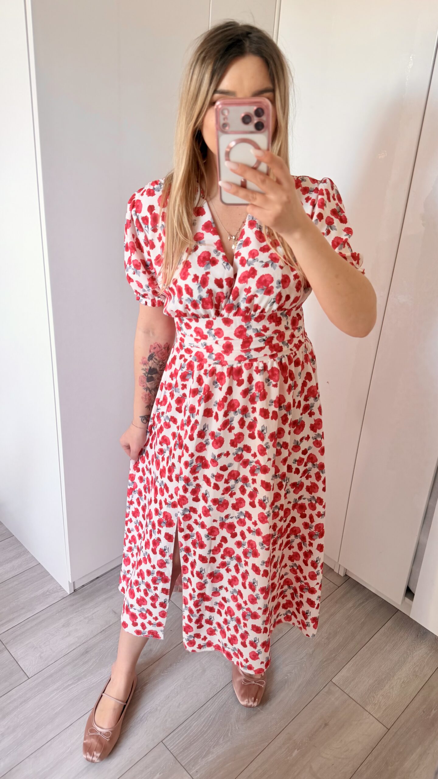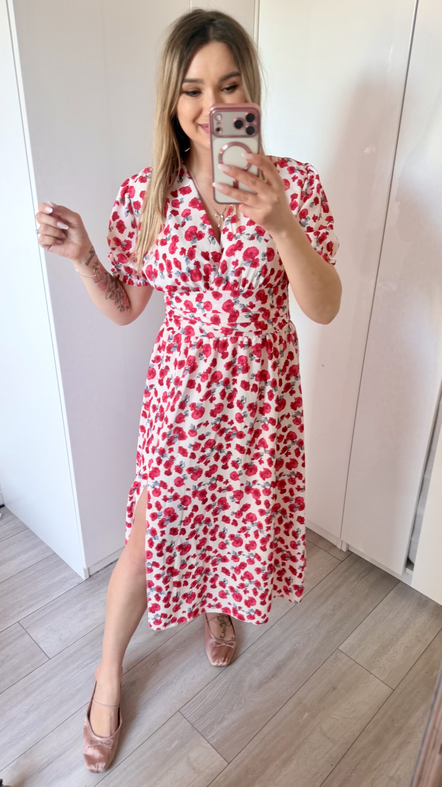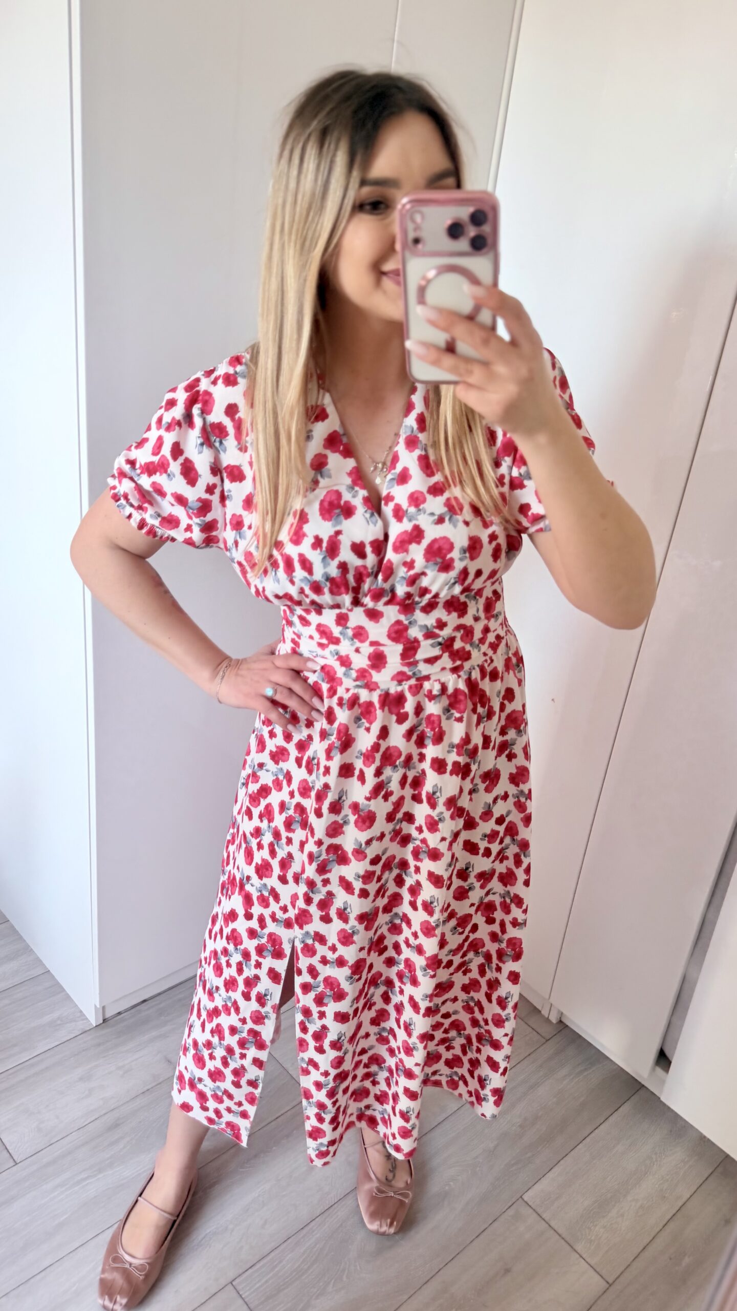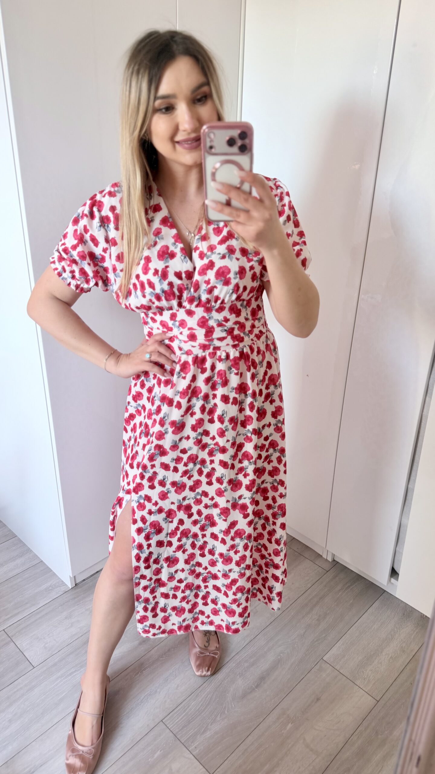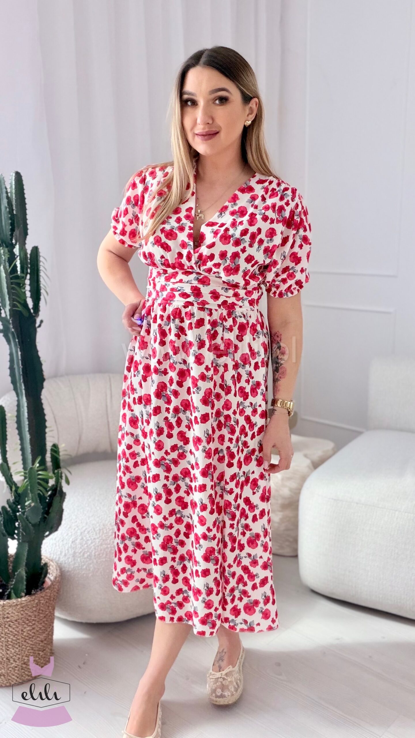 Kopertowy dekolt delikatnie eksponuje biust i wysmukla szyję, nadając całości lekkości i elegancji. Zmysłowe rozcięcie na nodze dodaje charakteru i sprawia, że Elina prezentuje się niezwykle kobieco – zarówno w ruchu, jak i na zdjęciach.