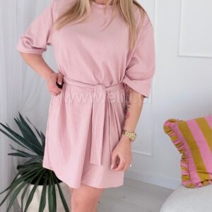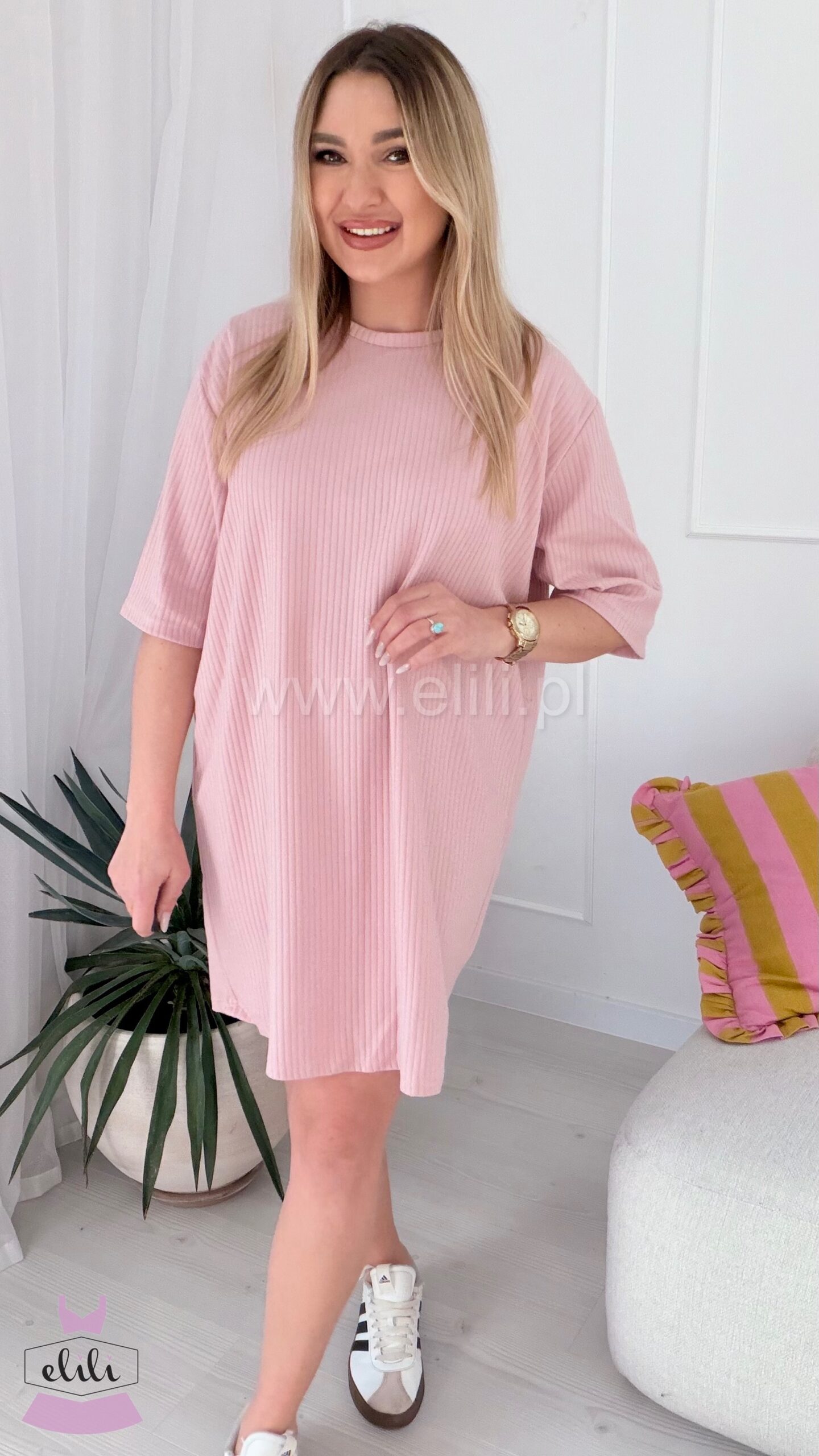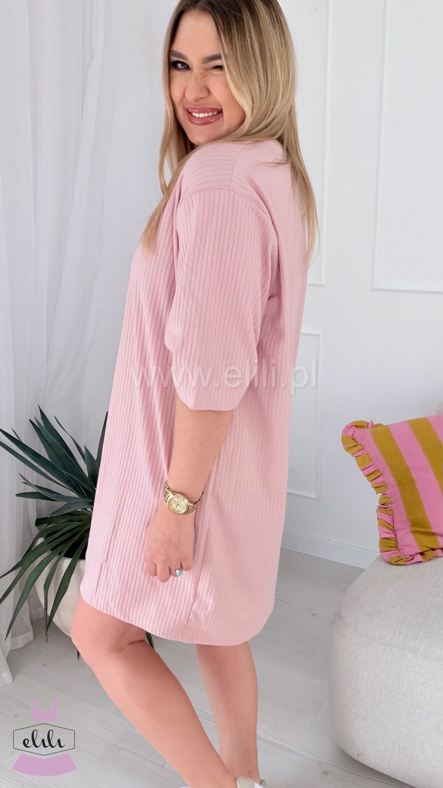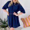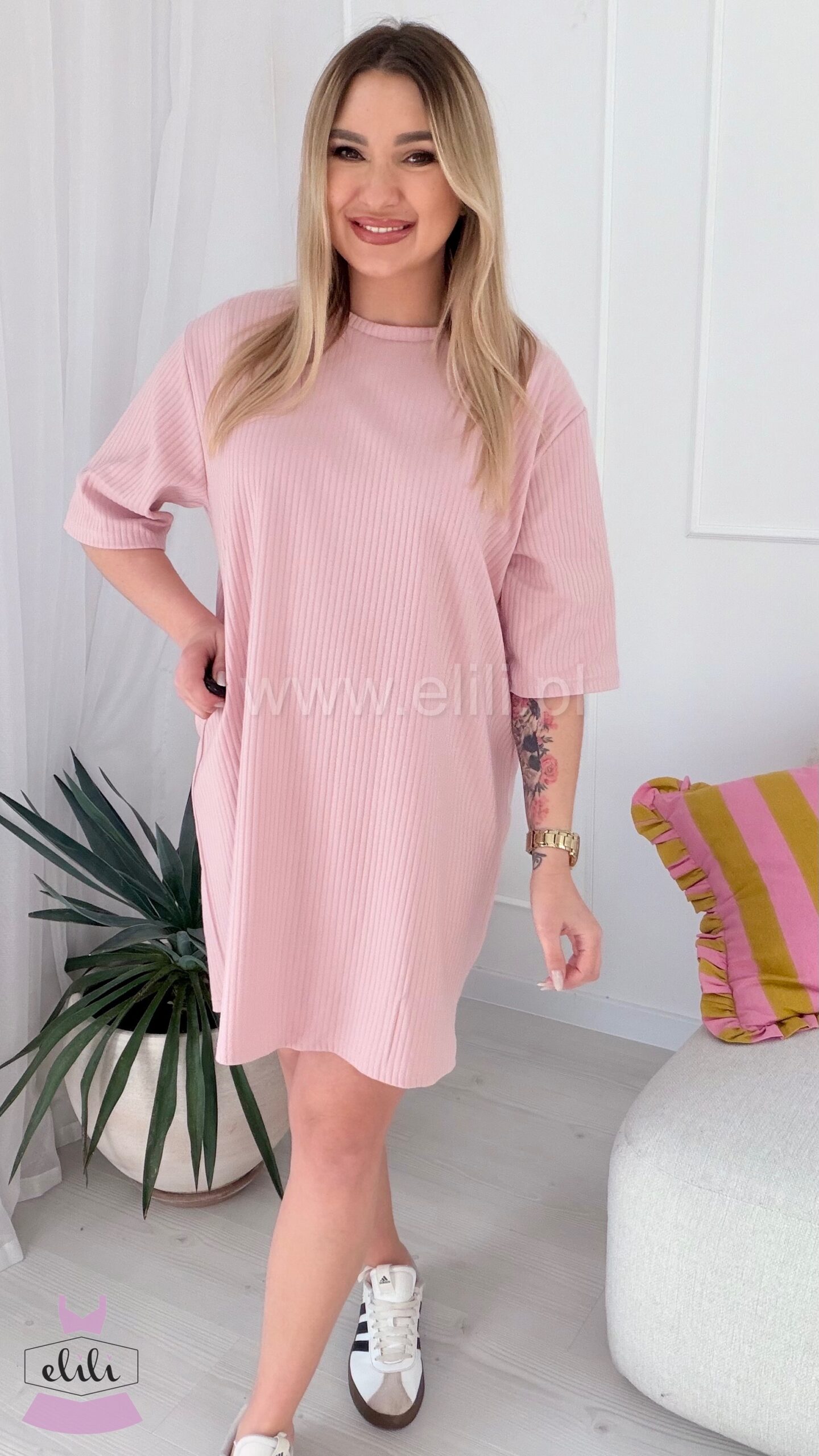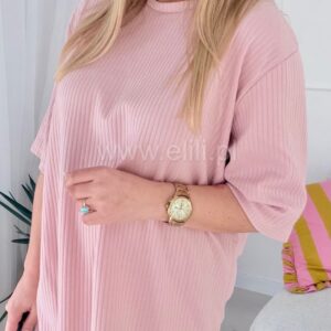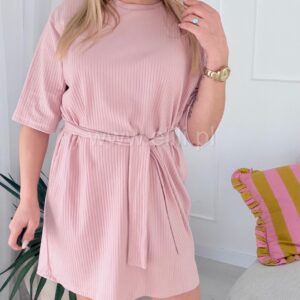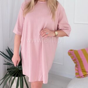 Prosta, casualowa sukienka o luźnym kroju przed kolano. Wykonana z bawełny, dzięki czemu jest miękka, oddychająca i elastyczna, co zapewnia komfort noszenia.