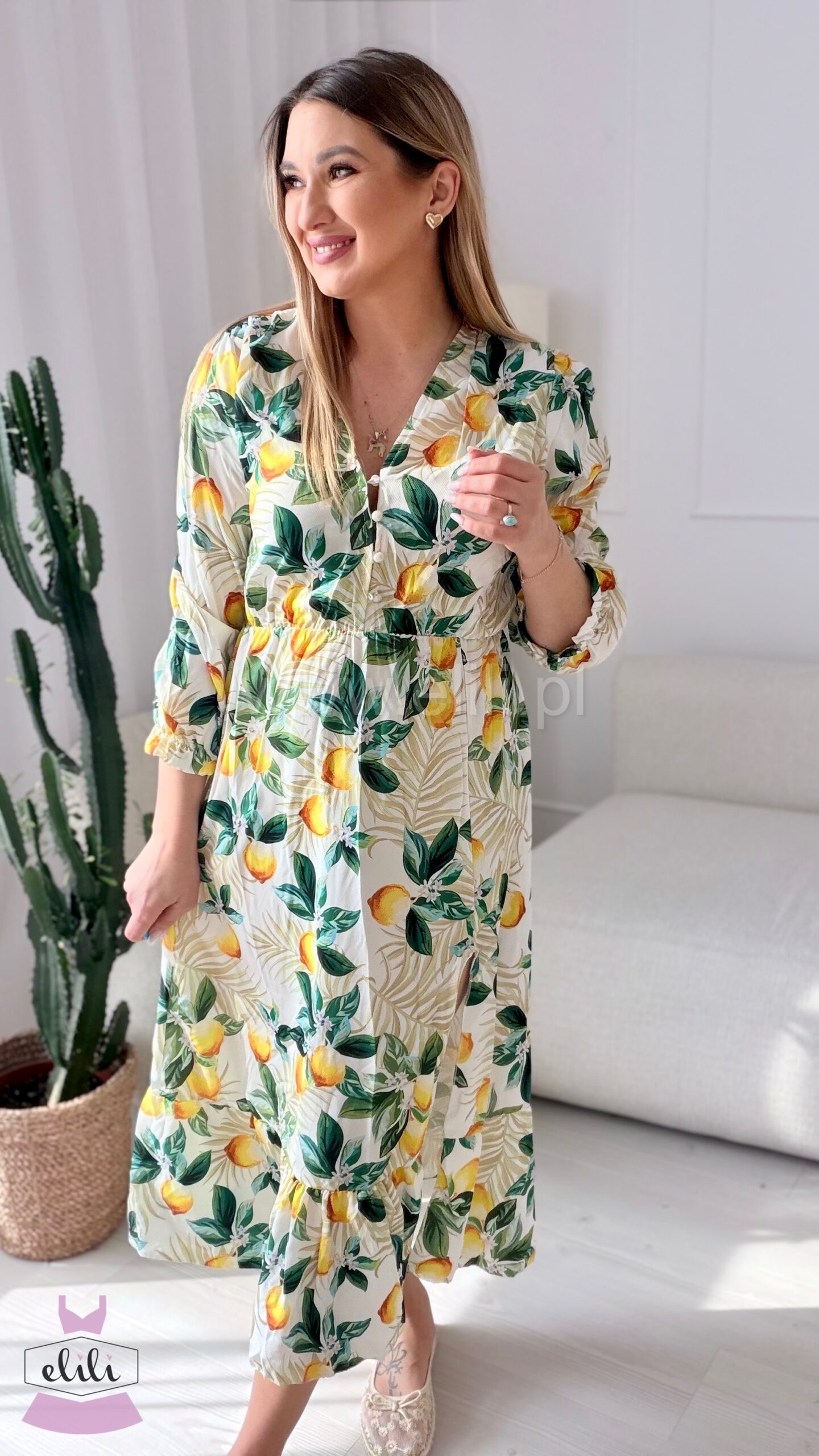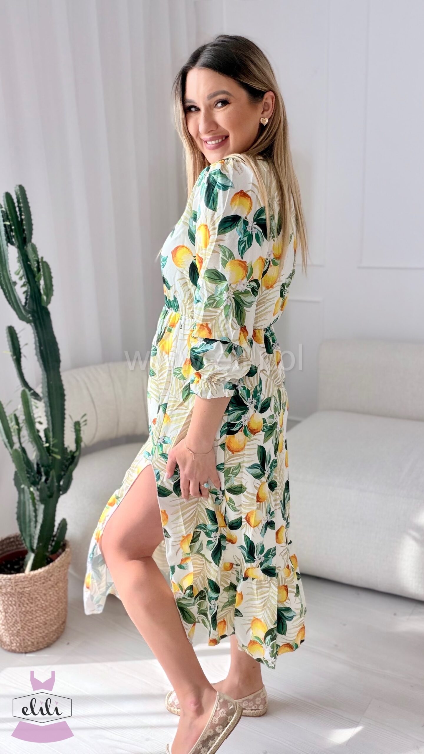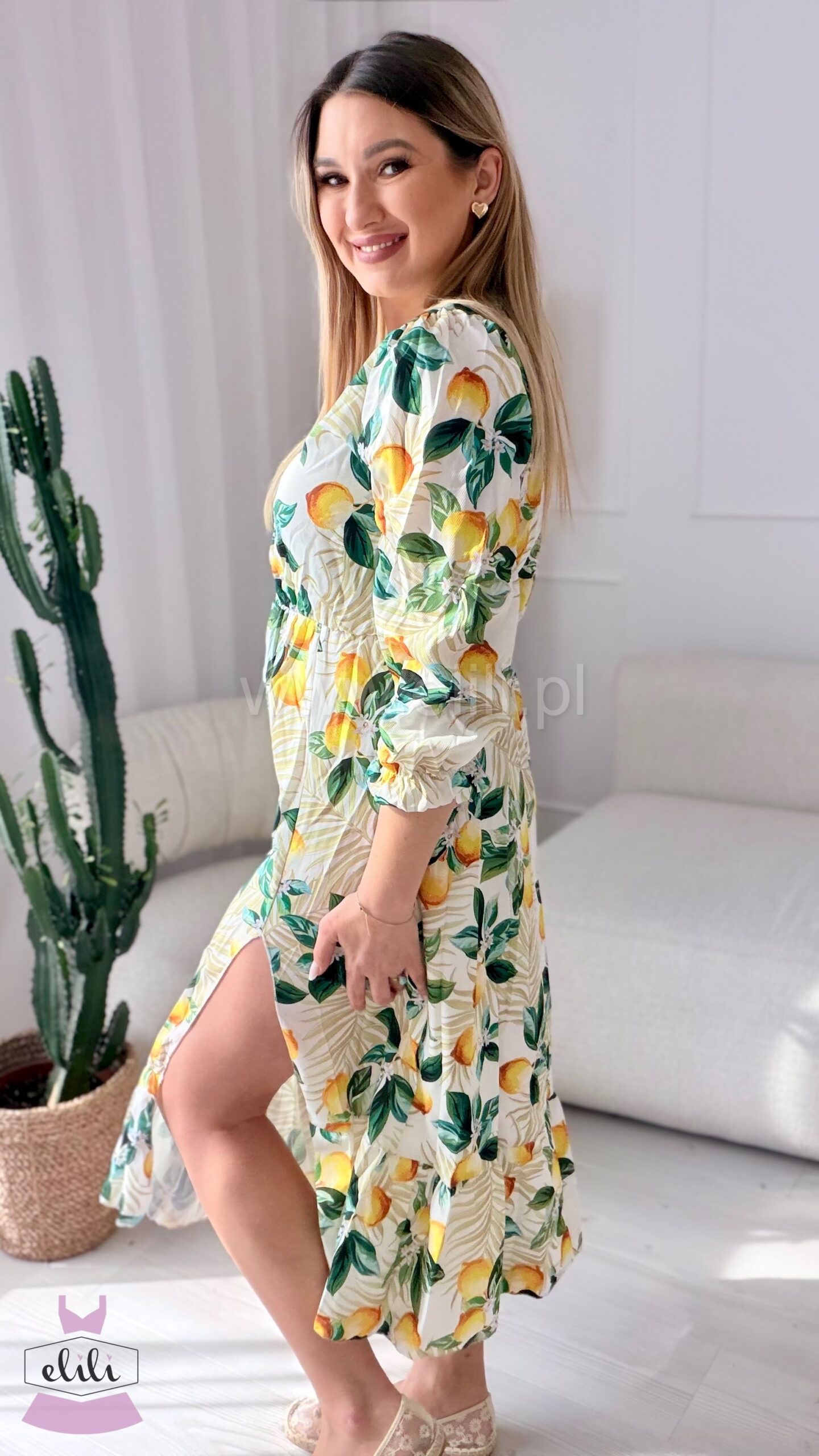Sukienka Ewa biała w cytrynki