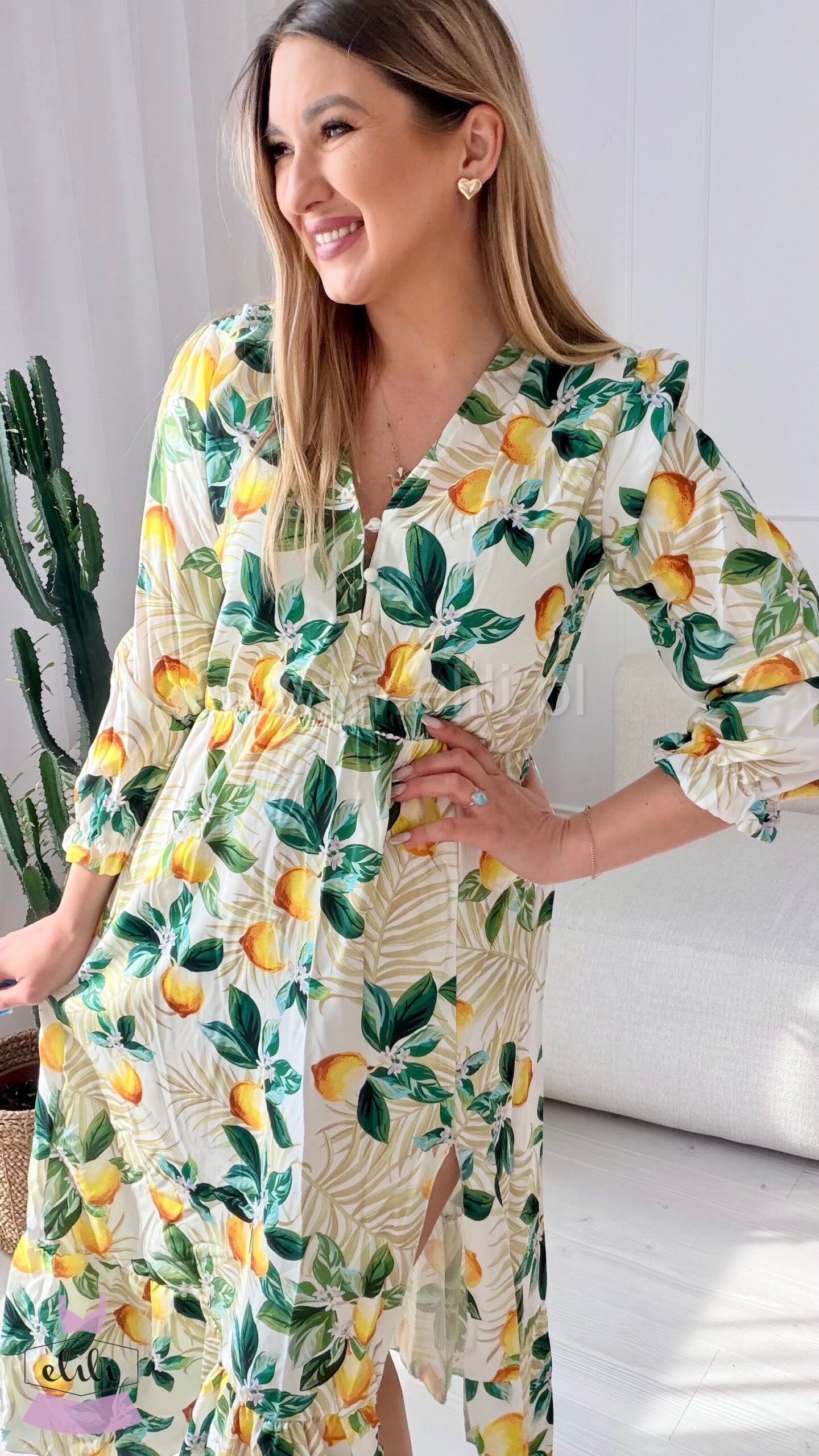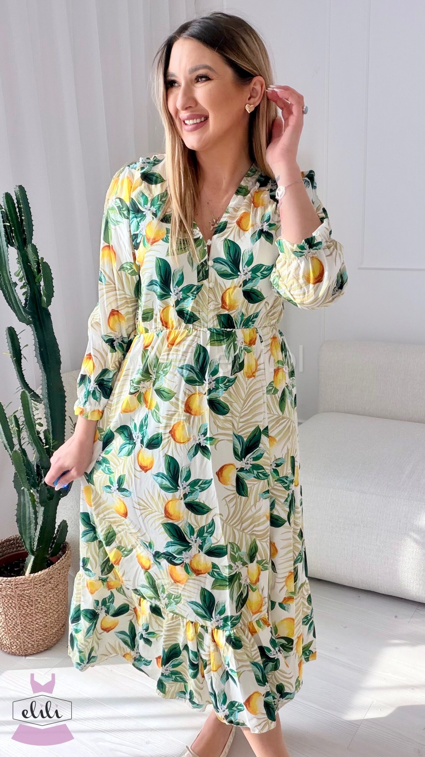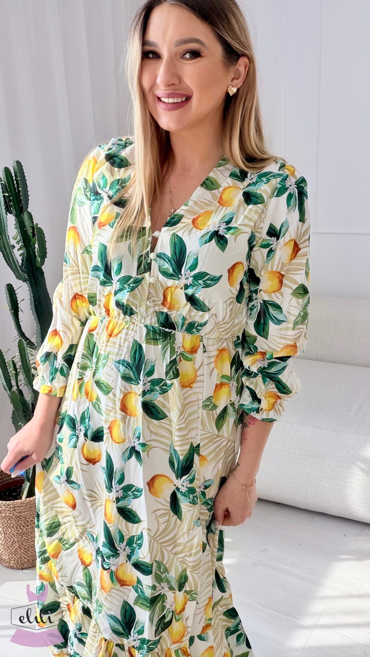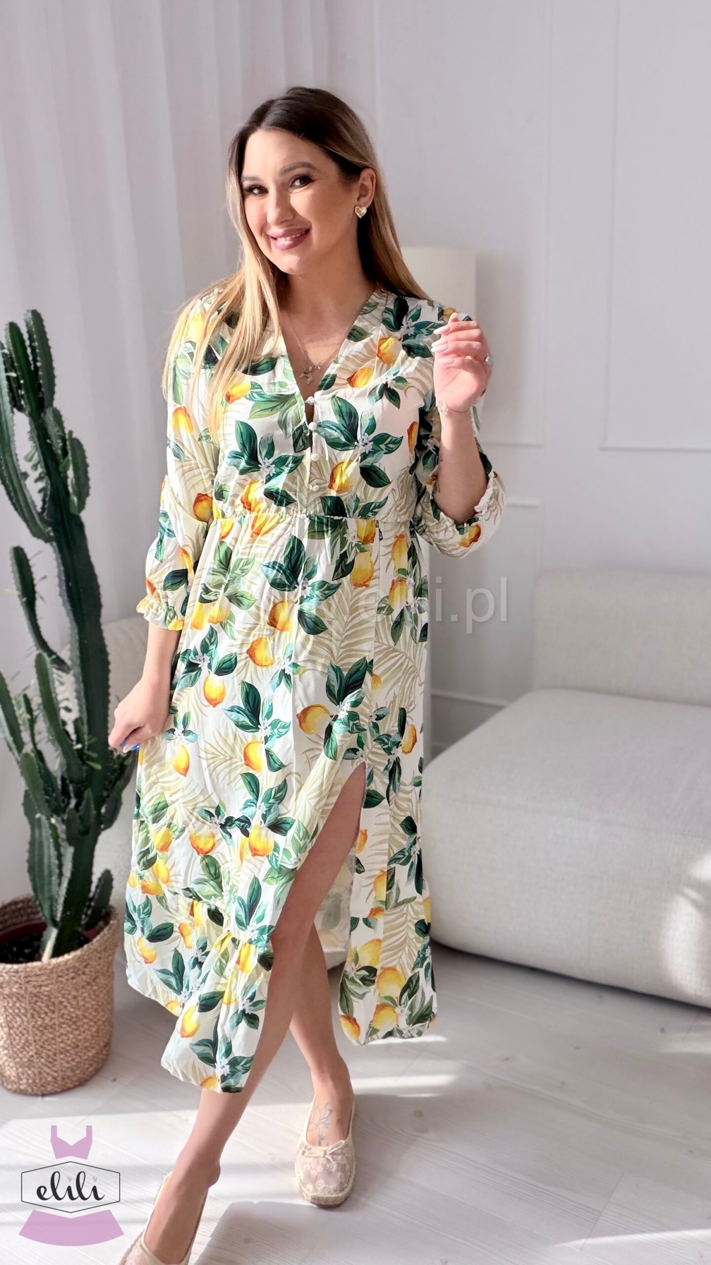Sukienka Ewa biała w cytrynki