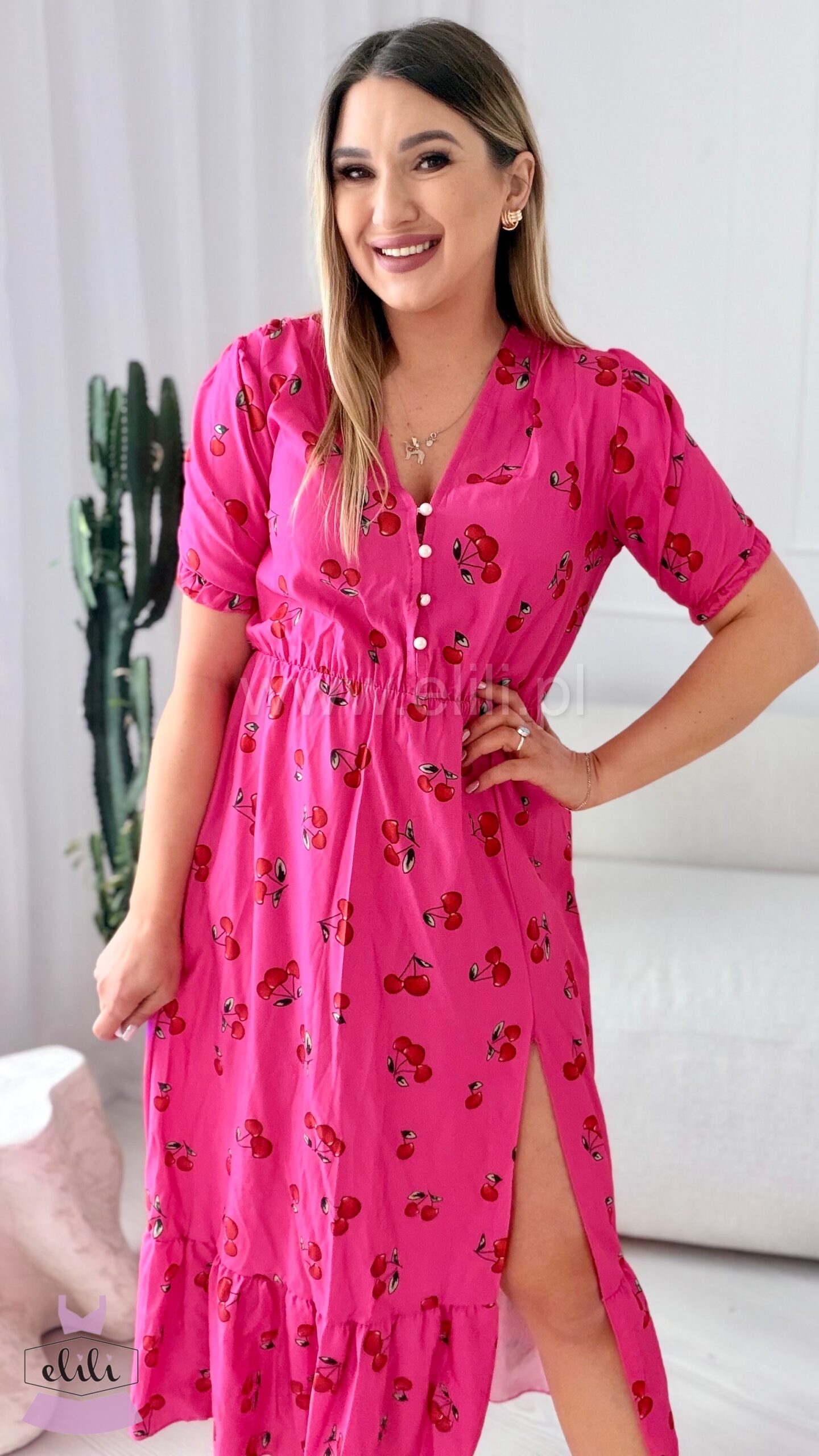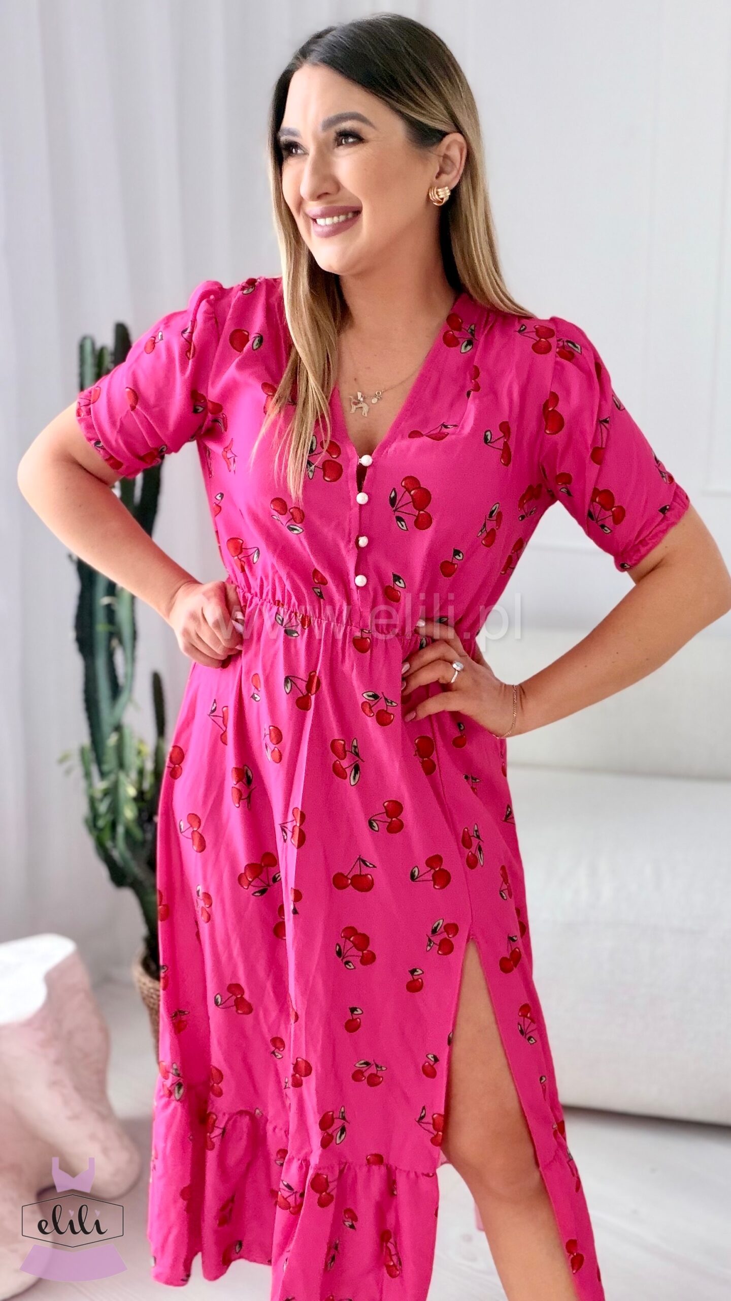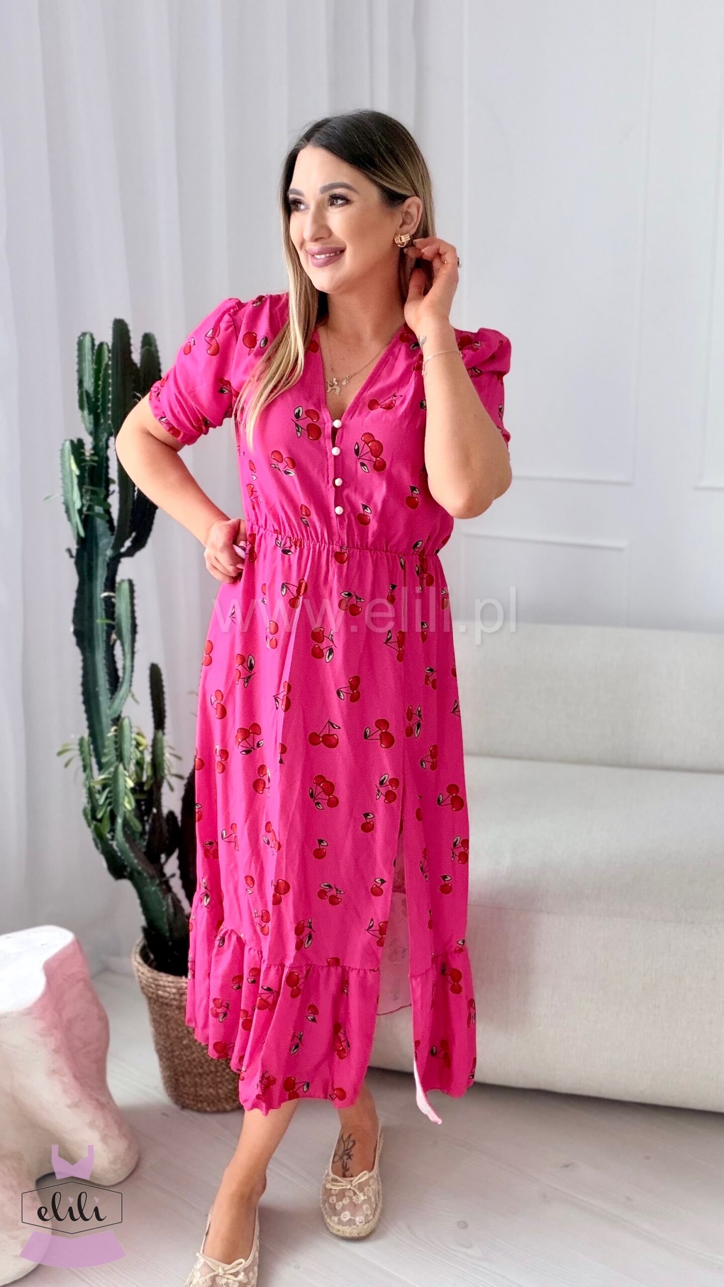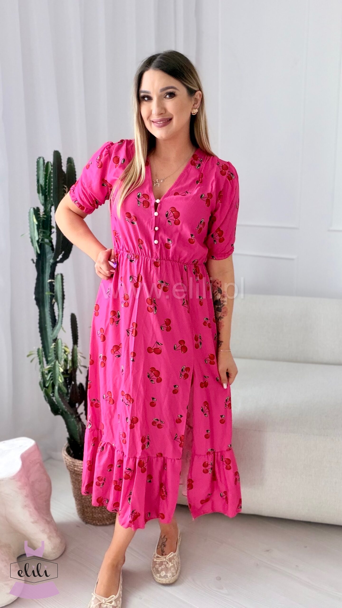 Sukienka Ewa fuksja w wisienki