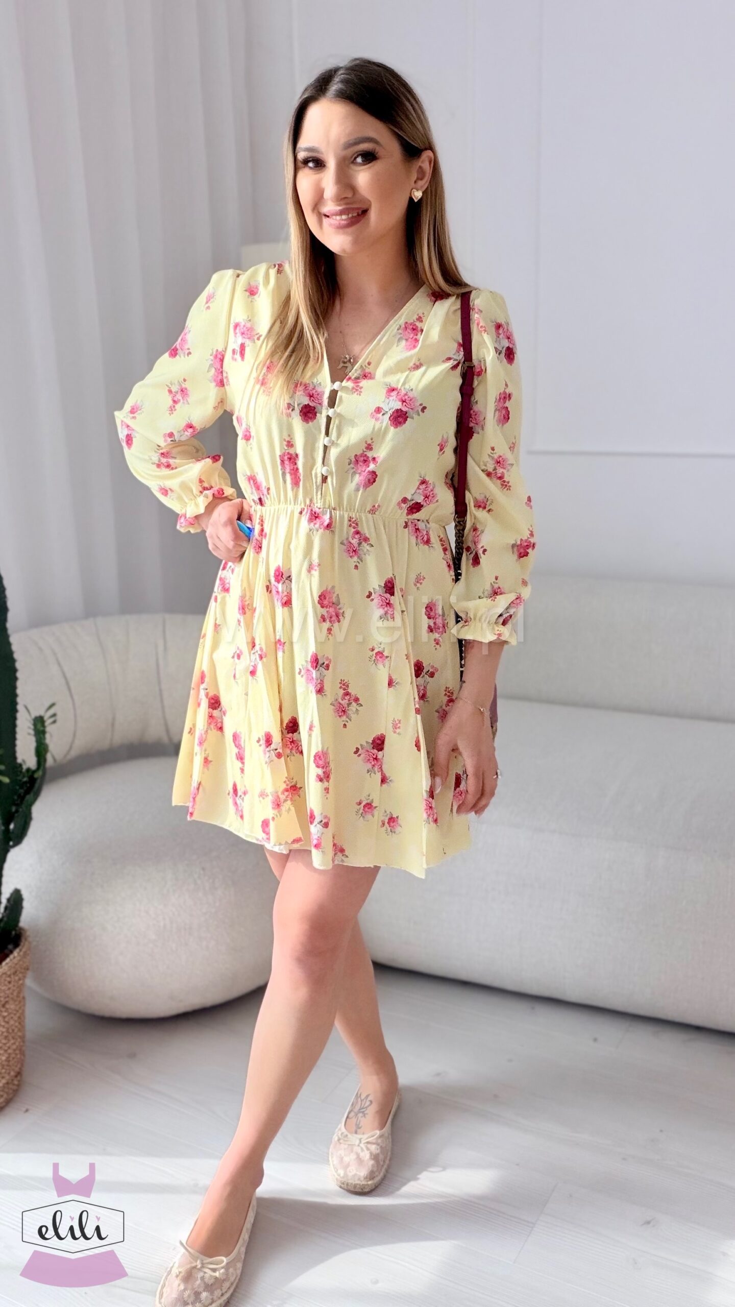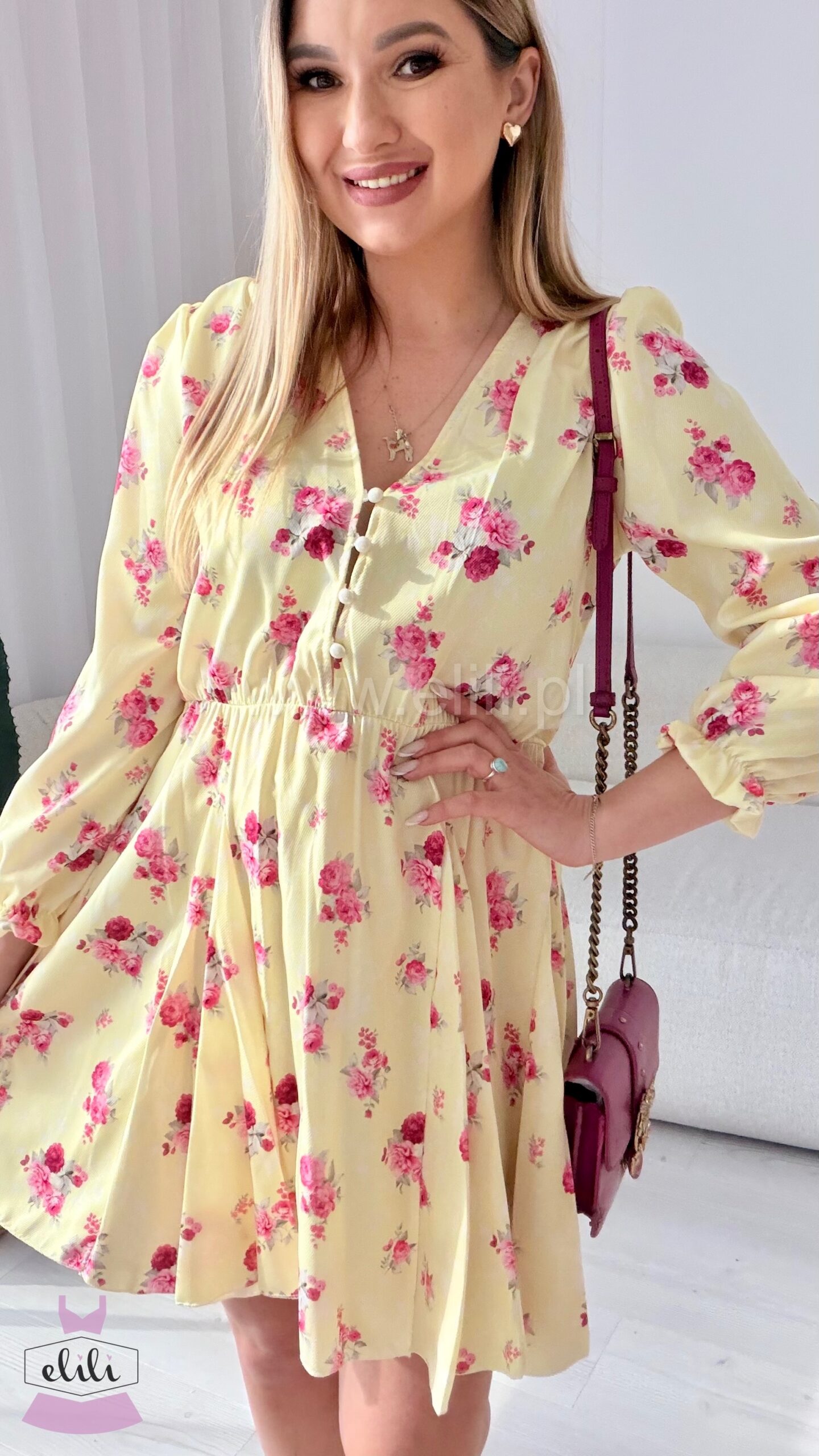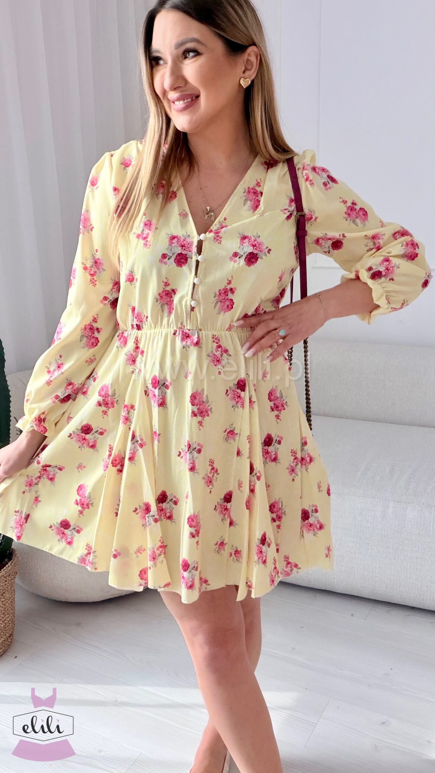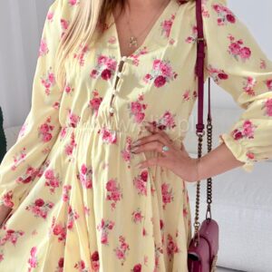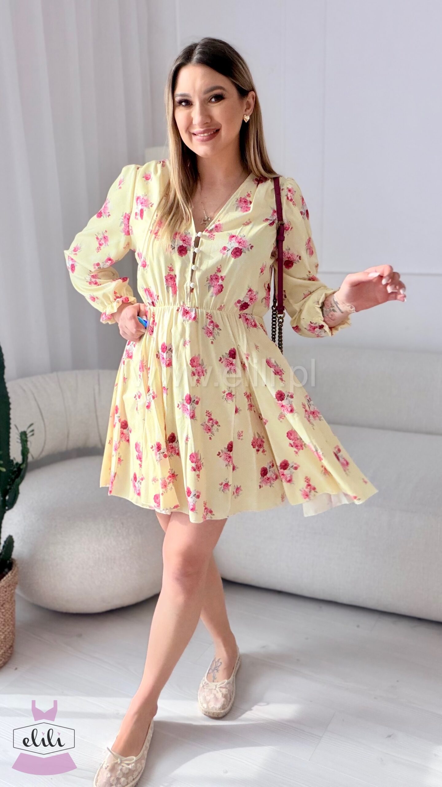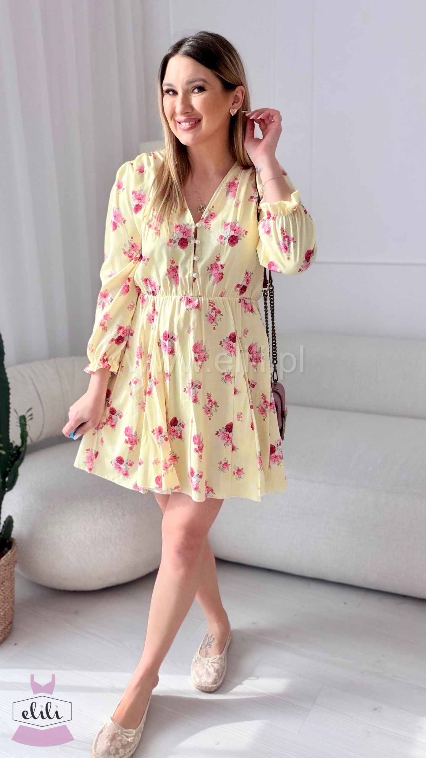 Sukienka jest odpowiedzią na wasze prośby uszycia krótszej wersji modelu Ewa. Góra jest kopią dłuższego modelu, posiada rozpinane guziki i elastyczną gumkę w talii a dół jest szyty na kole i ma dodatkowo wszyte falbany z materiału dzieki czemu Ewa mini nabrała lekkości i zwiewności. Rękawy sa zakończone gumka którą można wedle uznania podciągnąć wyżej. Materiał nadaje się do prania w pralce i suszenia w suszarce oraz nie gniecie się. Jesli guziki w sukience rozchodzą się – spróbuj owinąć gumkę dwukrotnie wokół guzika – pozwoli to zachować je na miejscu 🙂